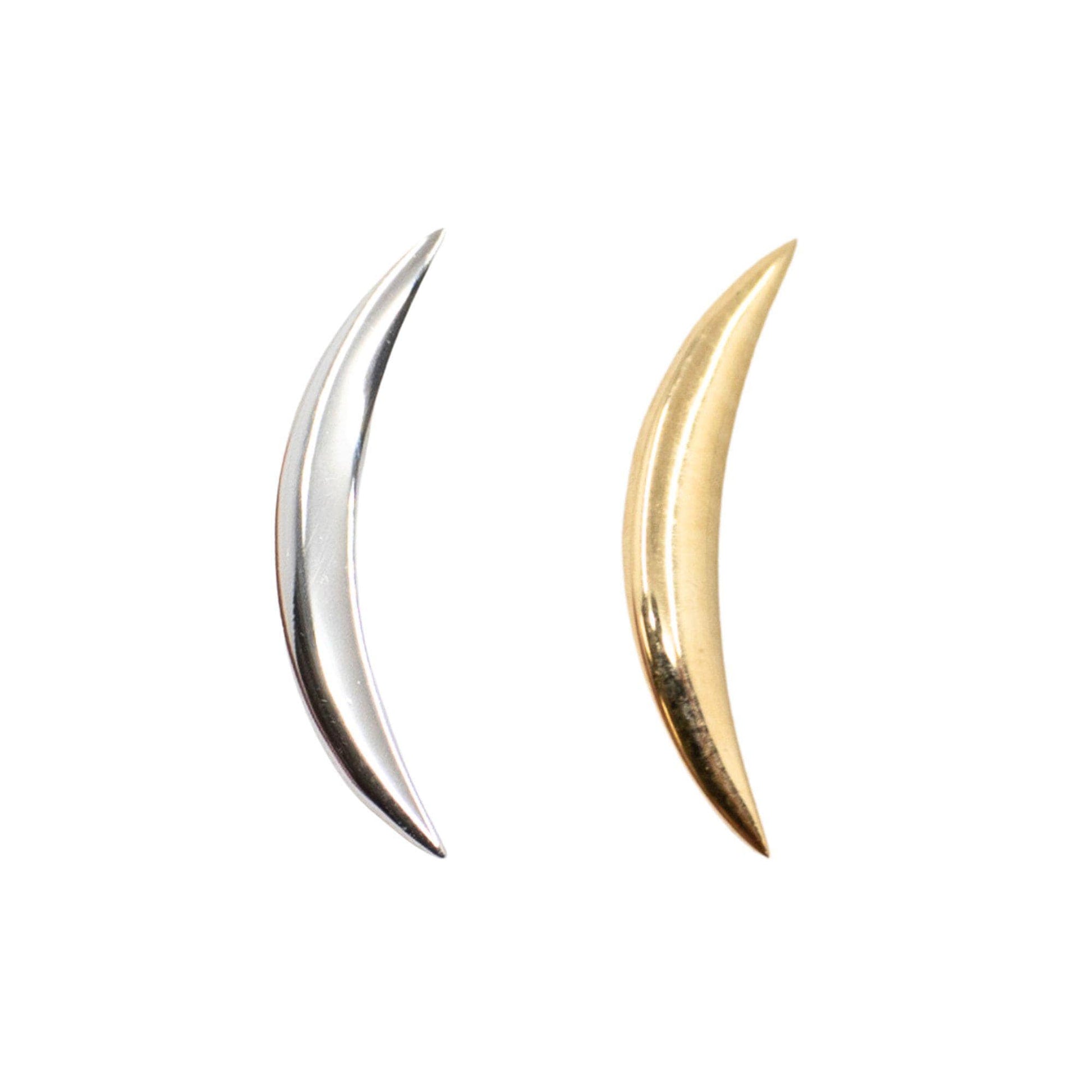 14k High Polished Curved Earring White Gold (Threadless Earring, FlatBack Earring, Threadless Stud, Solid Gold Earring, Curved Earring)