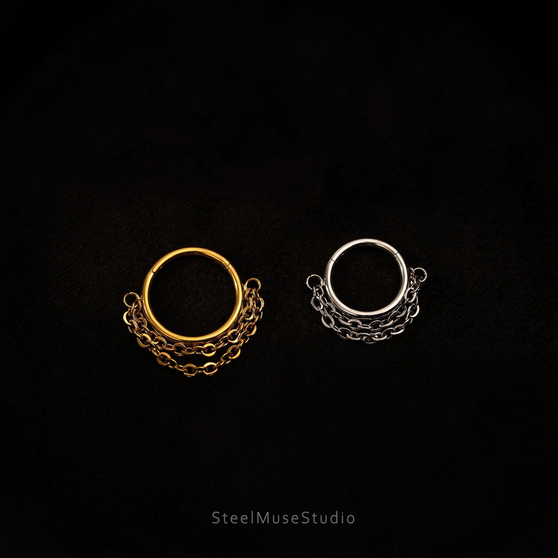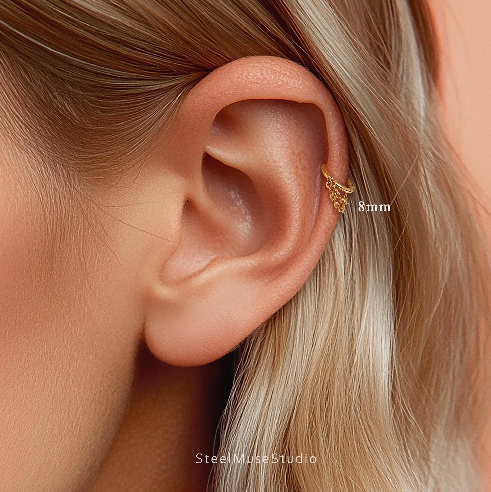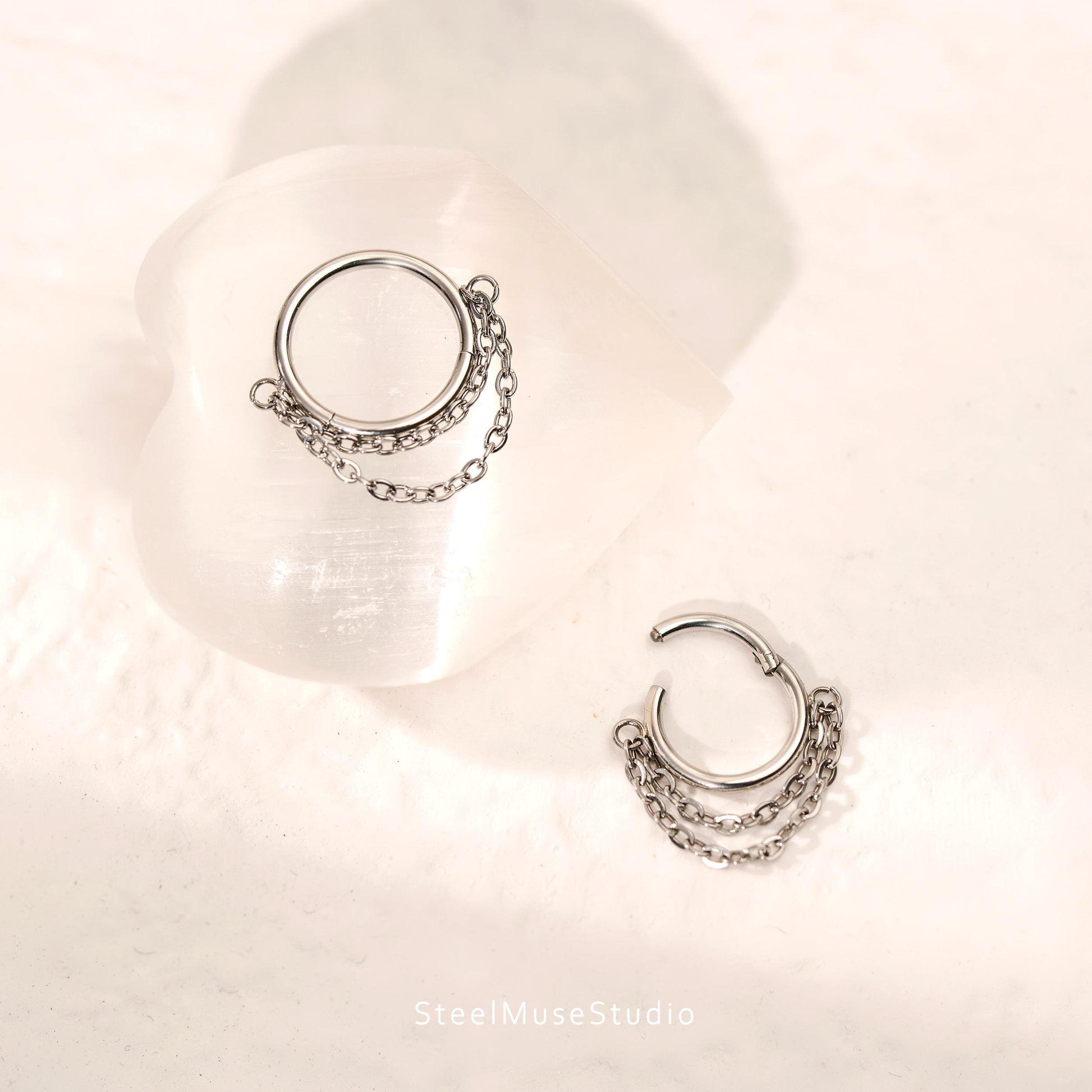 16G Titanium Single Chain Clicker Hoops • Huggie Earrings • Cartilage Hoop • Nose Ring • Hinged Segment • Helix Conch Septum Jewelry • Gift