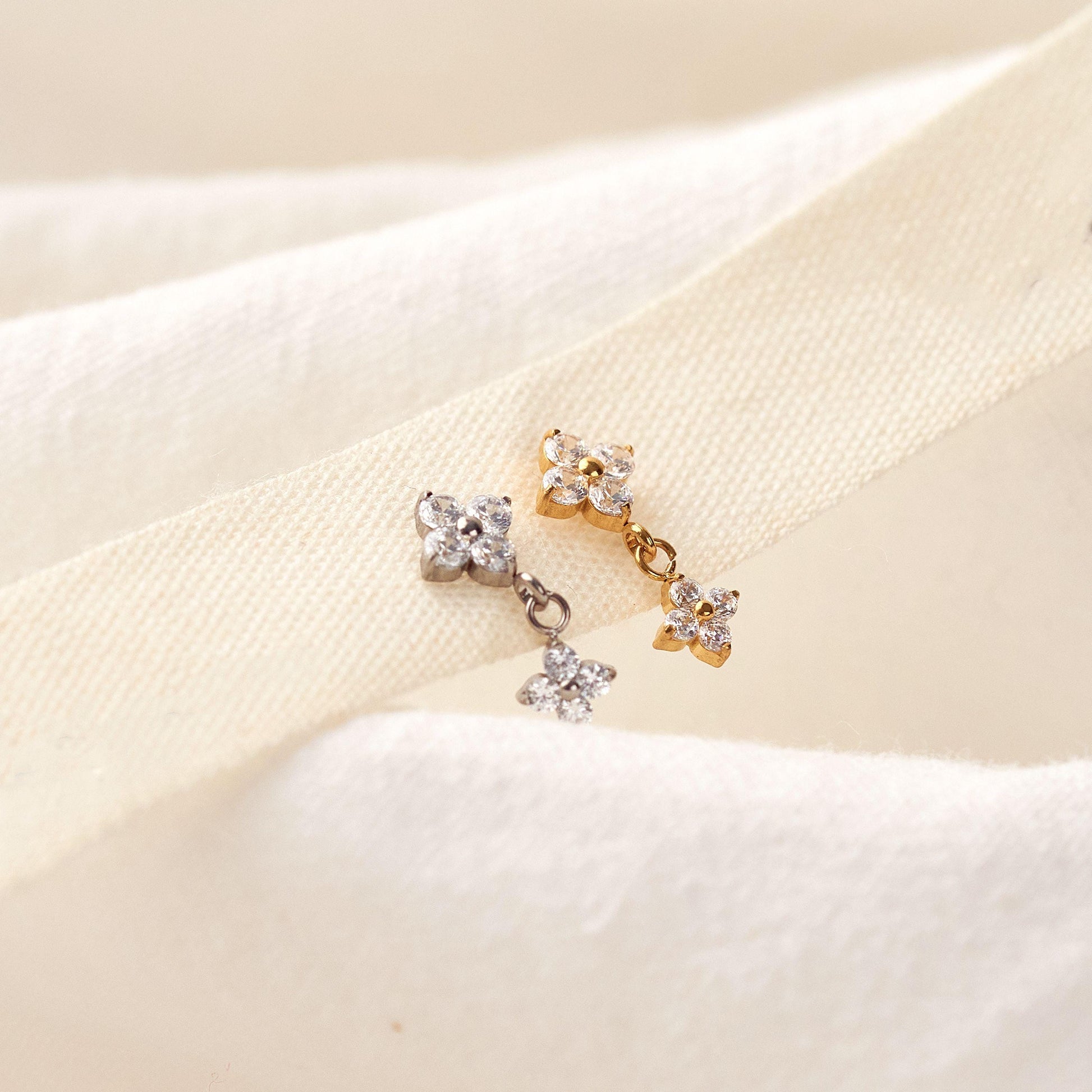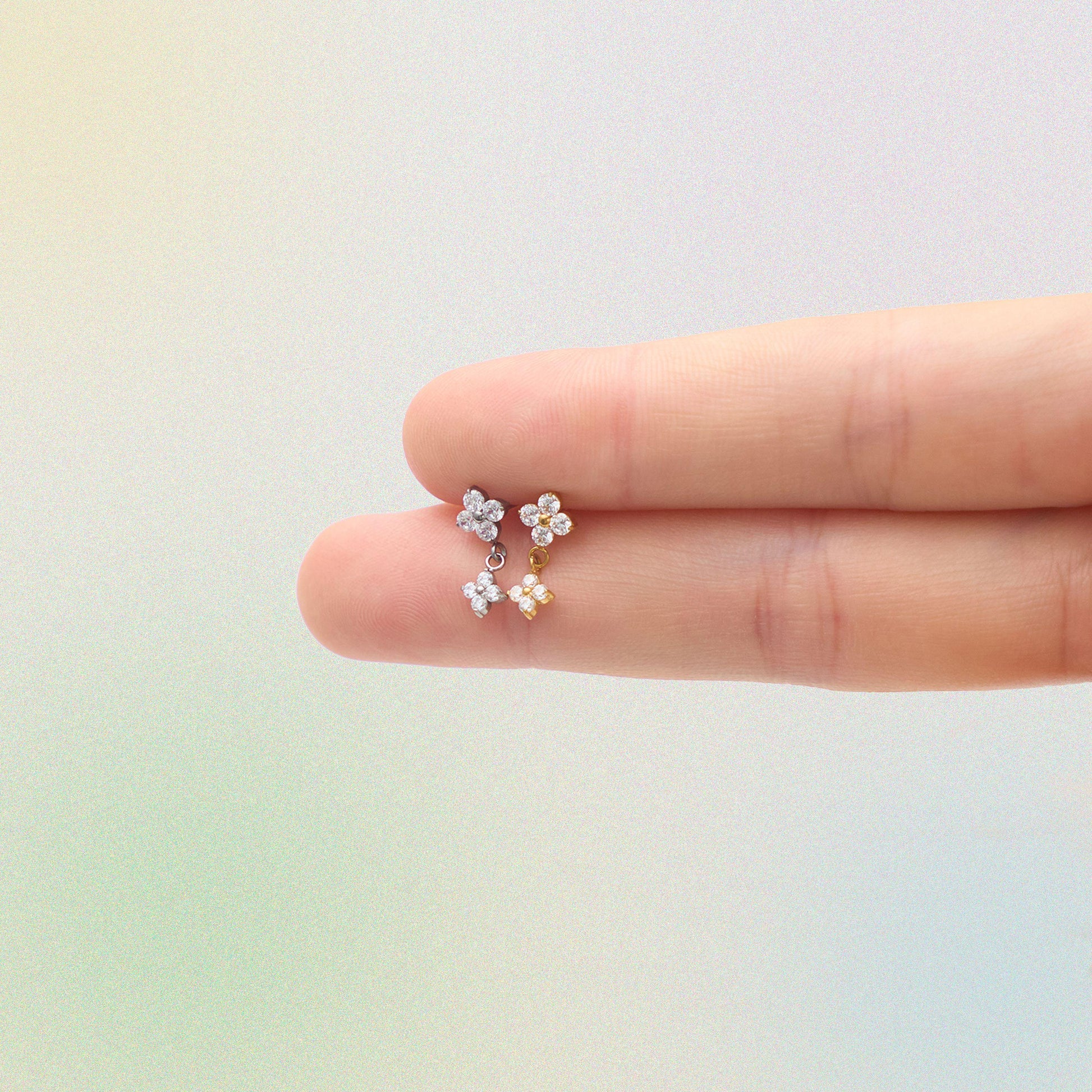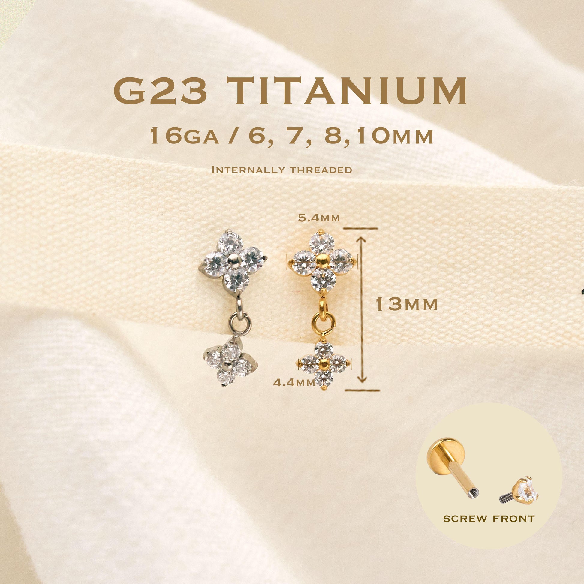 18G/16G Titanium Dangle Stud Earring • Tragus Earring • Helix • Cartilage • Internally threaded • Flat Back Earring• Gift for Her