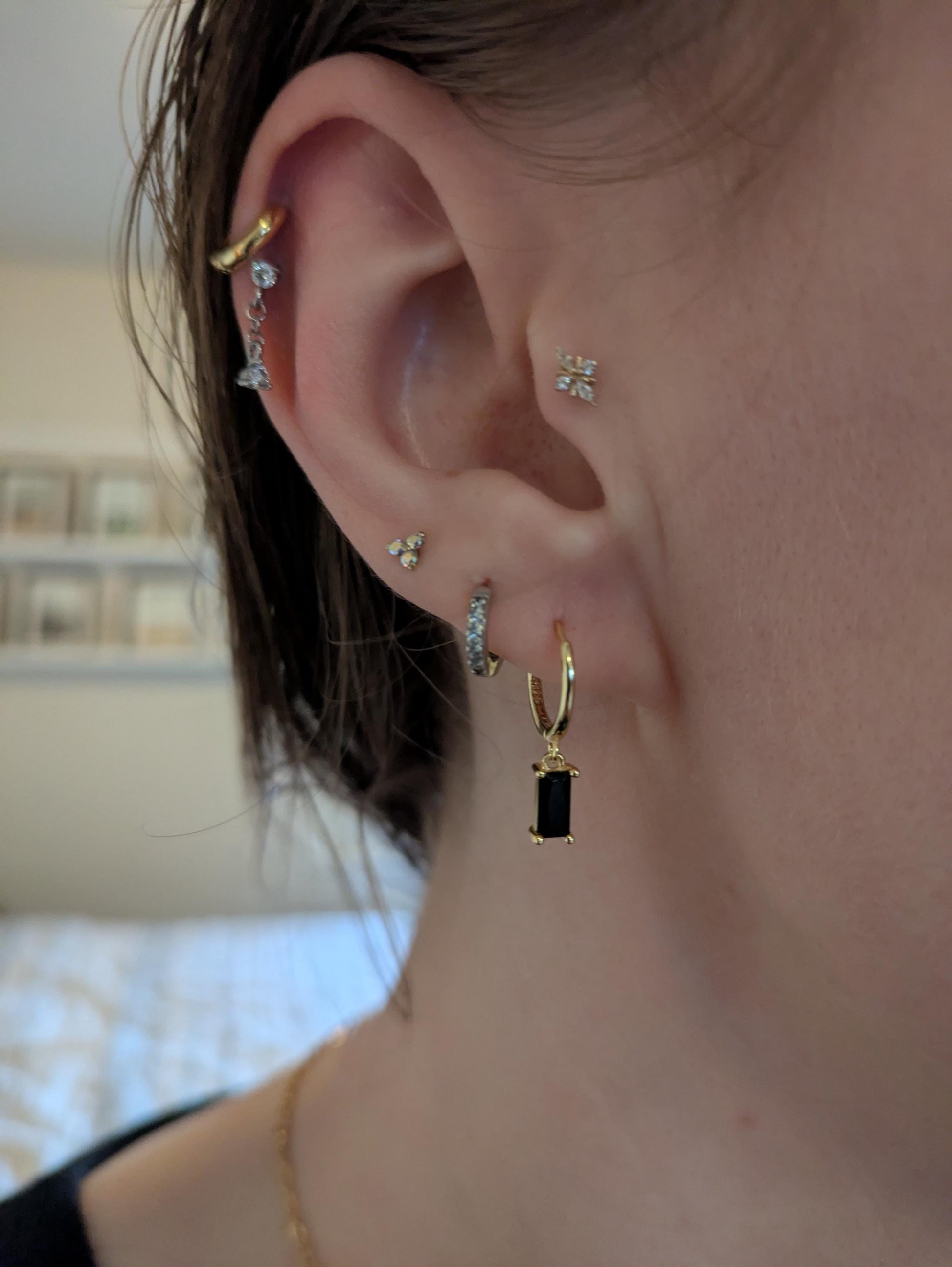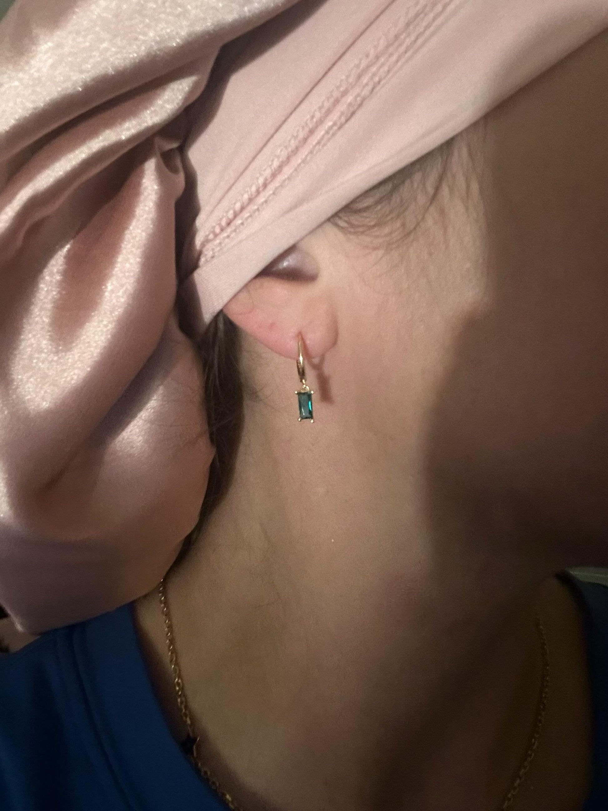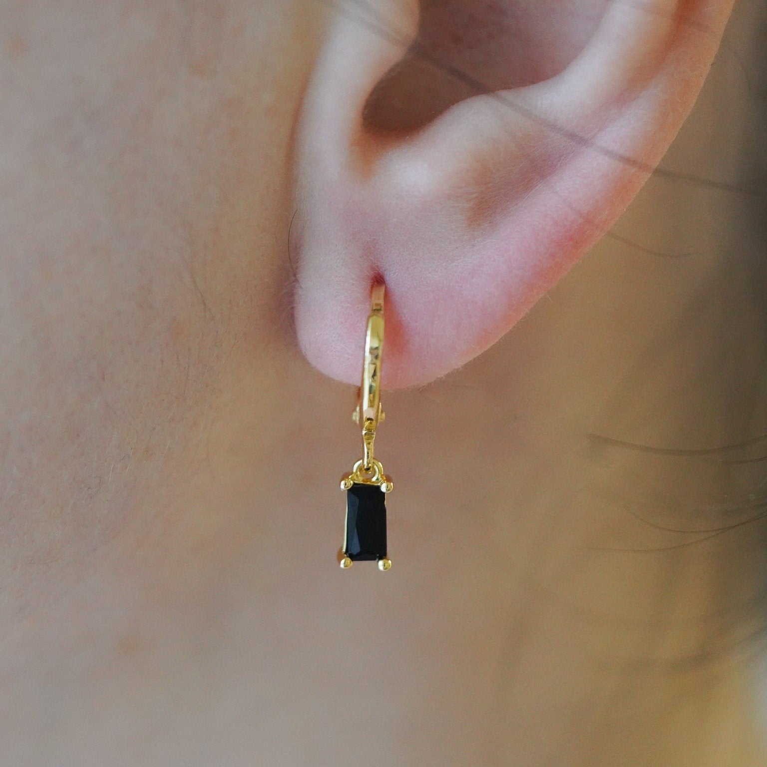 Baguette Dangle Earrings by Babeina, Birthstone Earrings, Baguette Earrings, Dangle Huggies, Perfect Christmas Gift