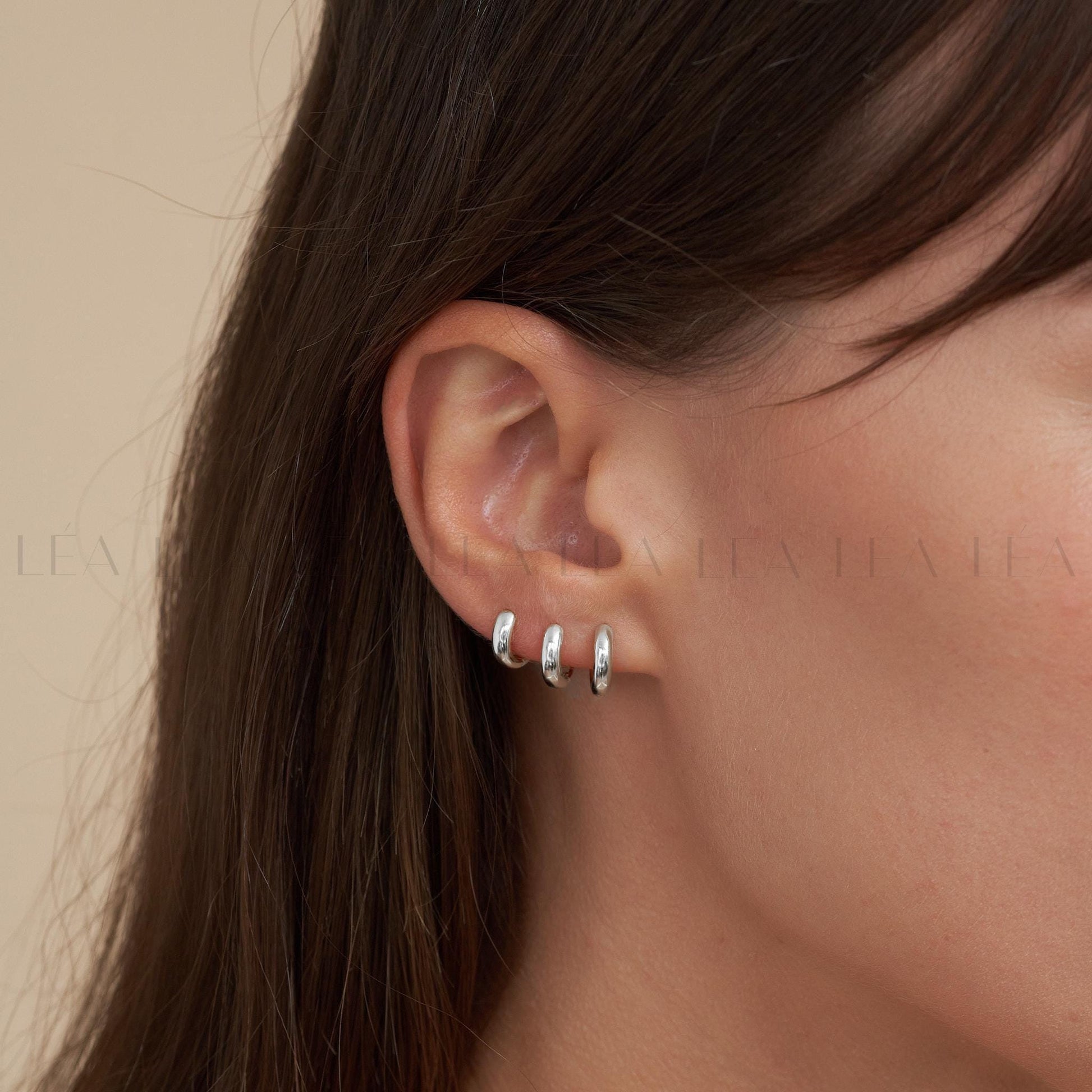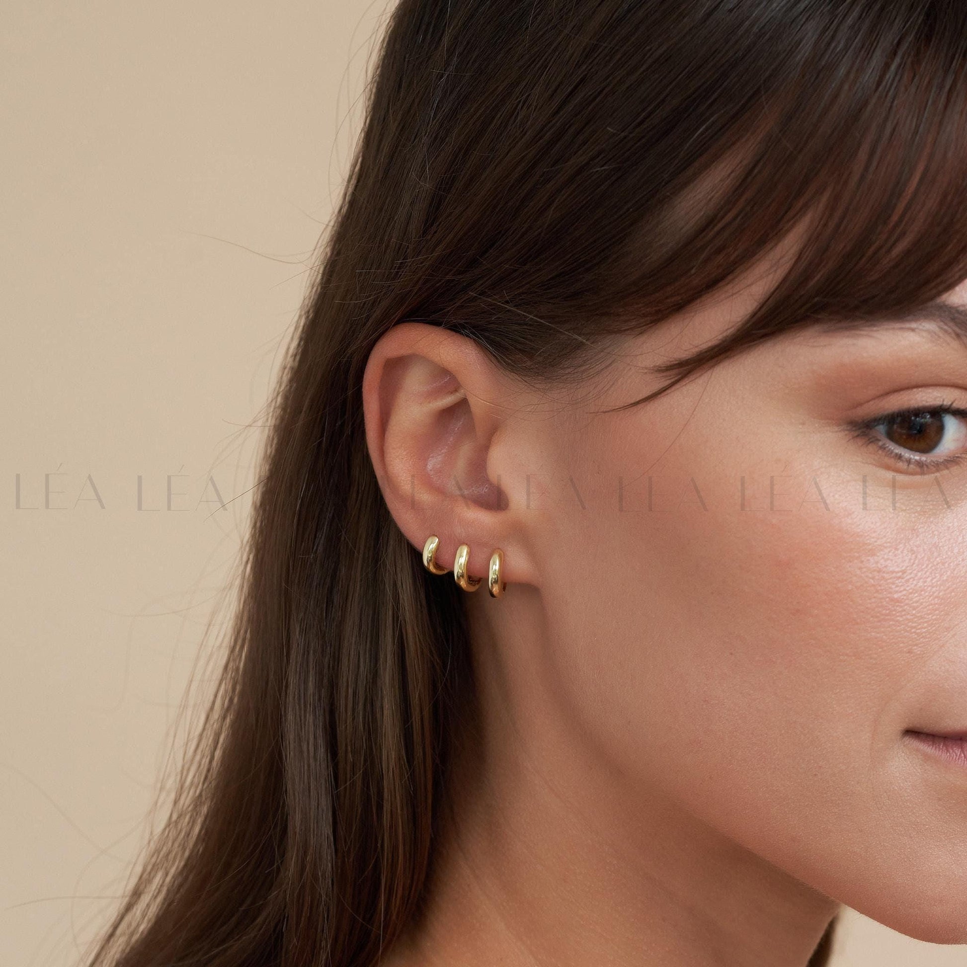 18K Gold Dainty Huggie Hoop Earrings • Thick Rounded Hoop Earrings • Chubby Gold Tiny Huggies • Sterling Silver Everyday Earrings