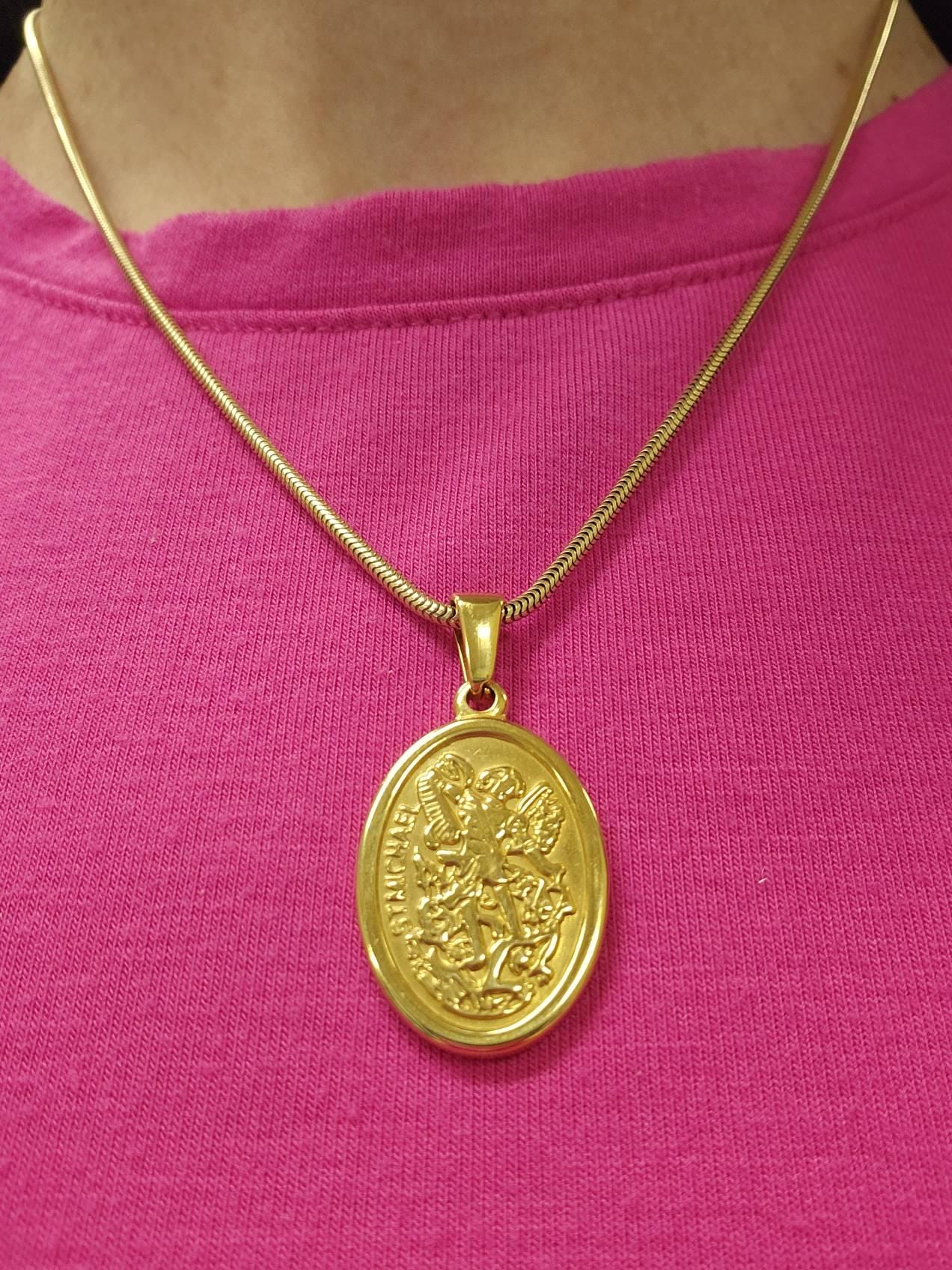 18k Gold St Michael Pendant Saint Michael Medal Man Pendant Man Necklace for Men Pendant for Men Gold Man Necklace Gift Mans Gift For Dad
