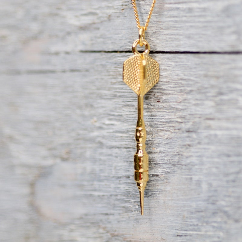 Geek Jewelry - 3D Dart Charm Necklace 24k, Dart Pendant Necklace, Gift for Boyfriend, Husbang Gift, Dart Lover Gift, Birthday Gift for Him Best Friend Gfit