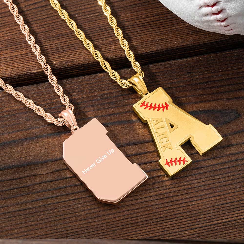 Baseball Initial Necklace A-Z Letter with Custom Name, Stainless Steel Baseball Jersey Charm Pendant, Sports Gift for Athletes/Baseball/Sport Lovers