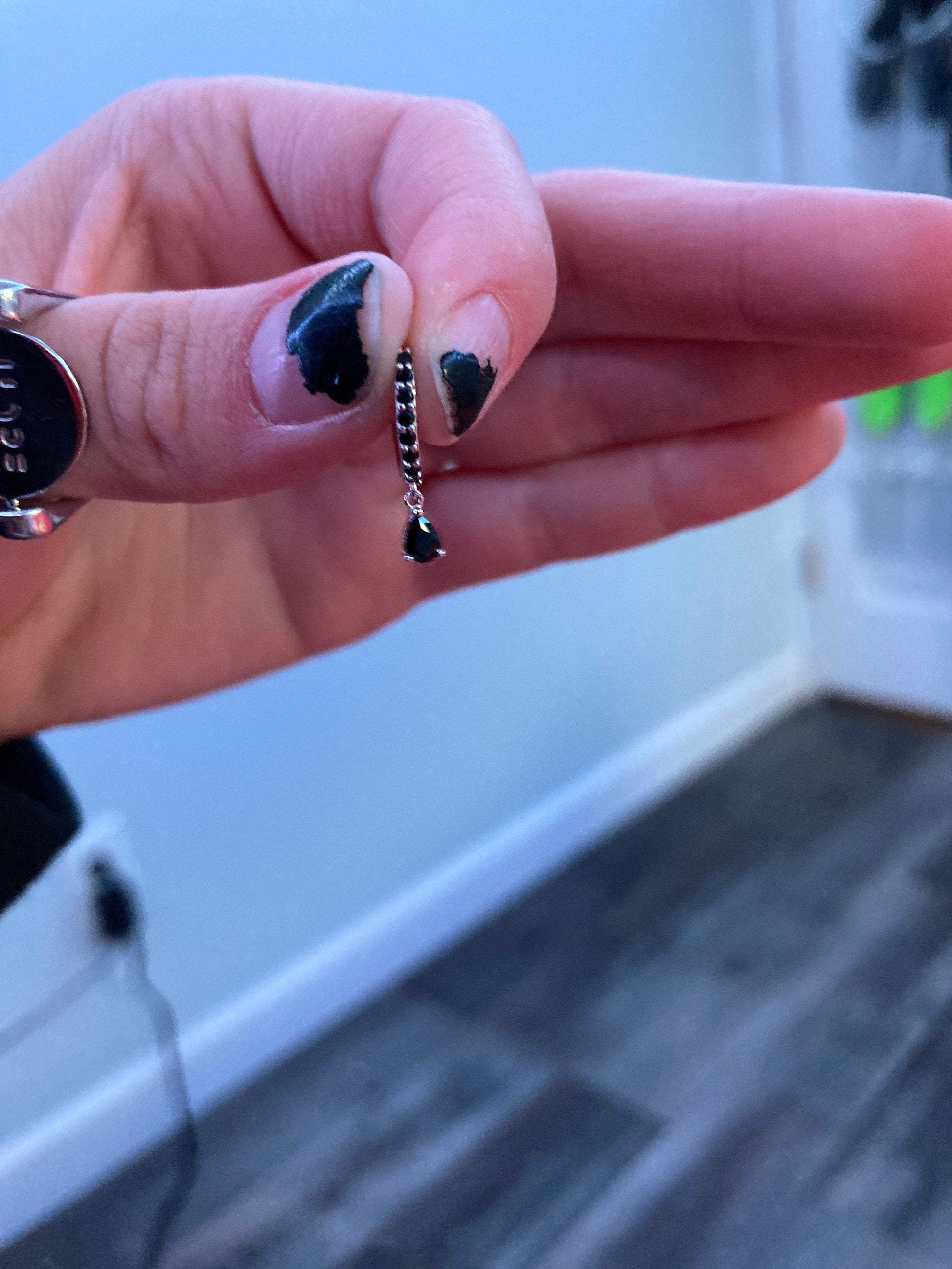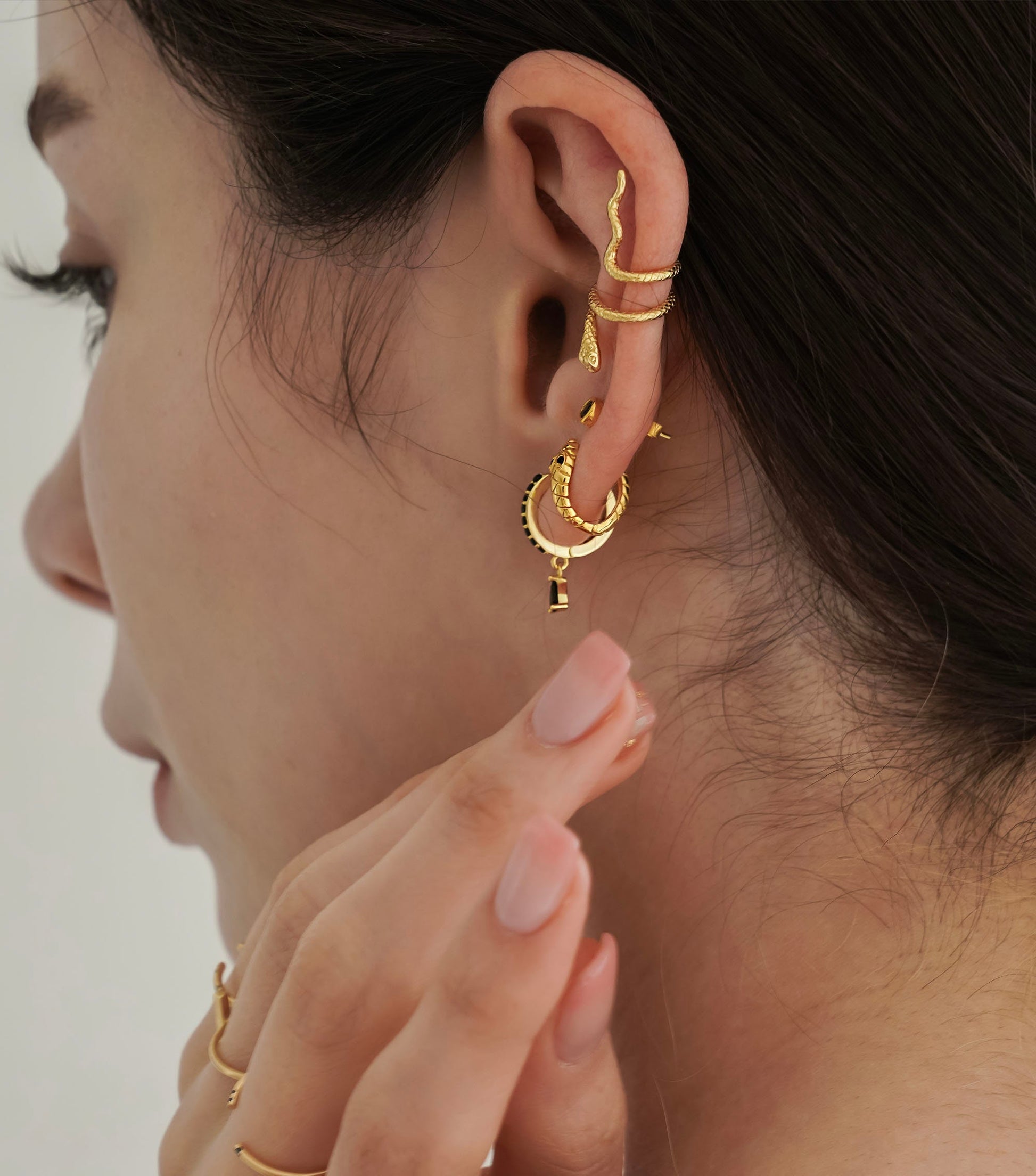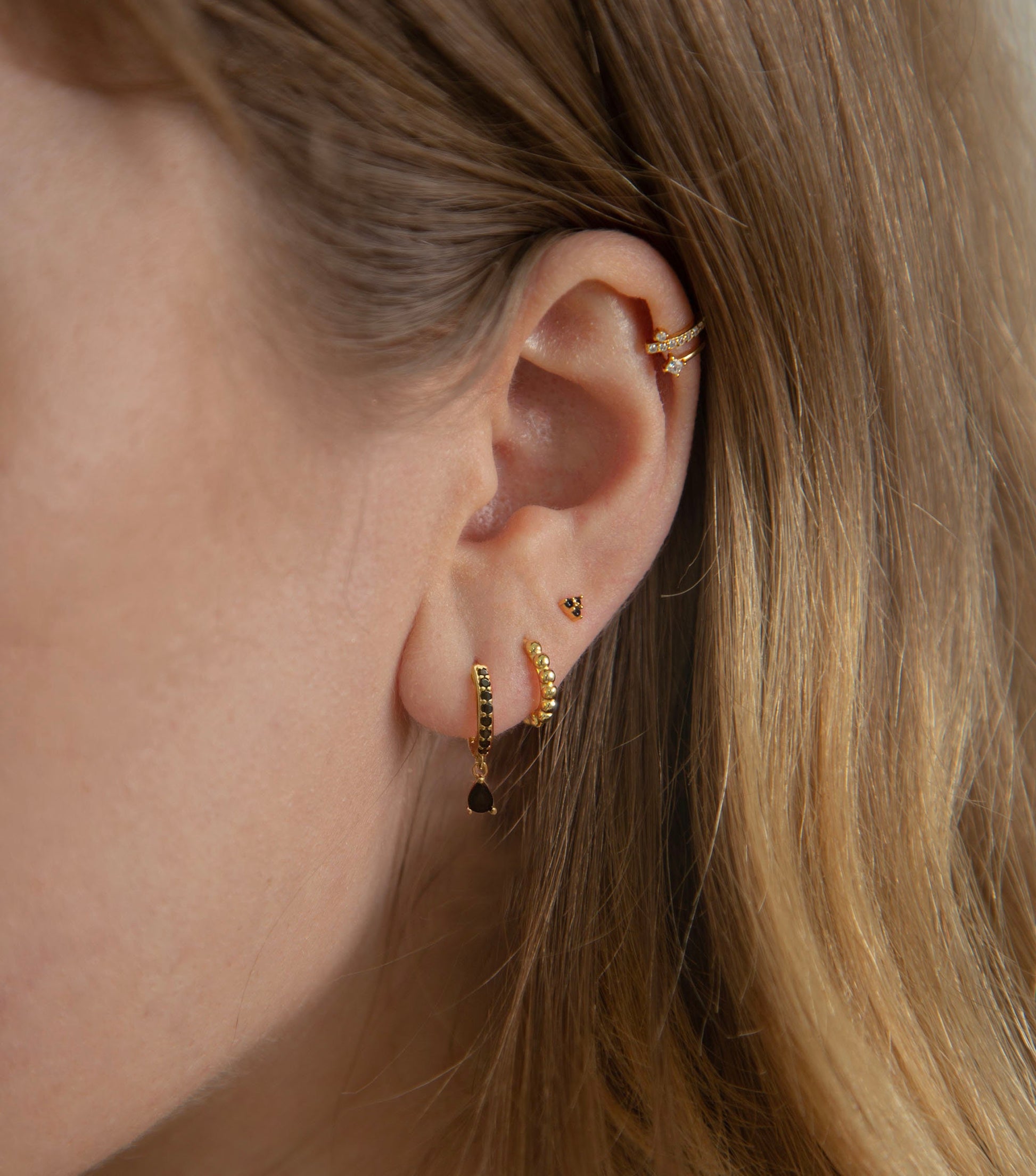 Black cz charm hoops - Dangle hoop earrings - Sterling Silver Minimalist earrings - Tiny Huggie hoop earring