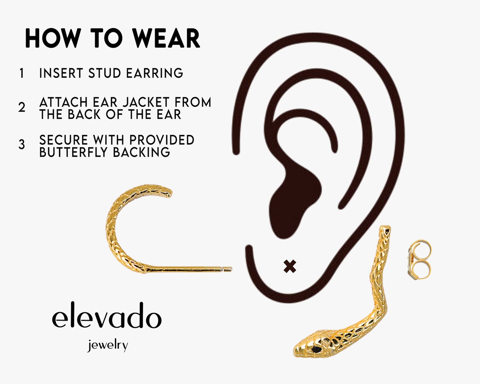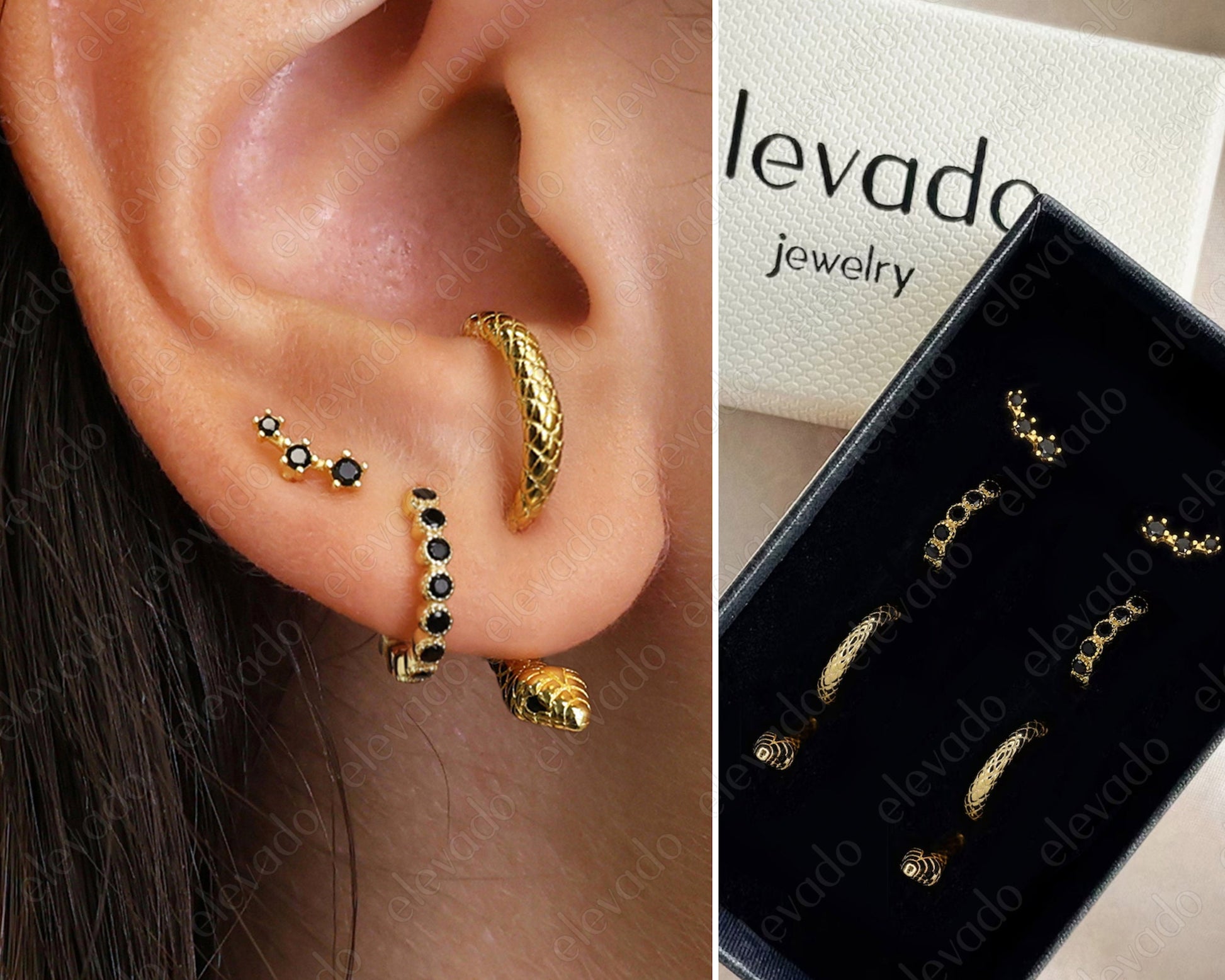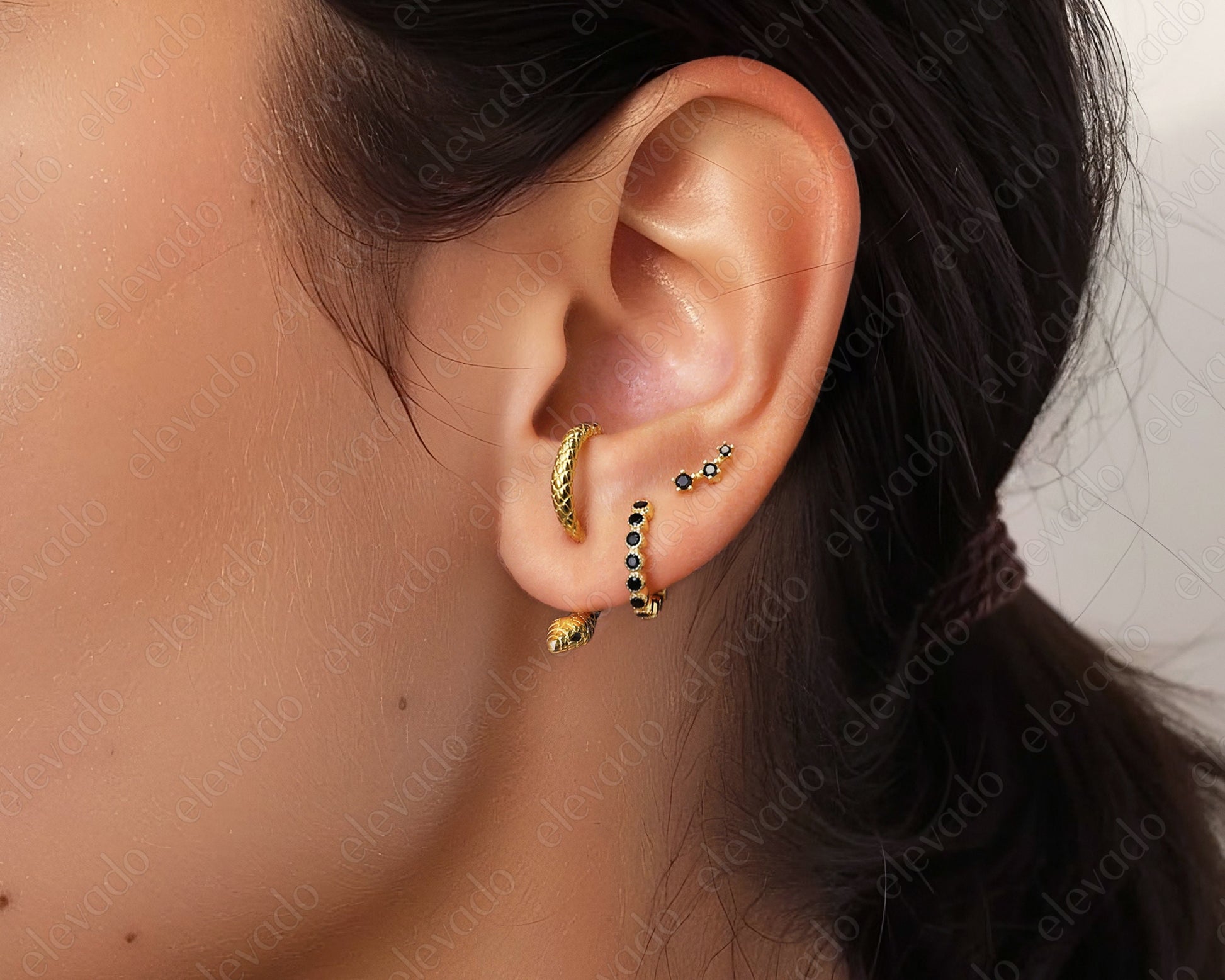 Black Onyx Serpent Front Back Earring Set • huggie hoop • minimalist earrings • snake earrings • serpent earrings • elevado jewelry