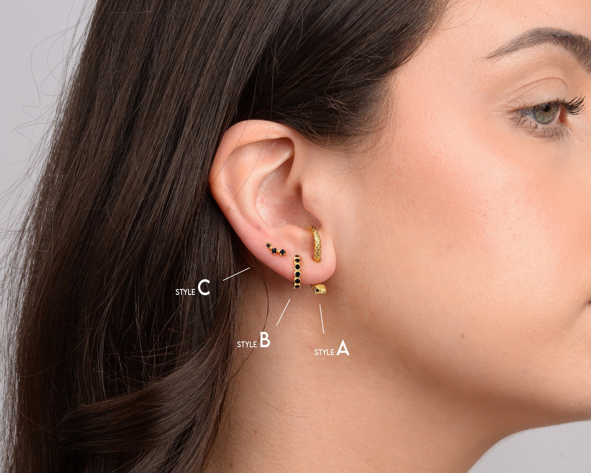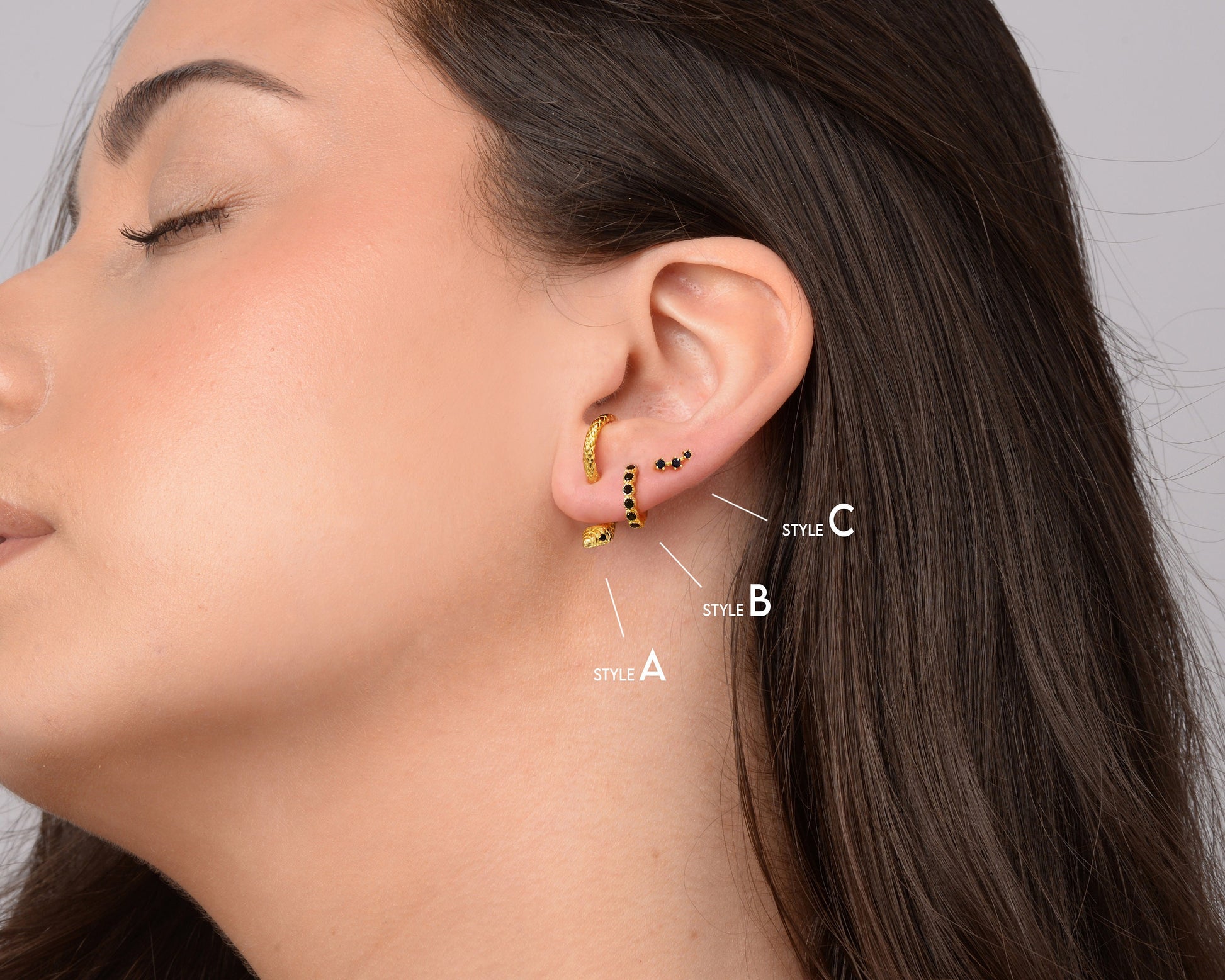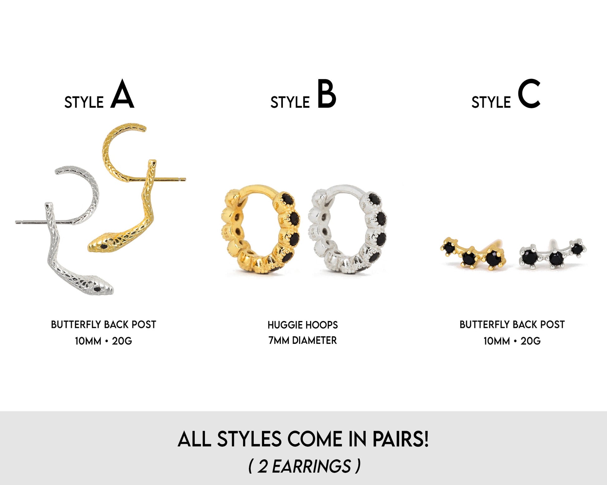 Black Onyx Serpent Front Back Earring Set • huggie hoop • minimalist earrings • snake earrings • serpent earrings • elevado jewelry