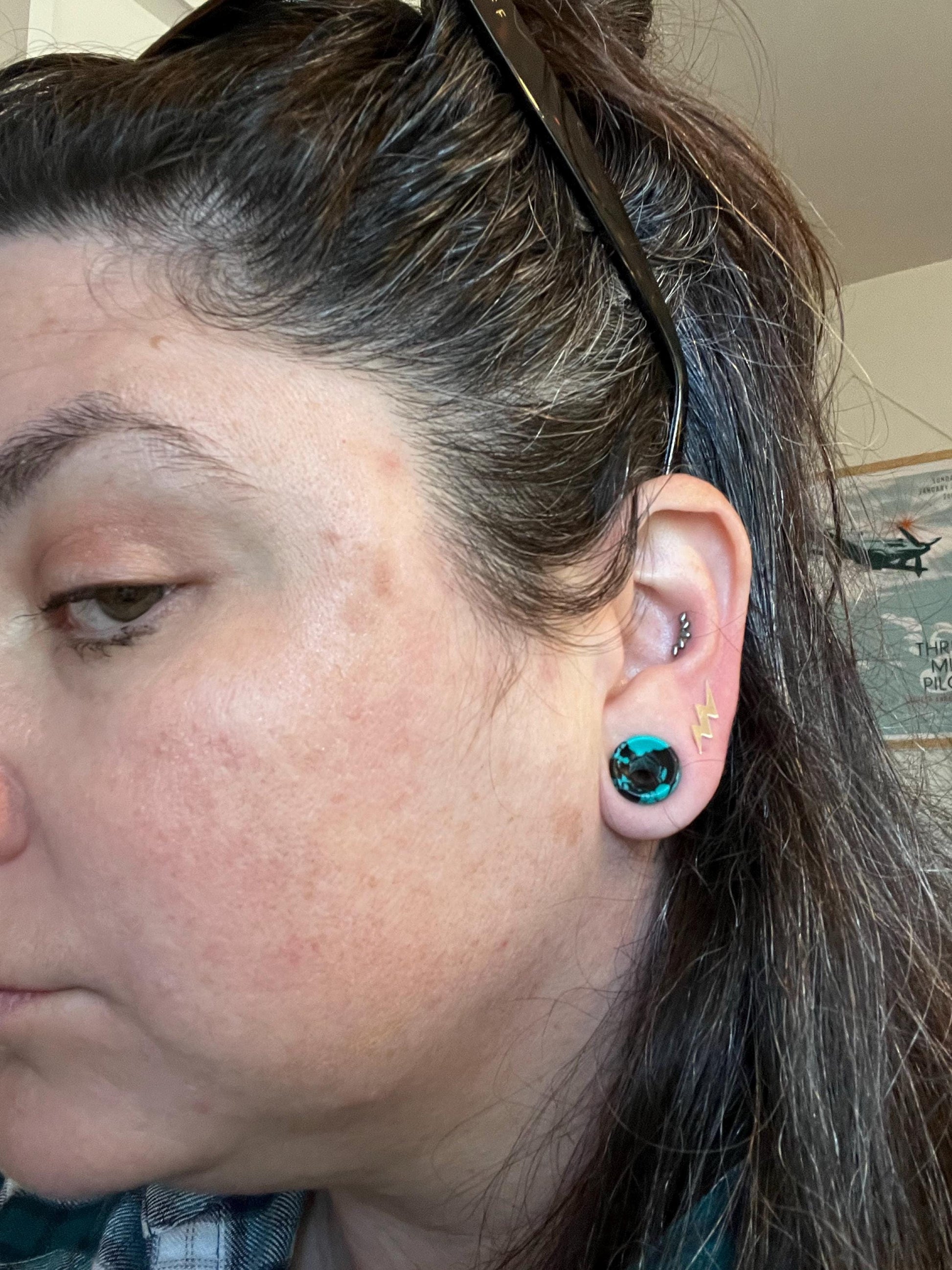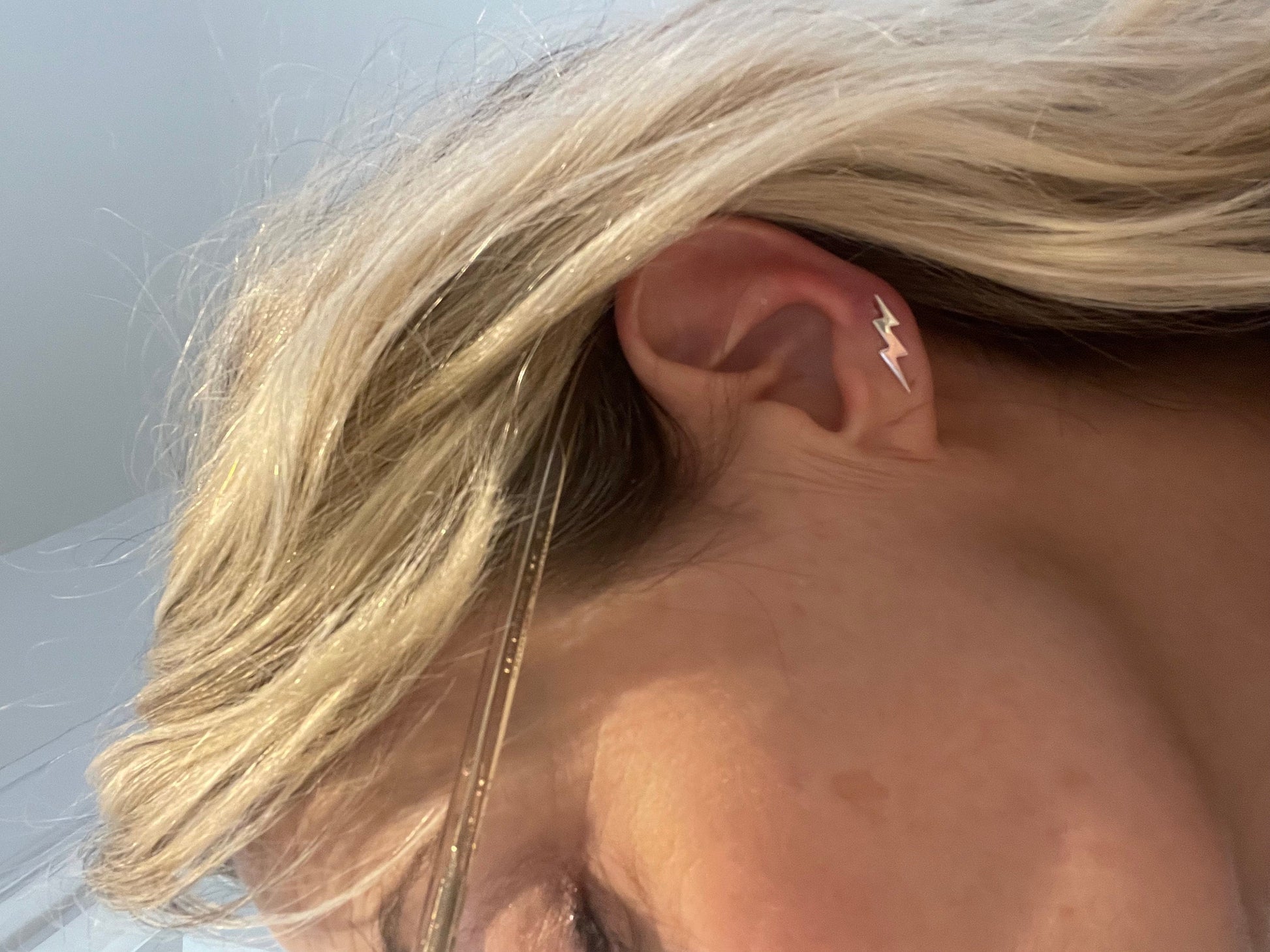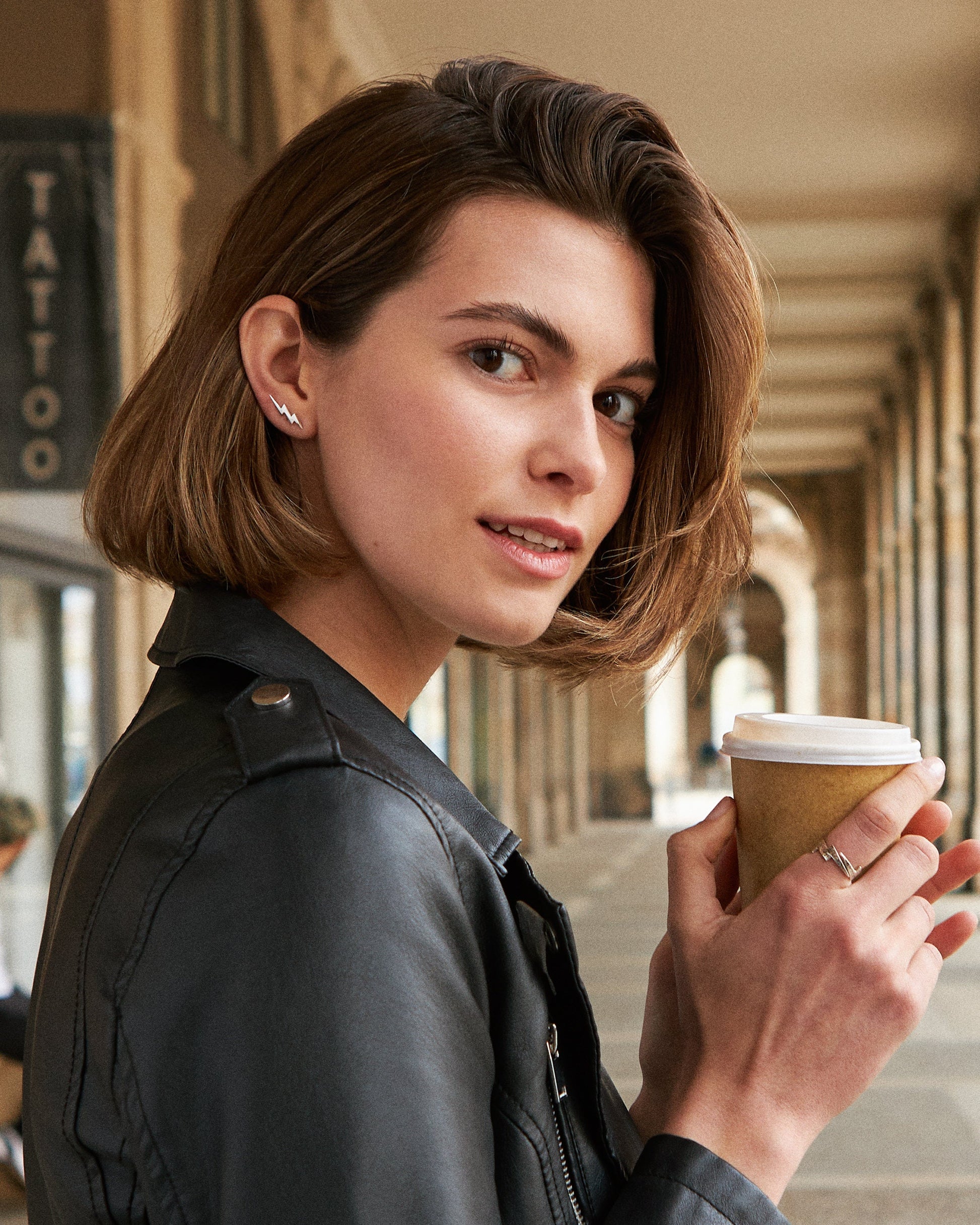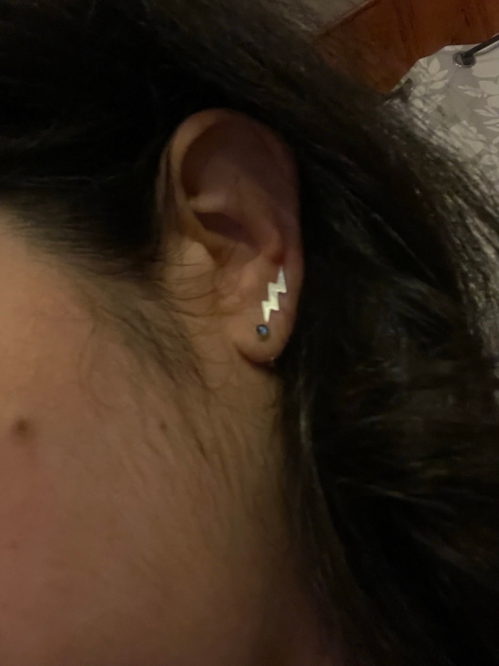 Lightning Bolt Ear Climber cast in solid Sterling Silver. The Earring measures 3/4" (20mm) long. This design is available in four styles: Shiny Sterling Silver, Matte Sterling Silver, Yellow Gold plated and, Rose Gold plated