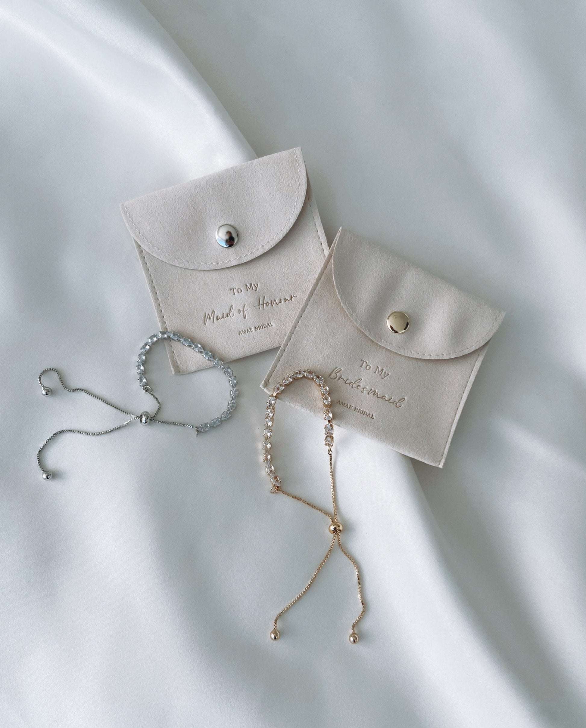 Bridesmaid Bracelet, Maid Of Honour Jewellery Pouch, Bridal Gift, Bracelet Silver Necklace, Gold Diamond Bracelet, Bridesmaid Jewellery Gift