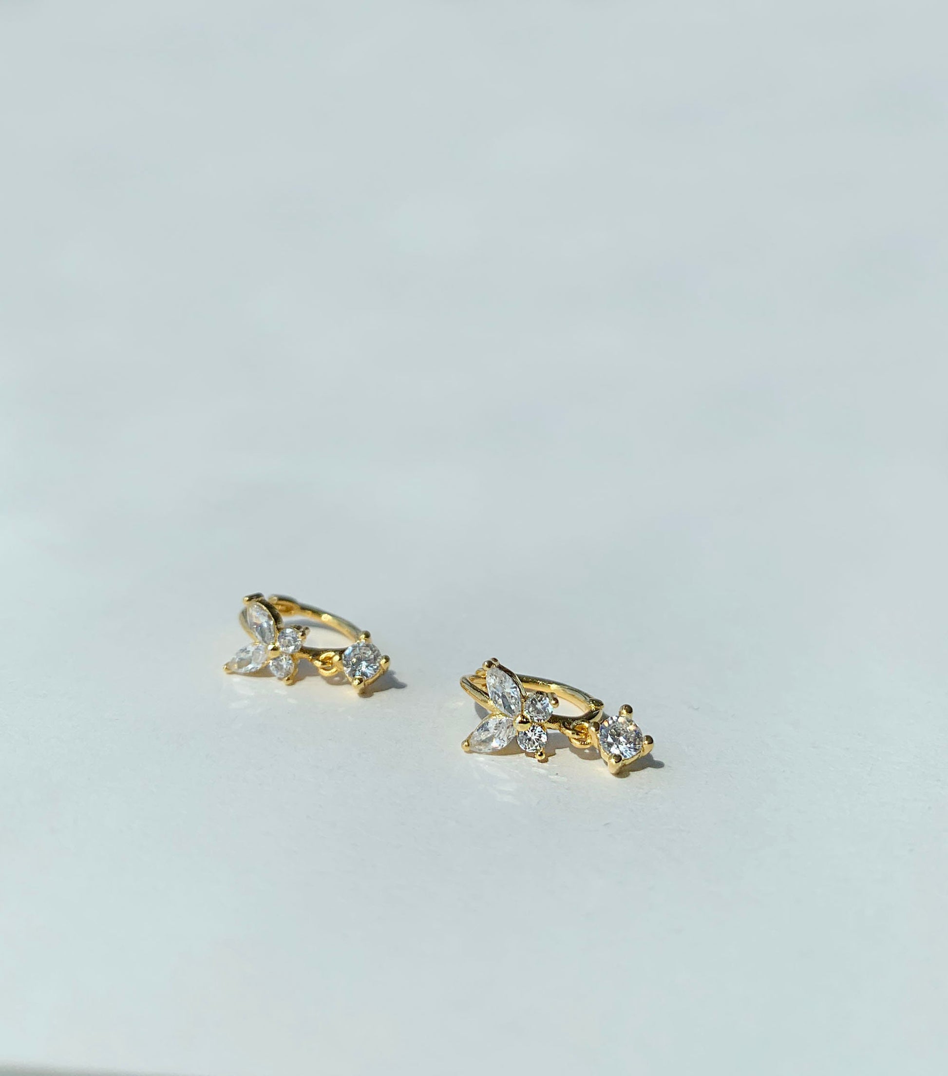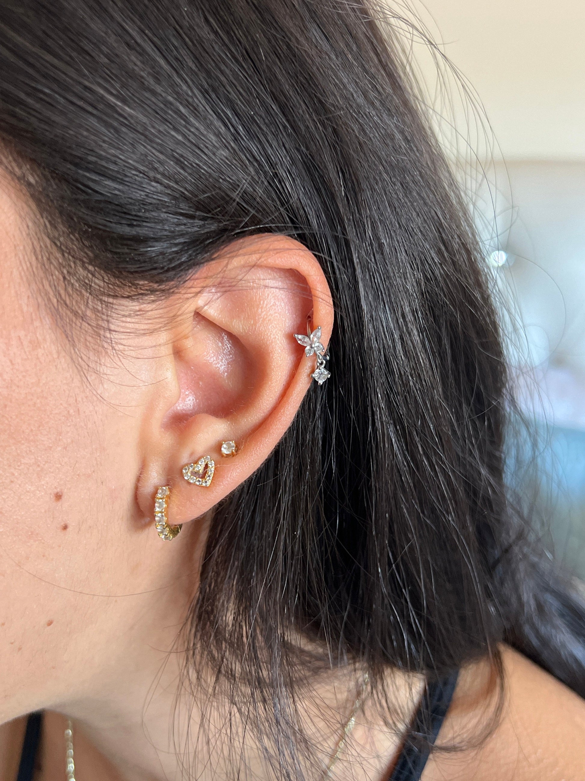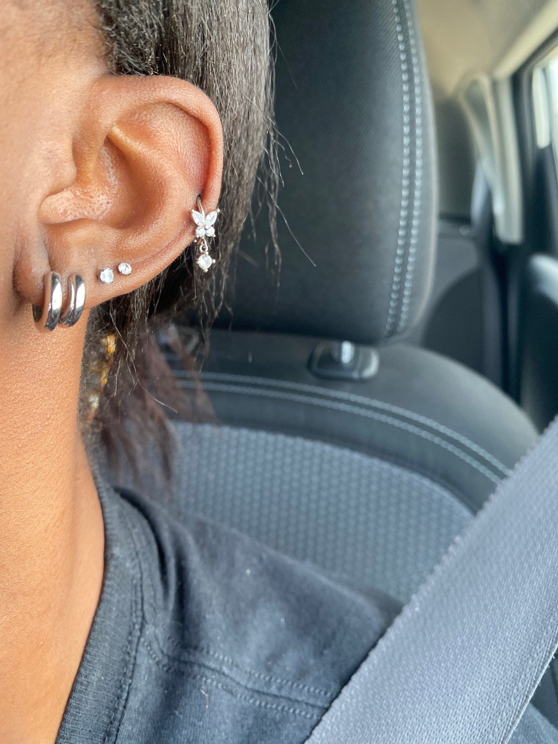 Butterfly hoop earrings - Cartilage hoop earrings - Cz dangle charm hoops - Cz earrings - Minimalist earrings - Tiny Hoop Earrings