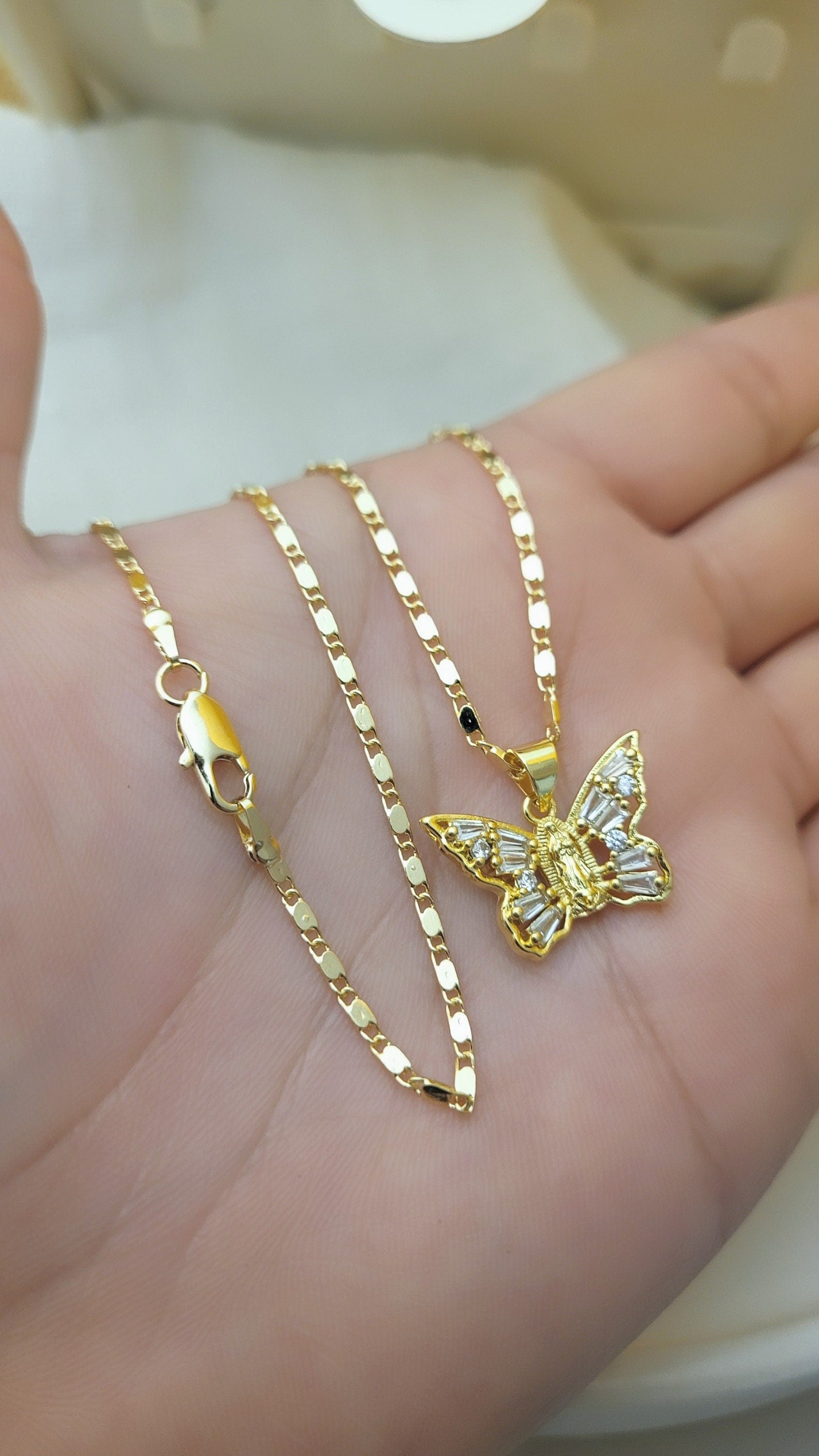 Butterfly Necklace, Virgencita Necklace, oro Laminado, gold filled jewelry, women's jewelry, Virgen Mary, gift for her, regalo para mujer