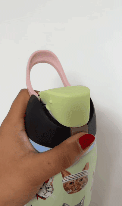 This bottle features a playful cat collage that cat moms and dads will absolutely adore.