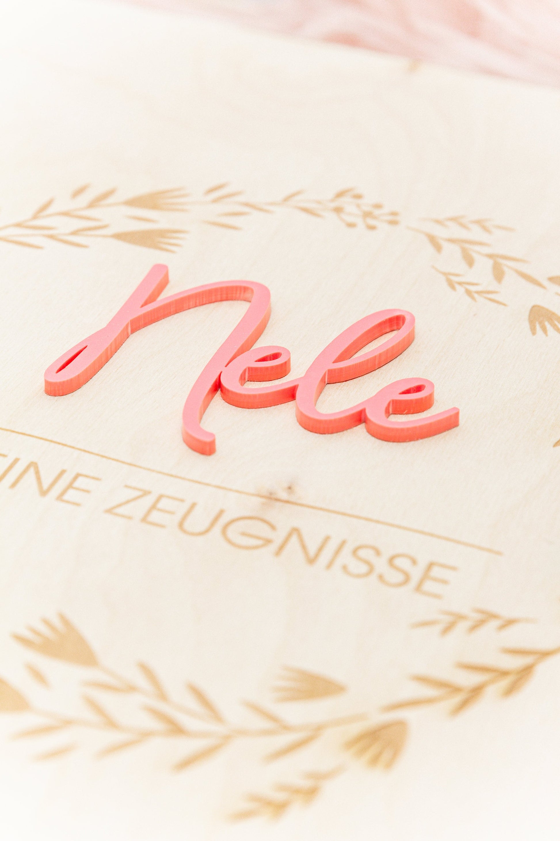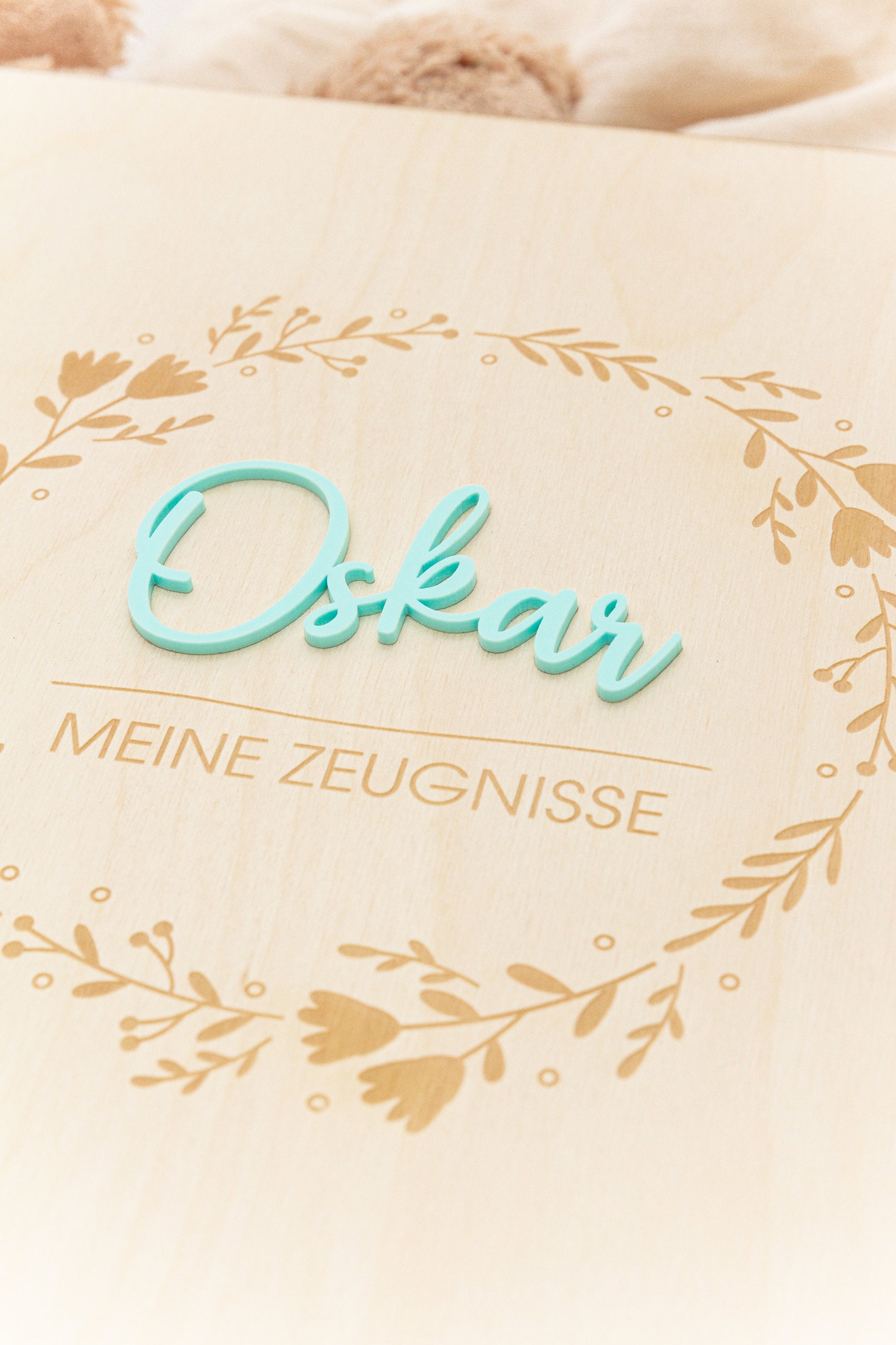Certificate folder made of wood with floral patterns, folder for certificates with name, school enrollment gift for school child, certificate folder A4 with transparencies