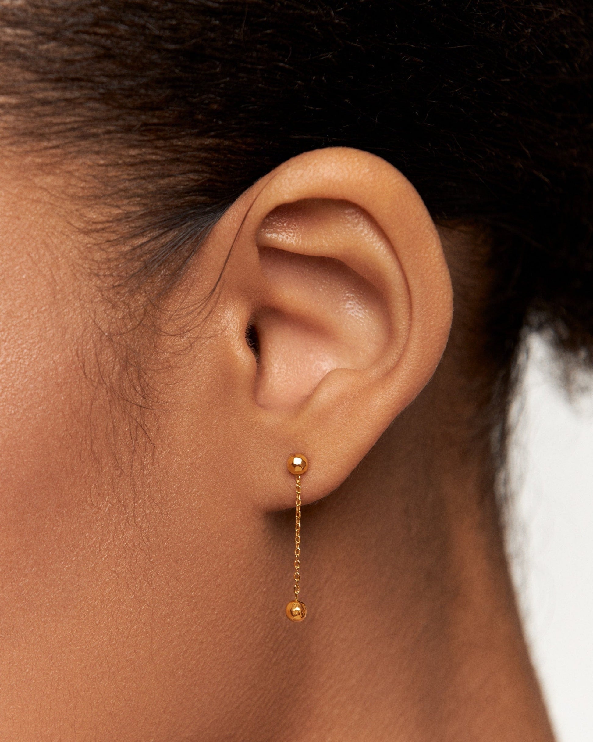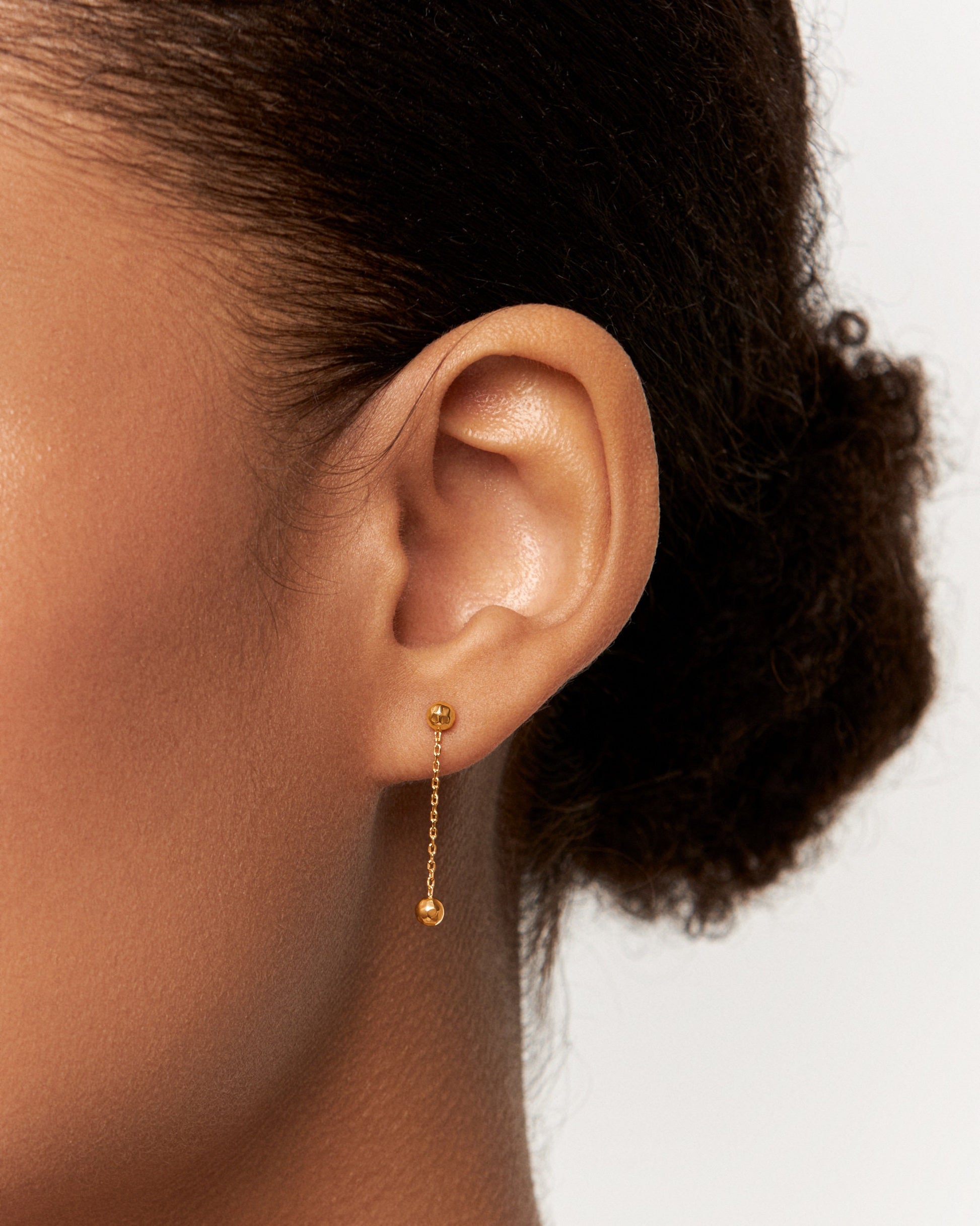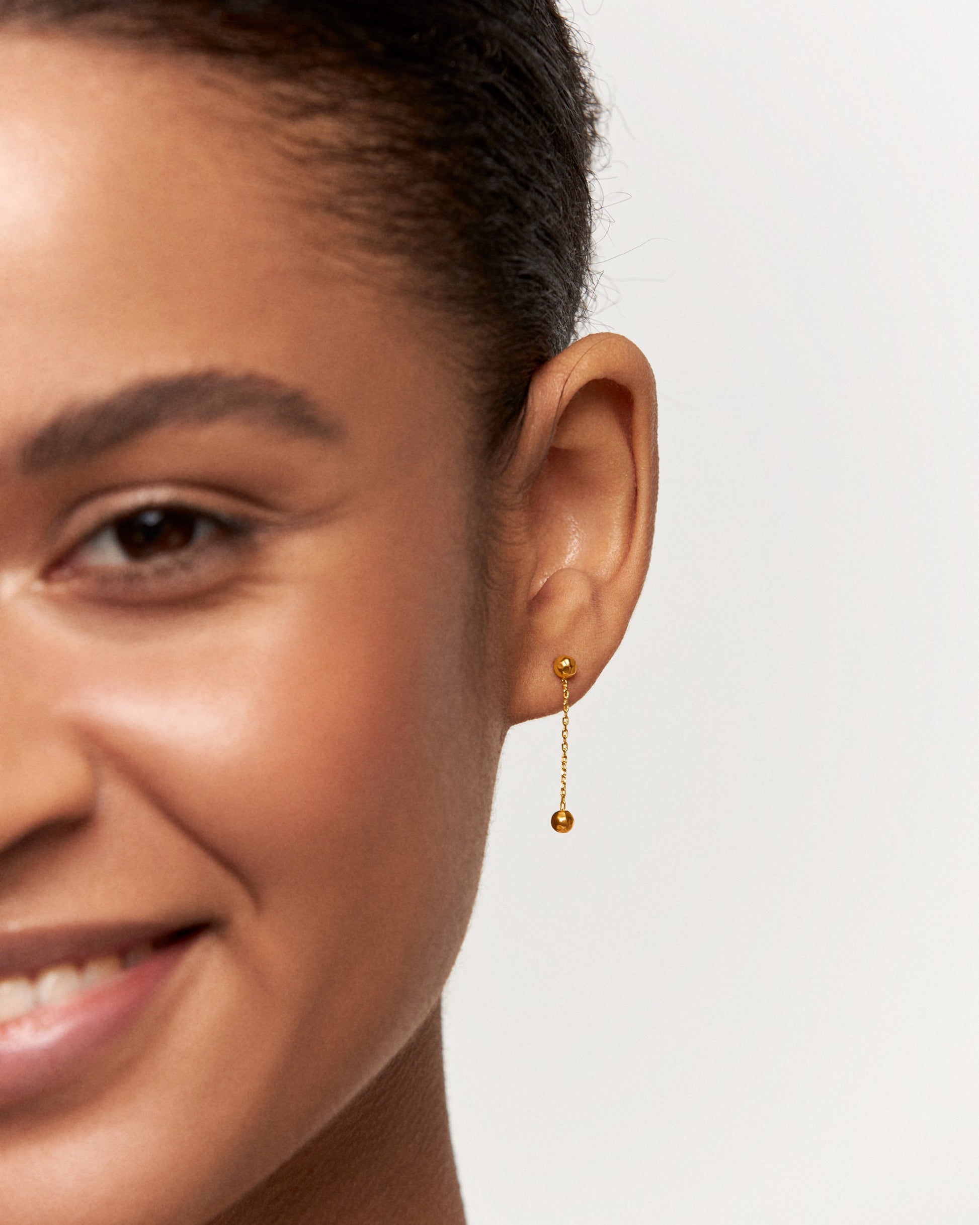 Chain Ball Earrings • Gold Ball Threader Earrings • Drop Ball Earrings • Silver Chain Dangle Earrings • Double Ball Earrings - CST024