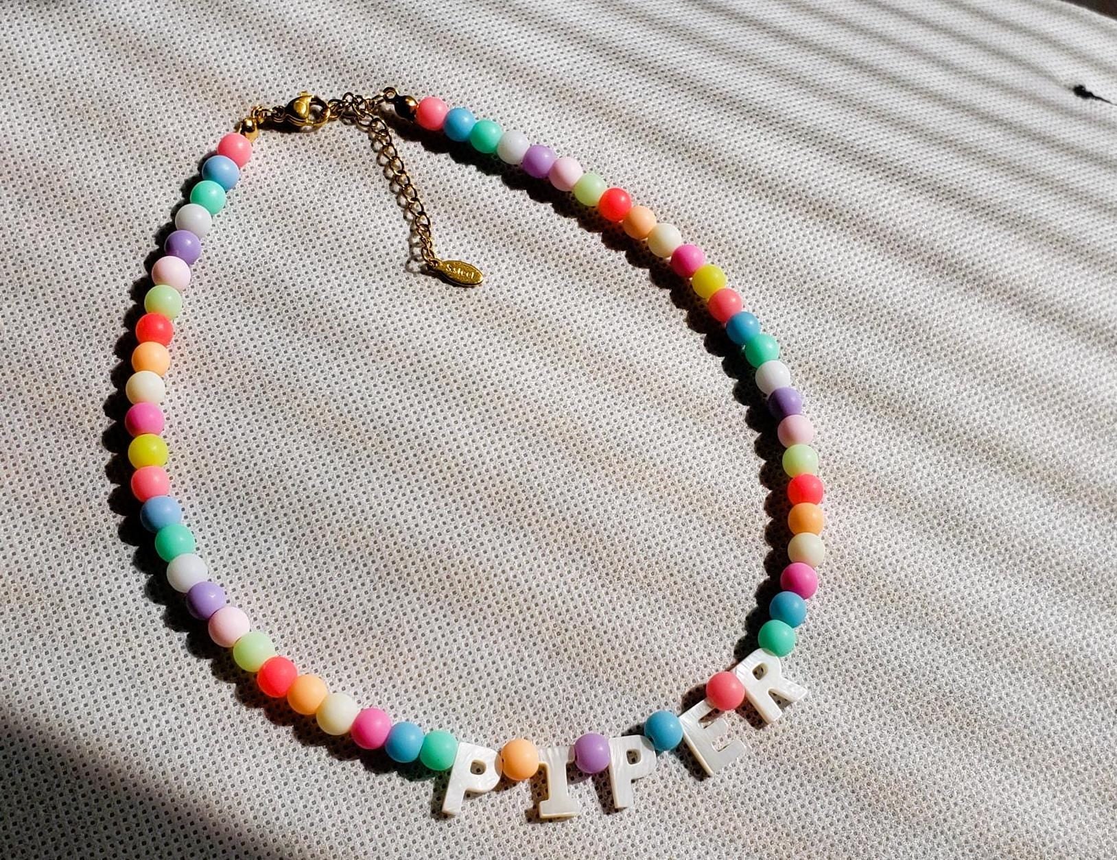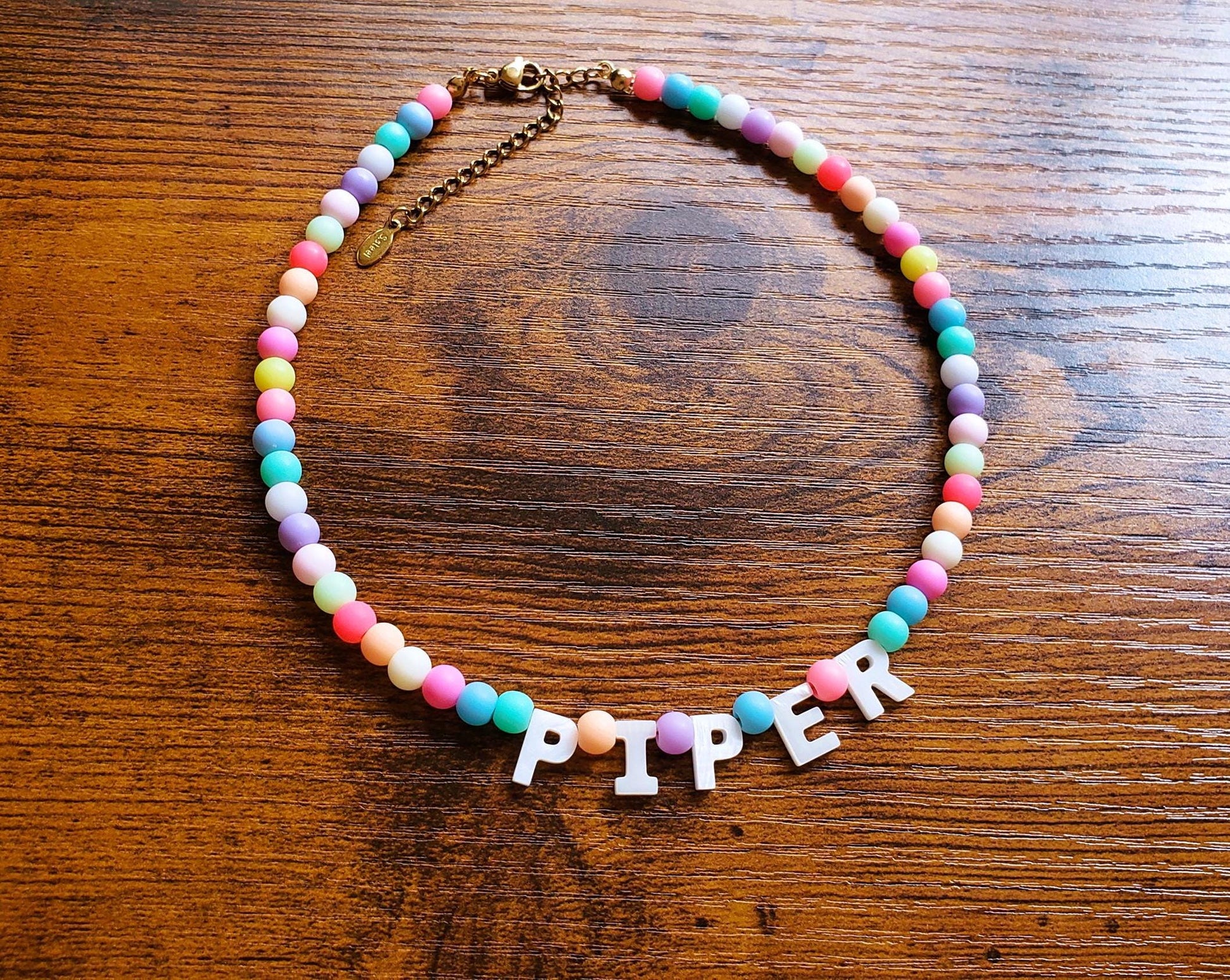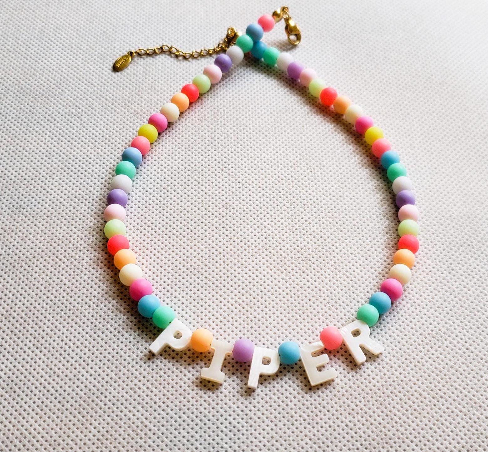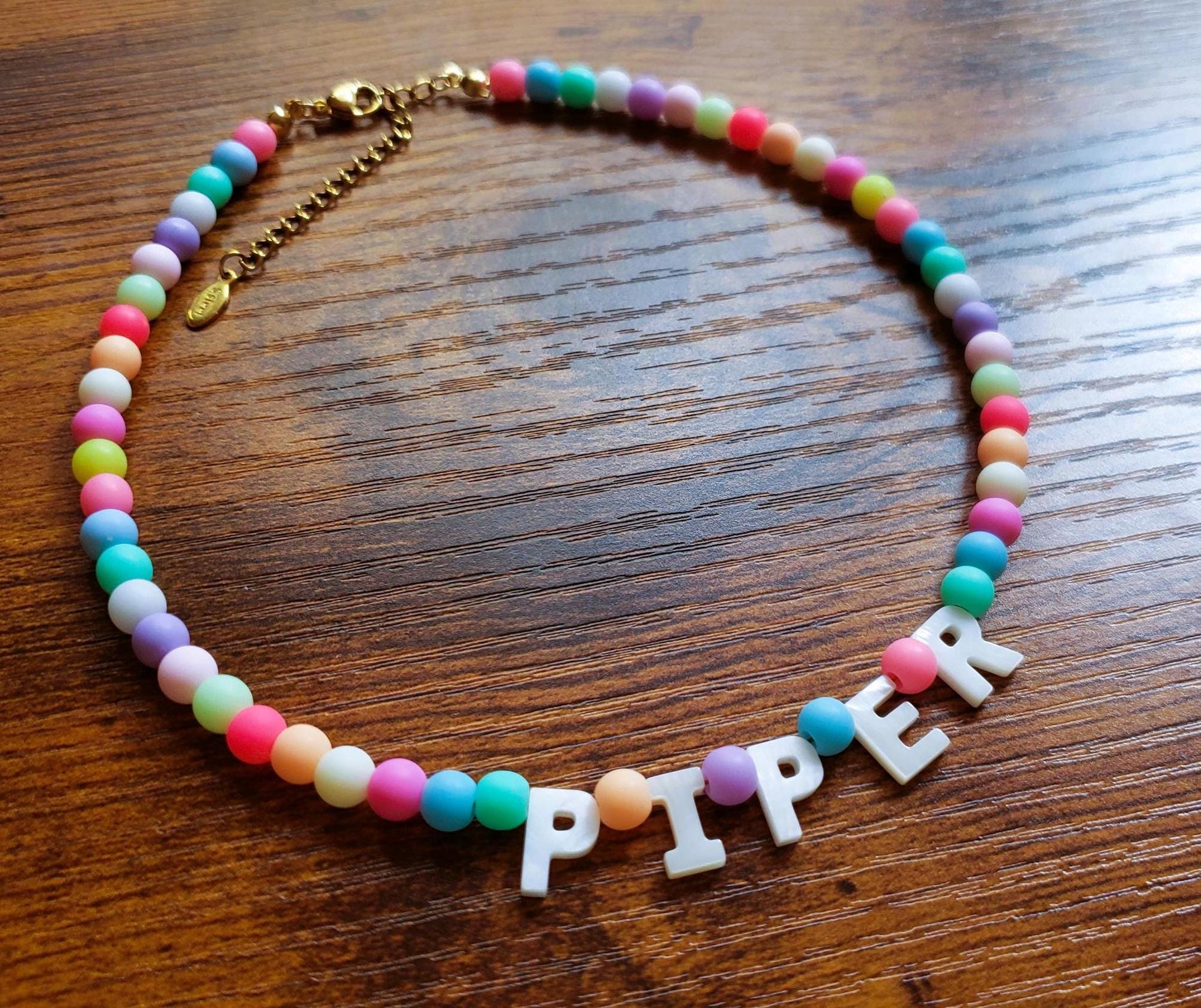 colorful Kids Name Necklace, Custom Word Necklace, Personalized Beaded Necklace, Toddler Girl Necklace