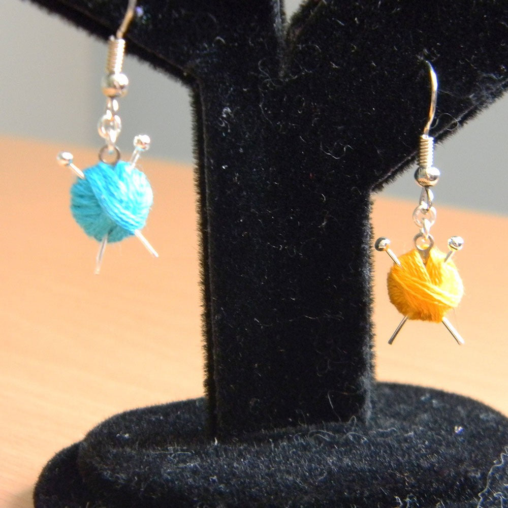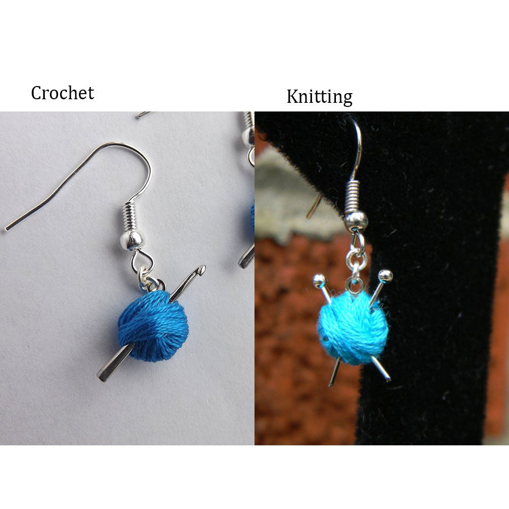 Crochet Hook Earrings- Ever wonder what to get that crocheter or yarn lover in your life? How about a fun set of crochet hook yarn ball earrings! Small handmade dangle style earrings made to look like little balls of yarn with a mini crochet hook poking through attached to silver plated OR sterling silver earring hooks (I also offer these in stud style which can be seen in the last photo here and available in other listings in my shop). Yarn ball size is around 10mm but may vary. Main photo shows them made in blue but more colors are available as seen in the last three photos and even more available that aren't photoed, if you don't see what you're looking for just message me! These will be shipped in a small jewelry box, perfect for gift giving! You will be sent whatever color you choose from the drop down menu so be sure you're selecting the correct one you want!
