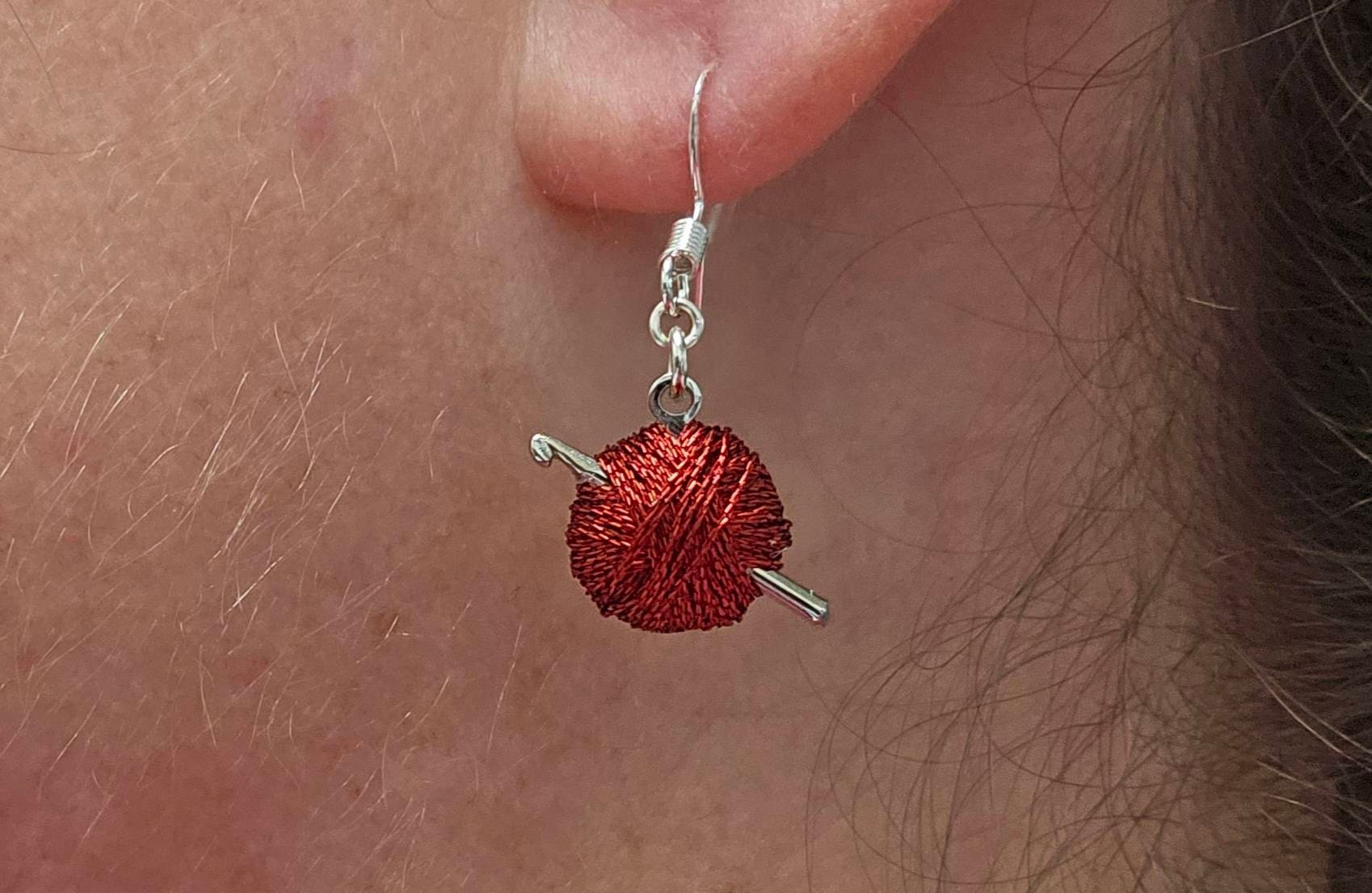 Crochet Hook Earrings, Yarn Ball Earrings, Crocheter Gift, Mini Crochet Hook, Crochet Jewelry, Crochet Dangle Earrings, You Choose Color