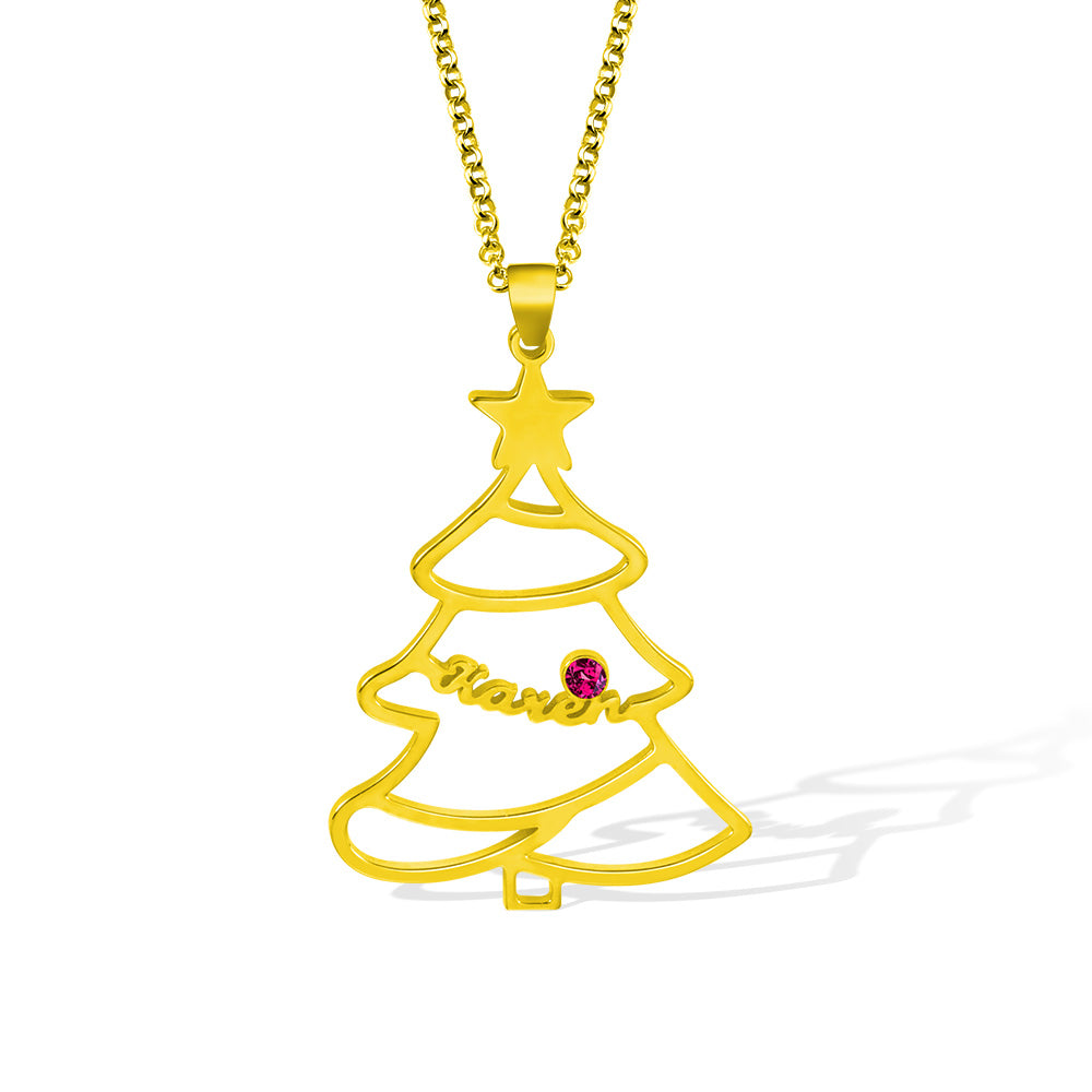 Customized Necklace - This unique necklace in the shape of Christmas tree can be customized with 1-7 names of family members and birthstones respectively to express your love for them.