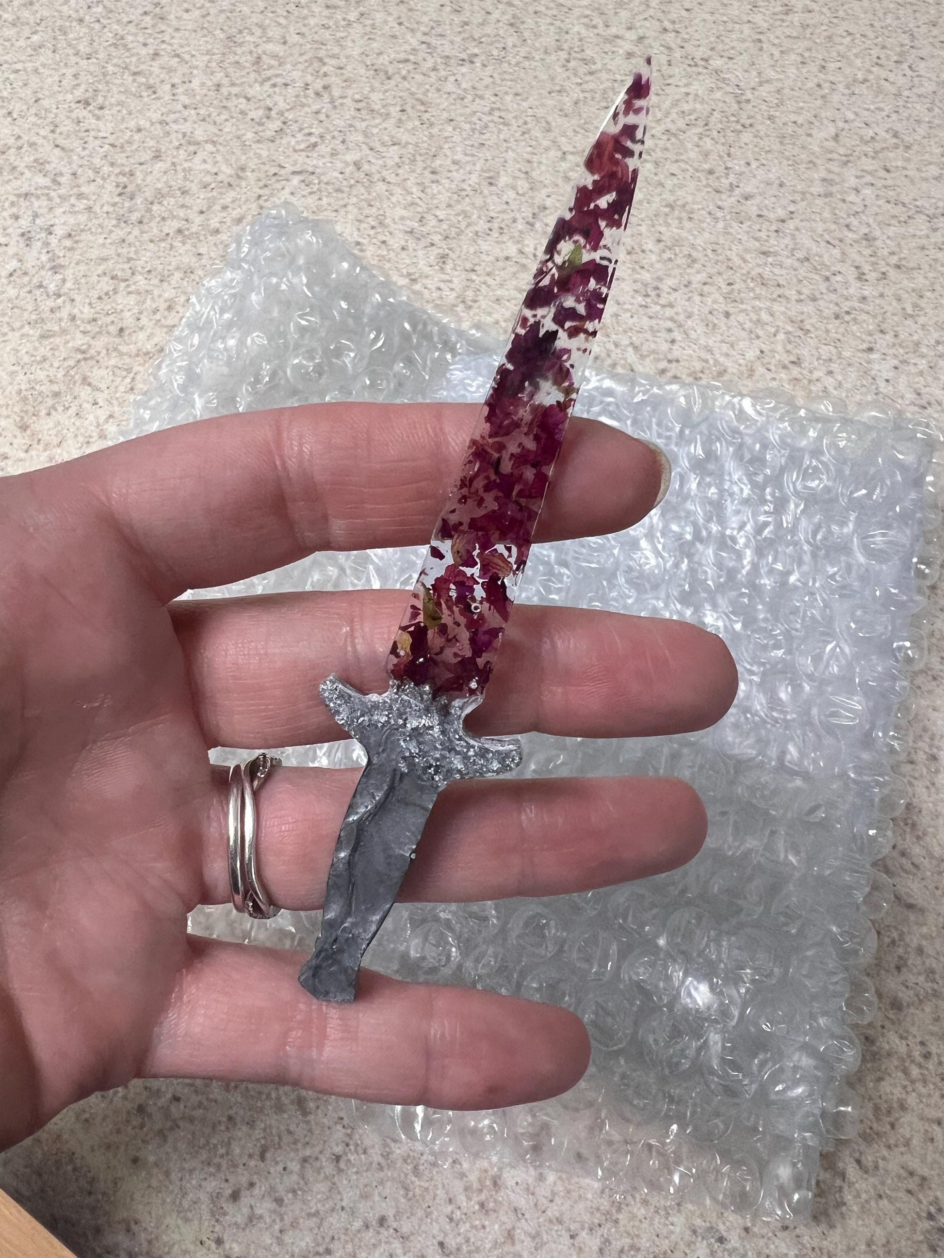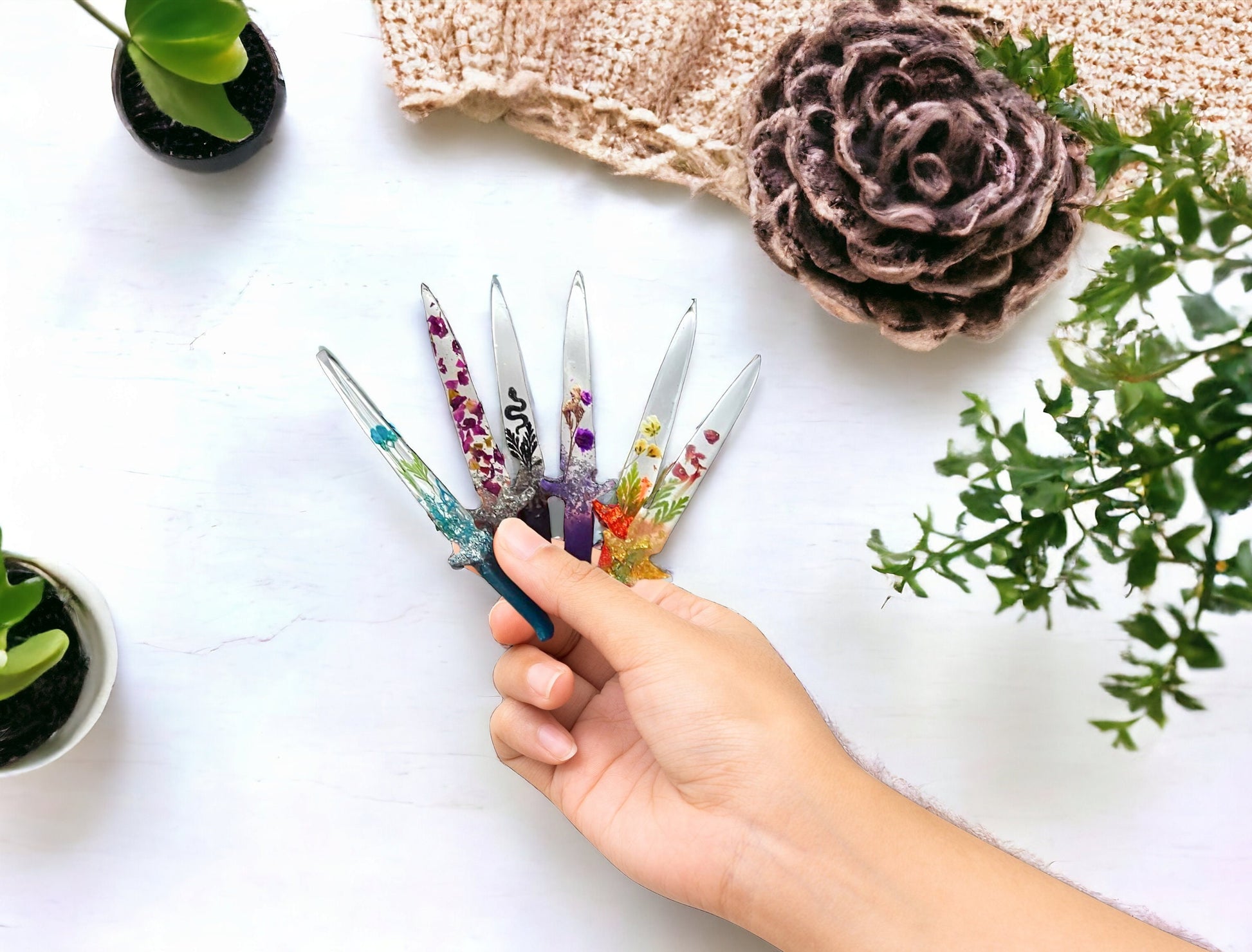 Don't settle for an ordinary bookmark when you can elevate your reading experience with this one-of-a-kind resin dagger bookmark. It's not just a tool to hold your page; it's a piece of art that reflects your passion for books and creativity.