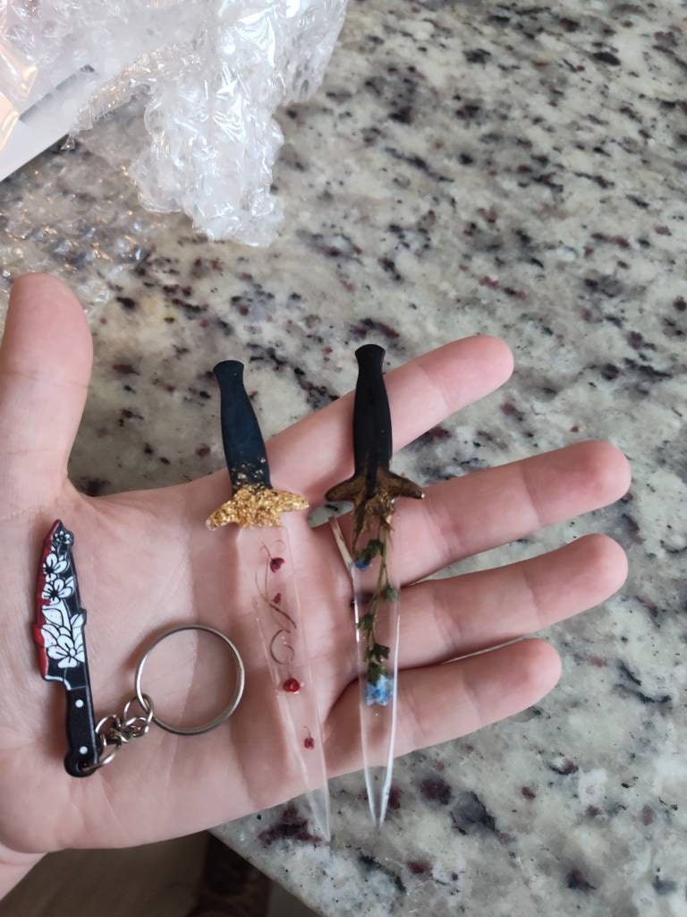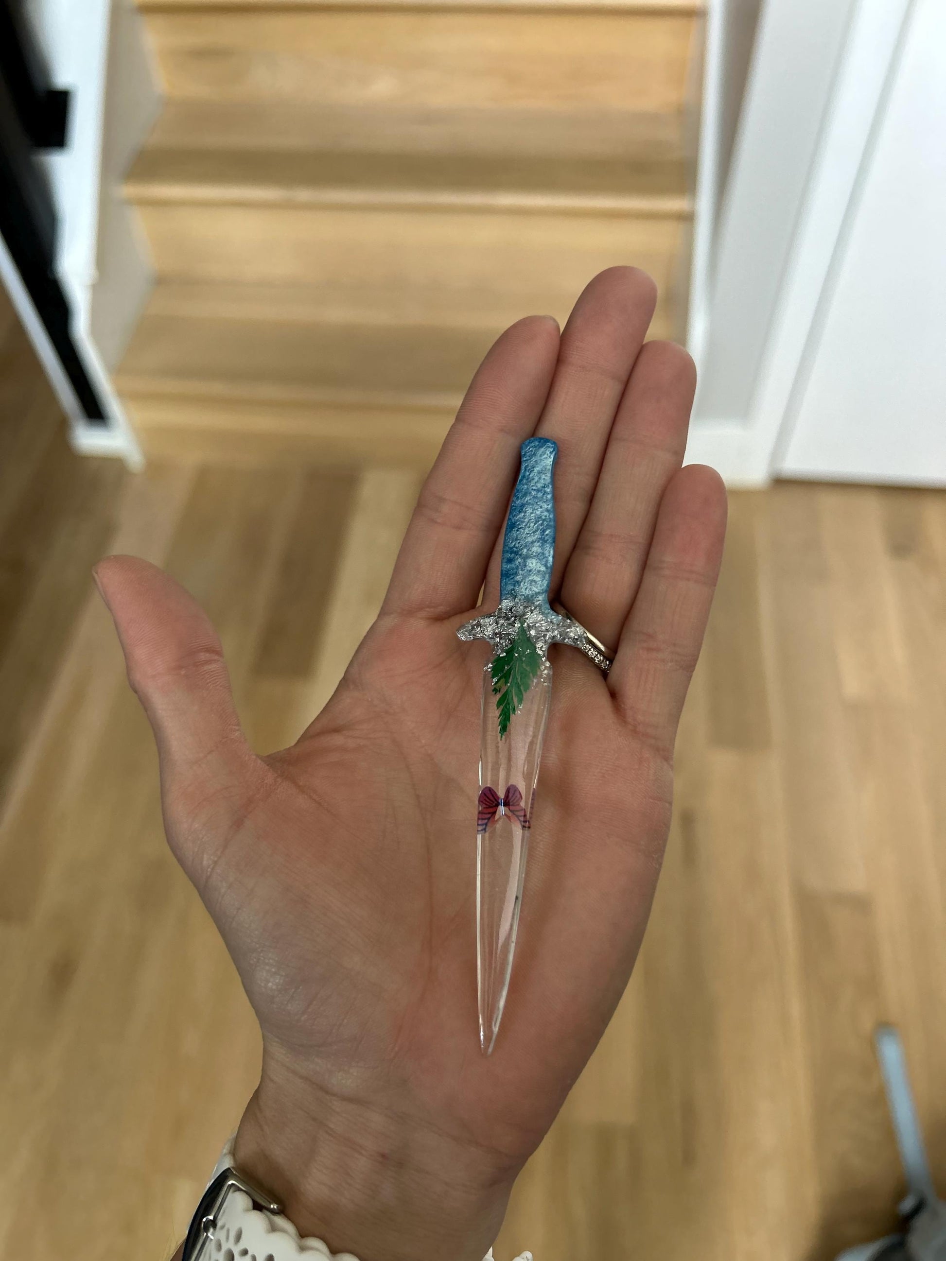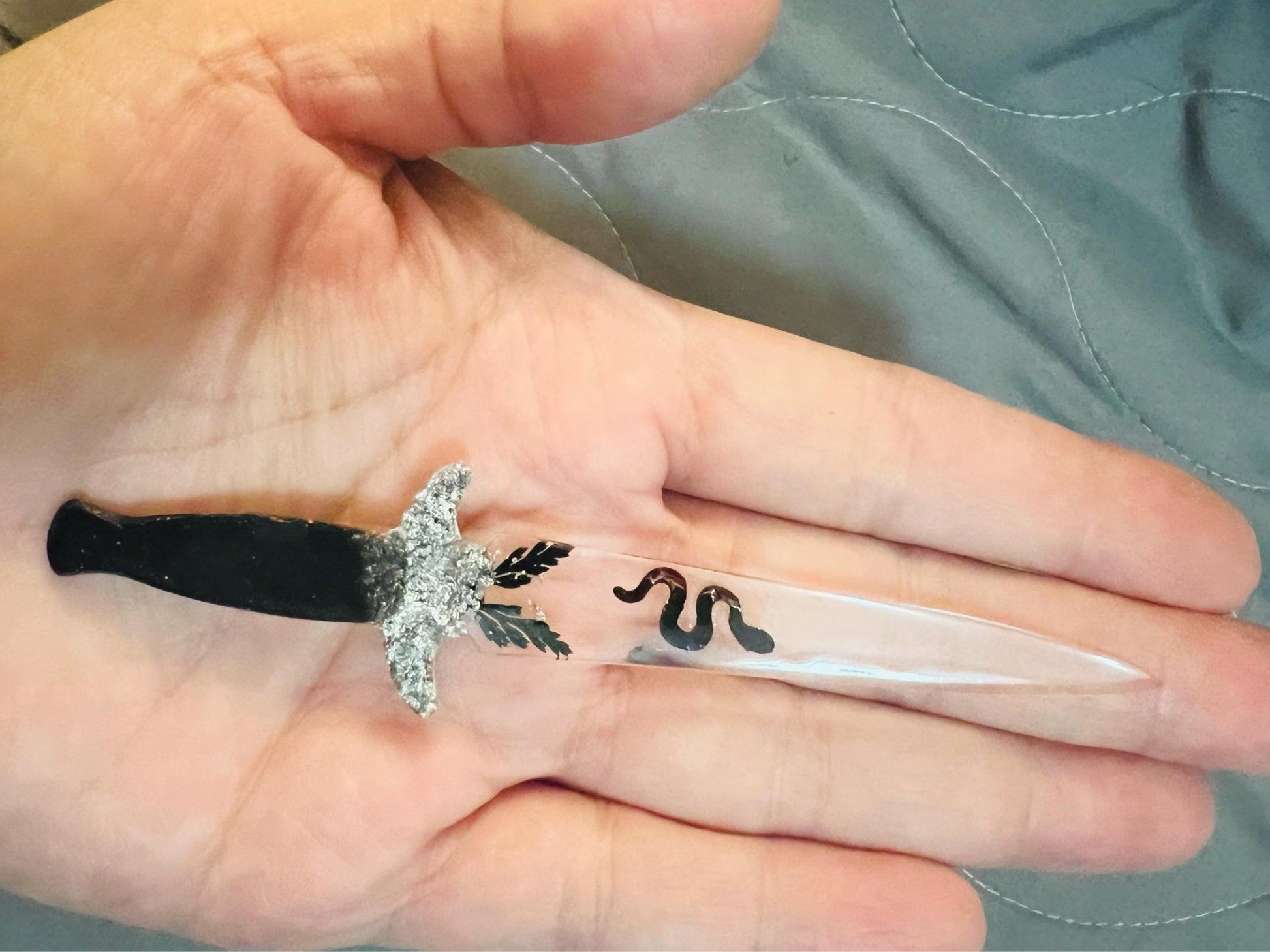 Surprise the book lover in your life with this unique gift that showcases their love for literature and all things enchanting. The custom resin dagger adds a touch of edginess to your reading routine, making it a standout accessory for any avid reader.