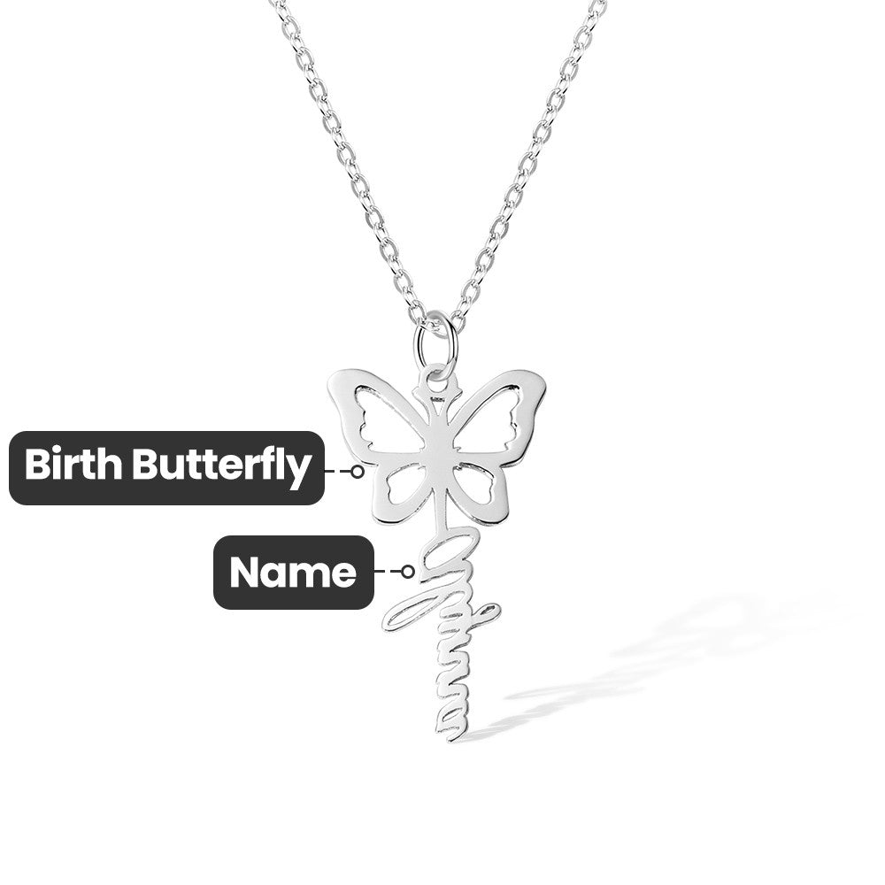Custom Birth Butterfly Name Necklace - This necklace can be personalized with a special name, and features a delicate birth butterfly design, making a unique piece of jewelry.