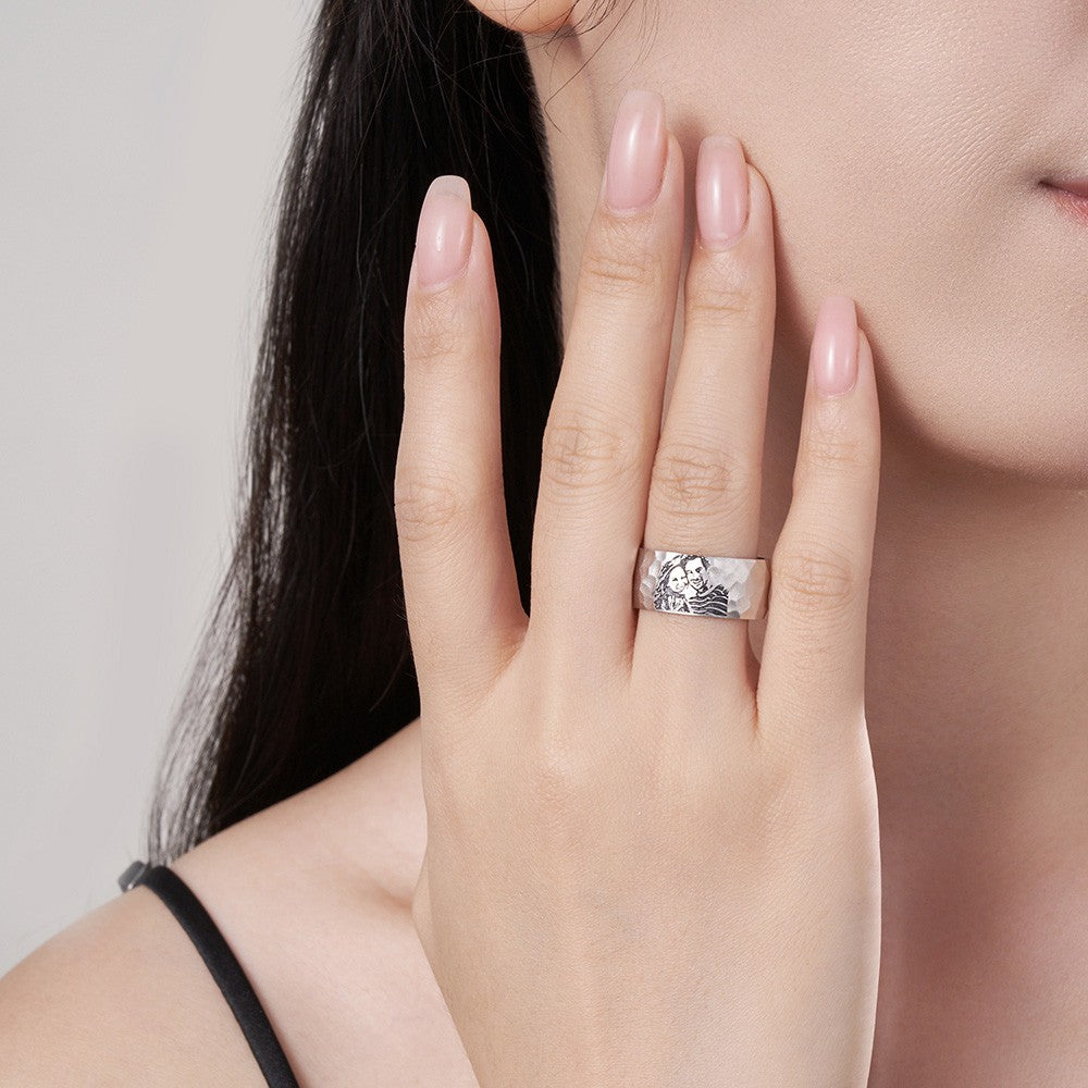 Custom Photo & Inside Engraving - The personalized engraving on this ring goes beyond a simple name or date, allowing you to commemorate the essence of the individual truly. Whether it's a beloved family member, a loyal pet, or a close friend, we will skillfully transform your provided photo or image into a stunning hand-drawn sketch that captures the unique features and expressions of your loved one.