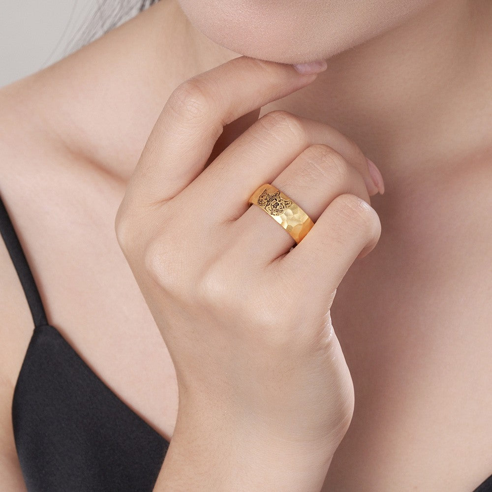Wide Band Ring with Hammered Texture - Crafted from high-quality sterling silver 925/brass, this ring ensures longevity and retains its finish over time. The wide band design of the ring provides a substantial and eye-catching presence on the finger. The hammered texture adds a rustic and artisanal feel, creating a visually appealing contrast to the personalized portrait engraving.