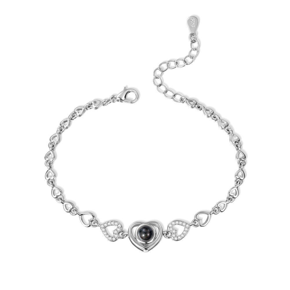 Custom Heart Photo Projection Bracelet, I Love You in 100 Languages, Dainty Memorial Picture Inside Bracelet, Birthday Valentine's Day Gift for Her