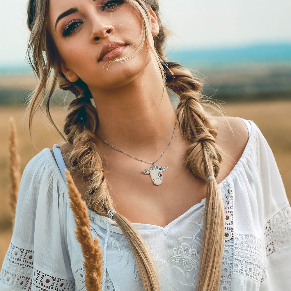 Custom Name and Birthstone Cow Necklace, Retro Bohemian Vintage Necklace, Cow Gifts for Women/Girls, Western Jewelry for Cowgirl
