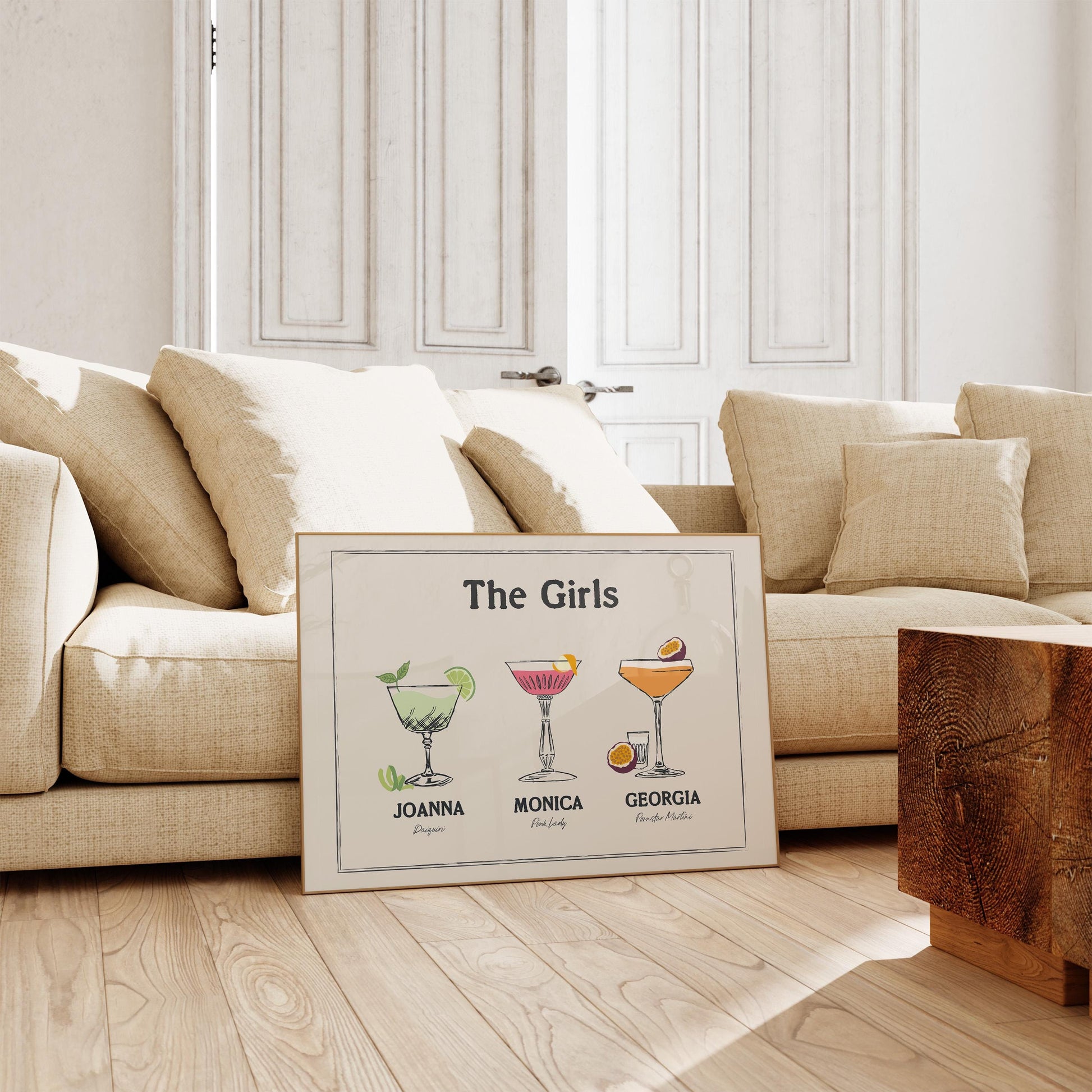 Custom Roommate Drink Print, Roommates as Drinks, Trendy College Apartment Dorm Art, Bar Cart Decor, Cocktail Poster, Personalized Wall Art