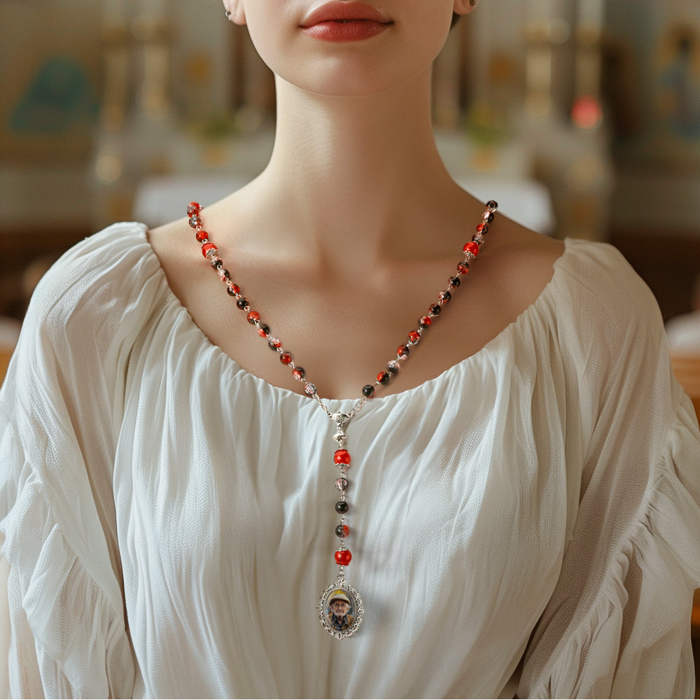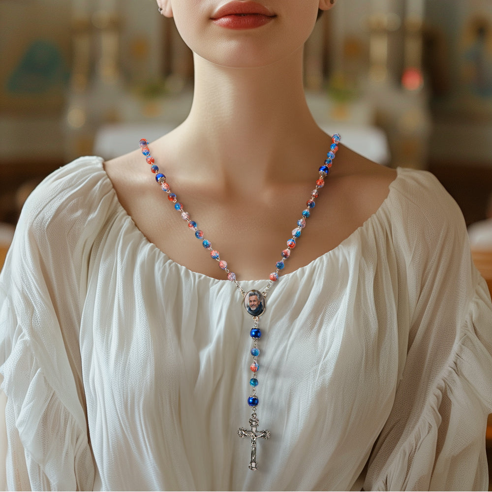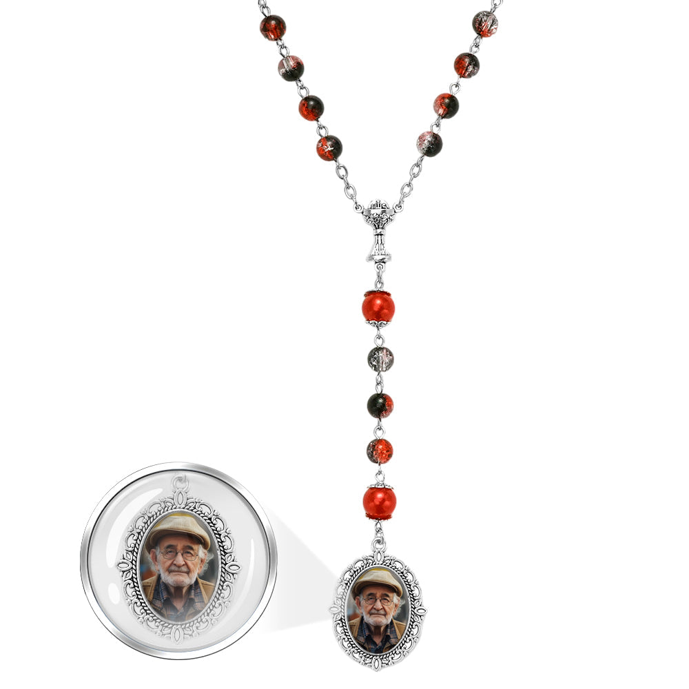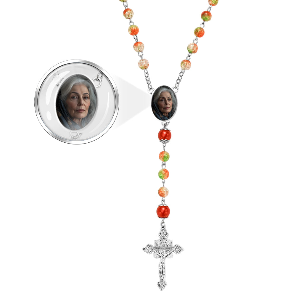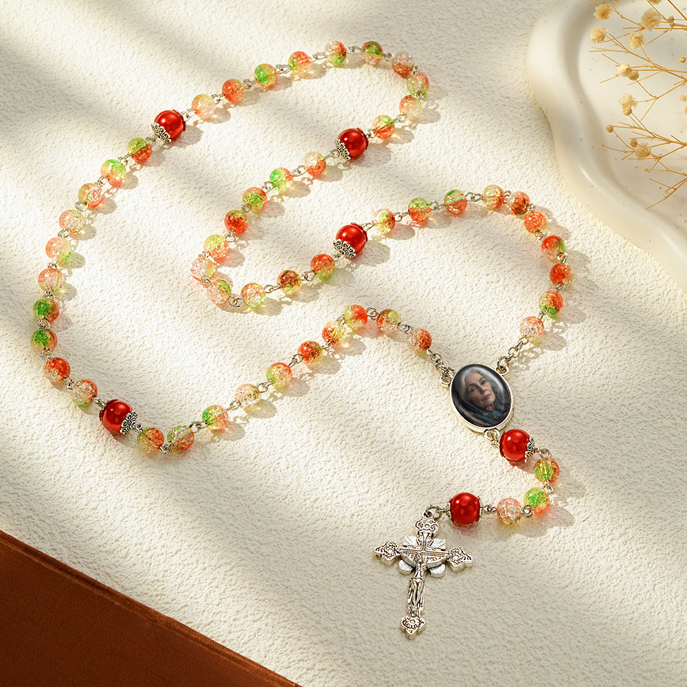 Custom Rosary Beads Cross Necklace Personalized Acrylic Explosion Beads Long Style Necklace with Photo