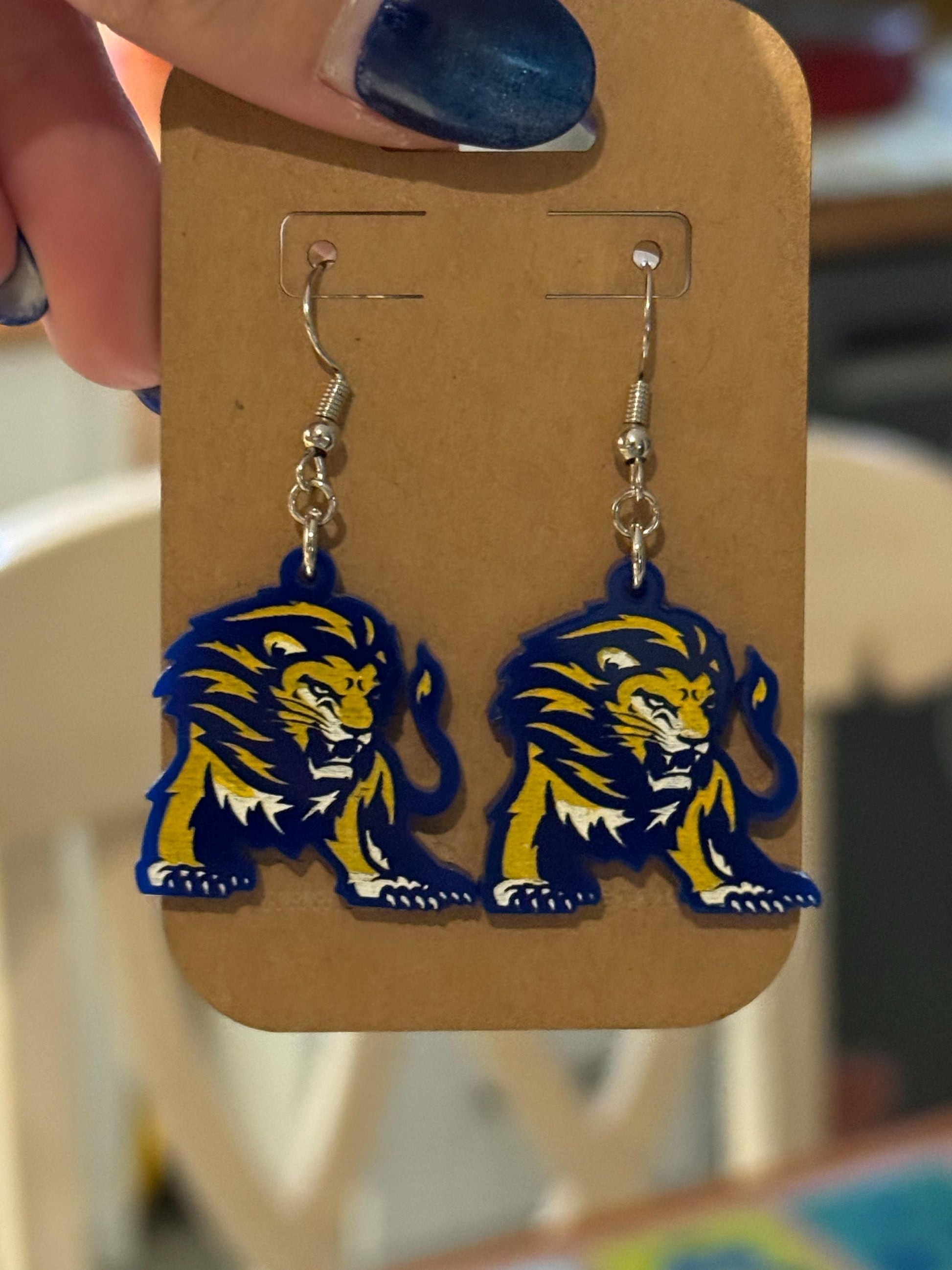 Custom School Mascot/Logo Laser Cut Painted Dangle Earrings | High School | College | Band | Cheer | Booster | Fundraiser