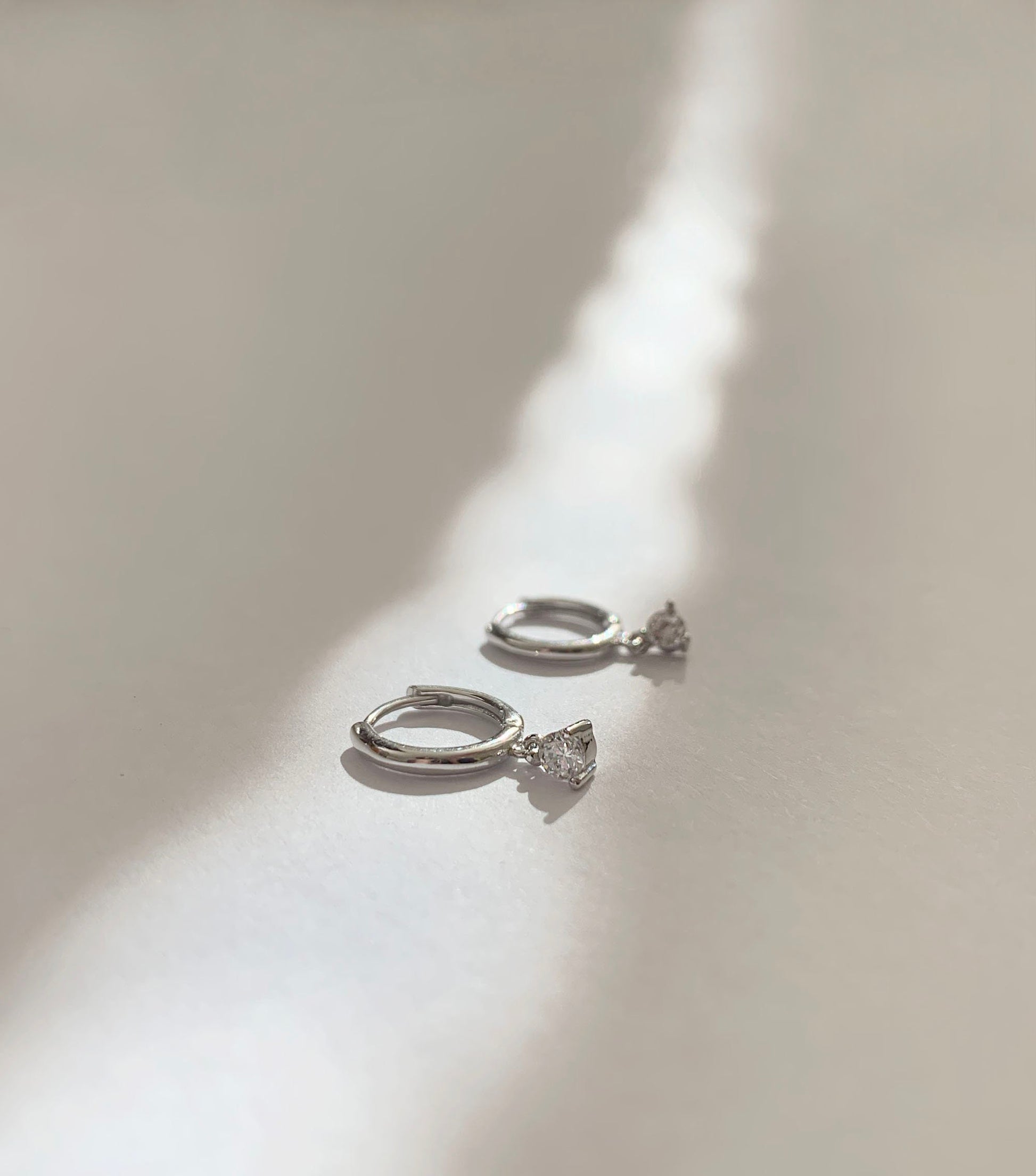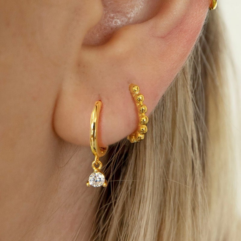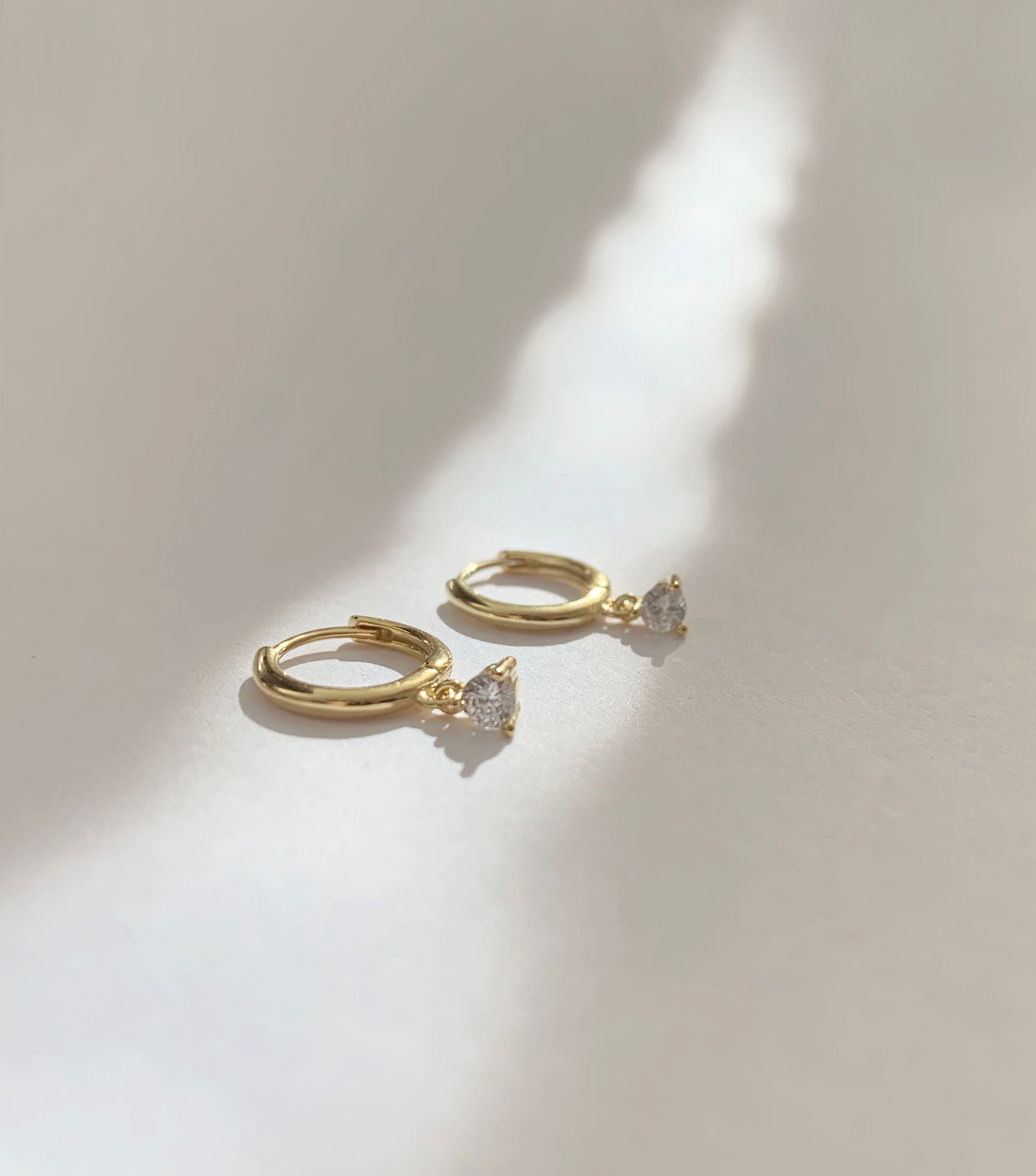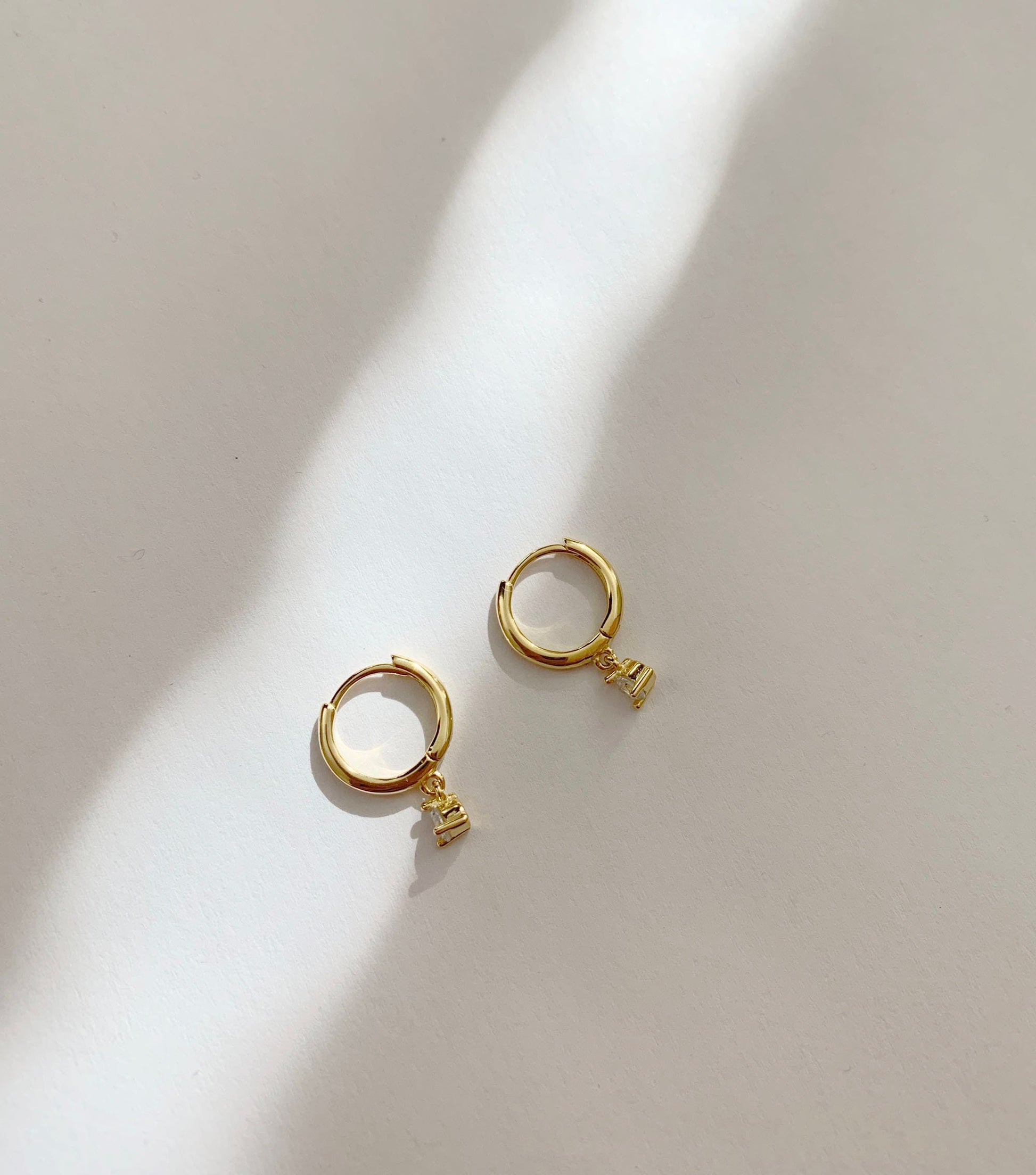 Cz dangle charm hoops - Cz earrings - Minimalist earrings - Tiny Hoop Earrings - Thin hoops - Huggie hoops - Gold hoops
