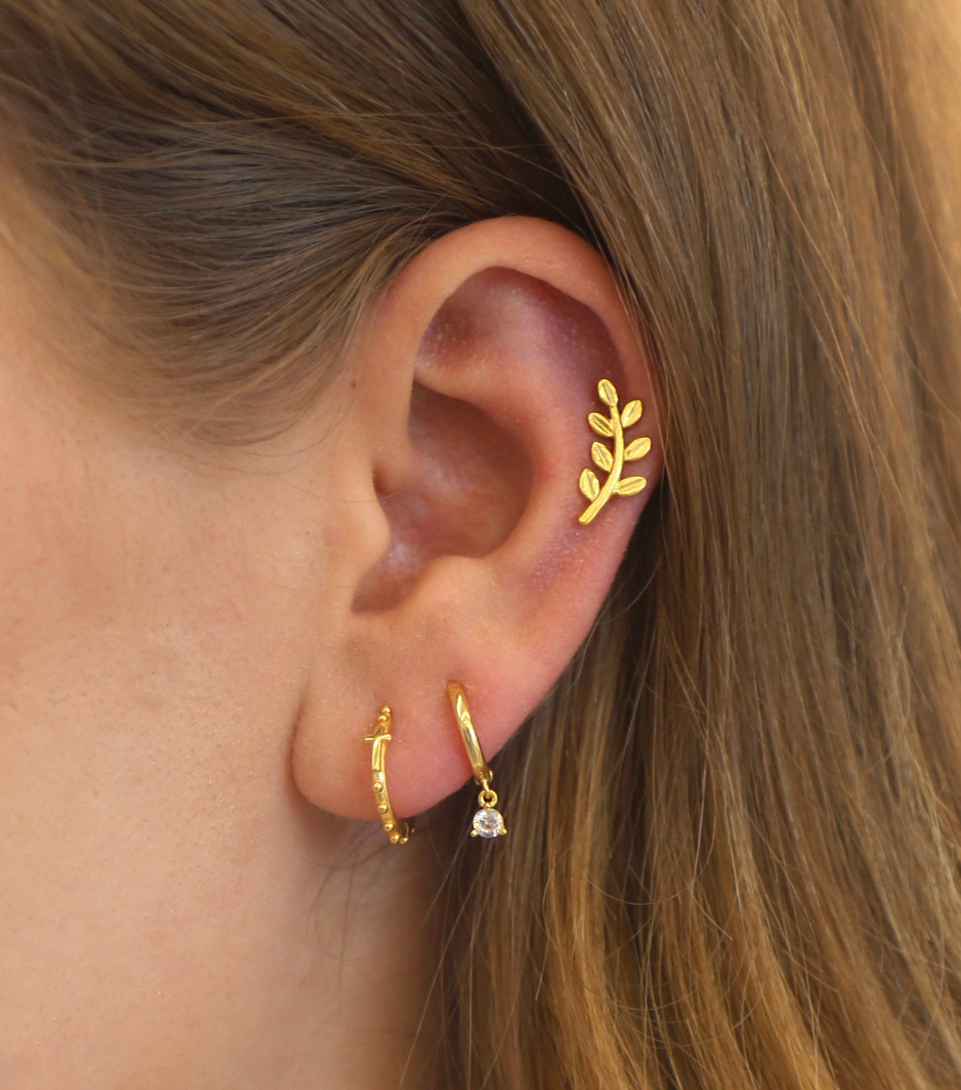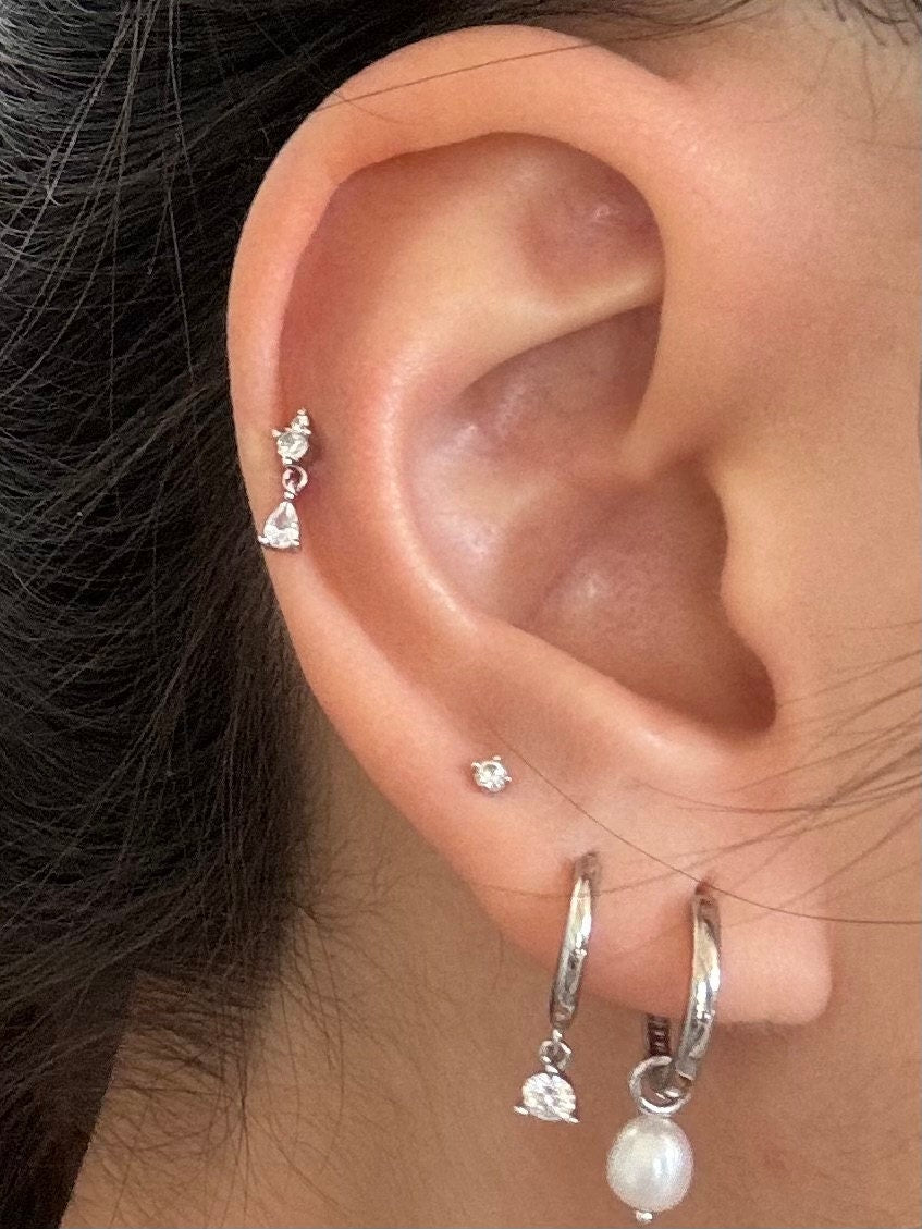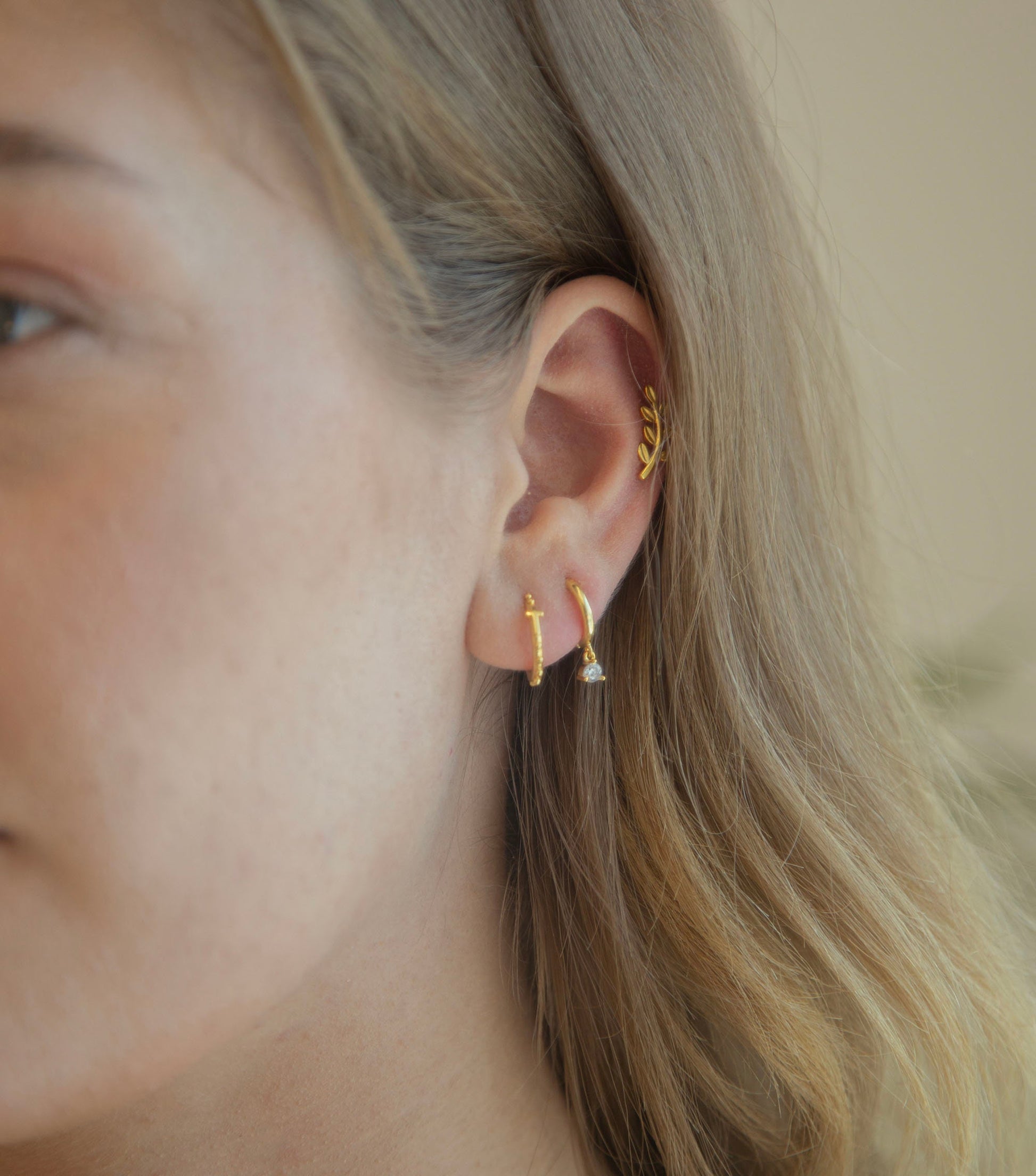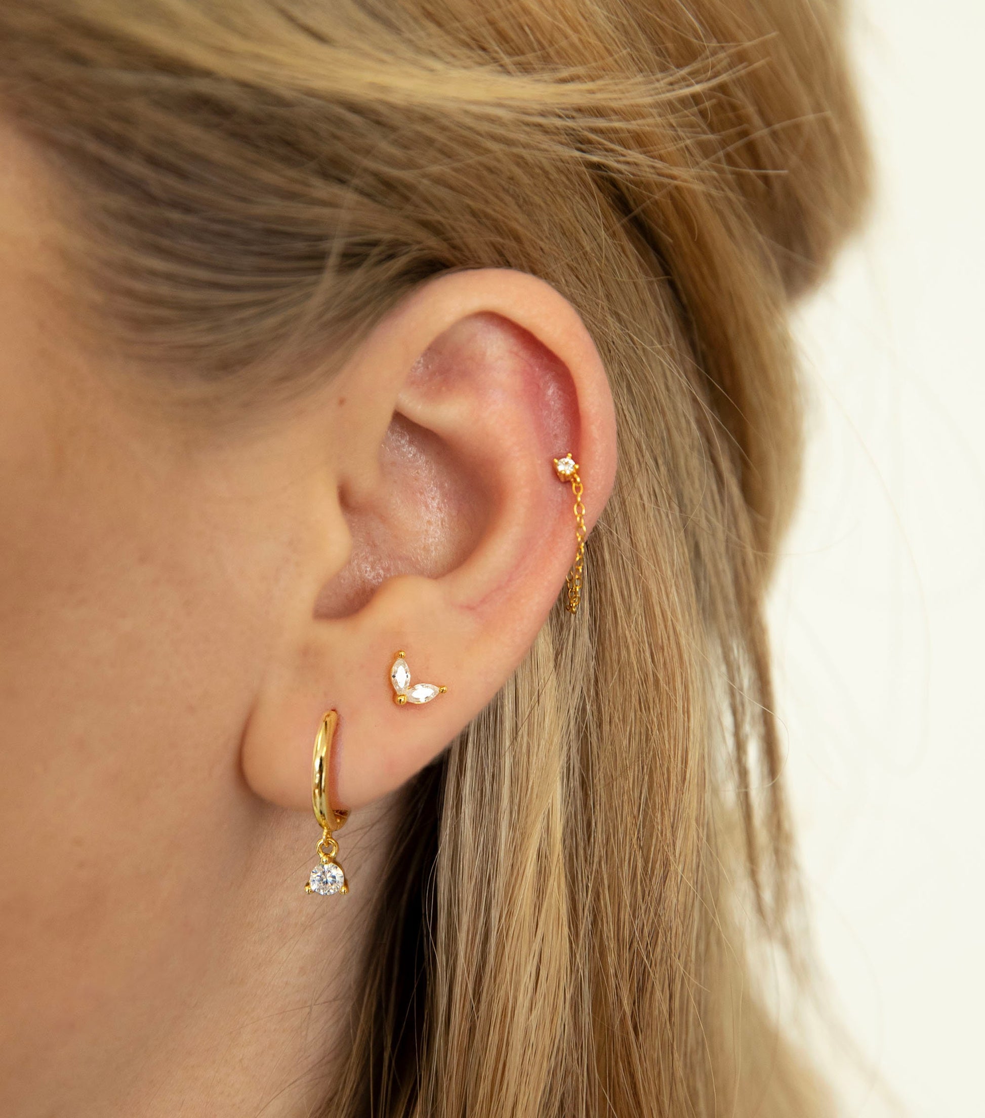 Cz dangle charm hoops - Cz earrings - Minimalist earrings - Tiny Hoop Earrings - Thin hoops - Huggie hoops - Gold hoops