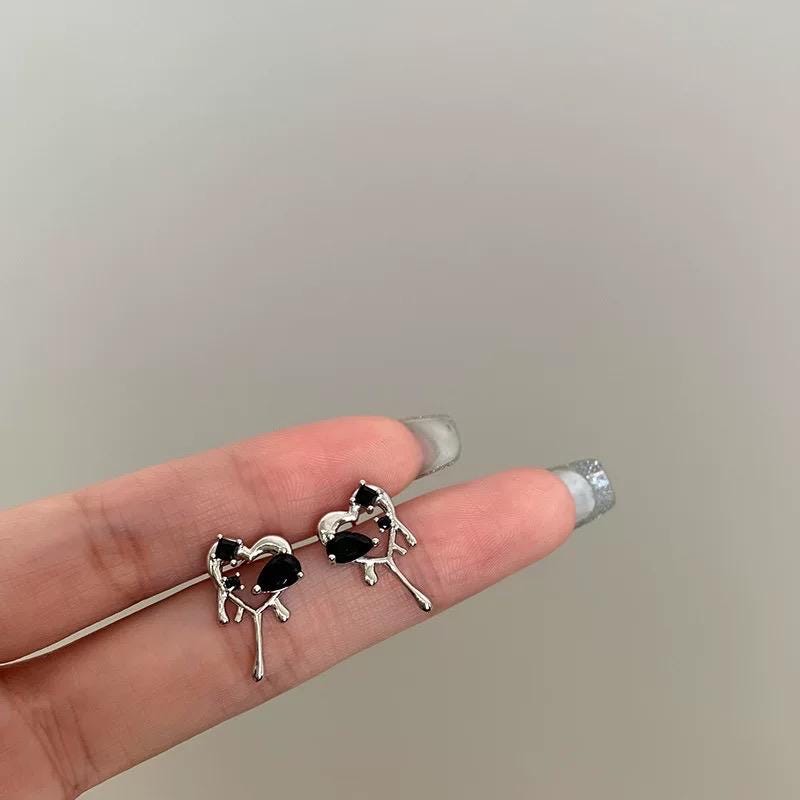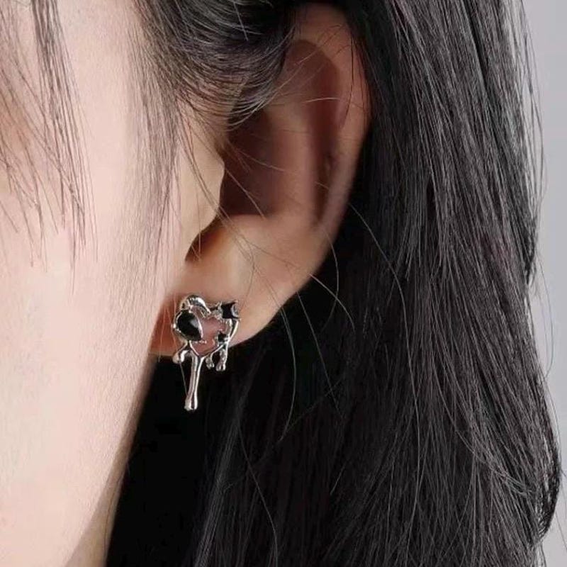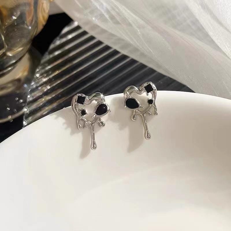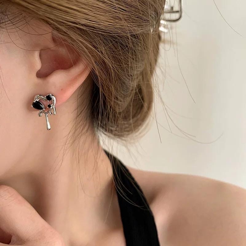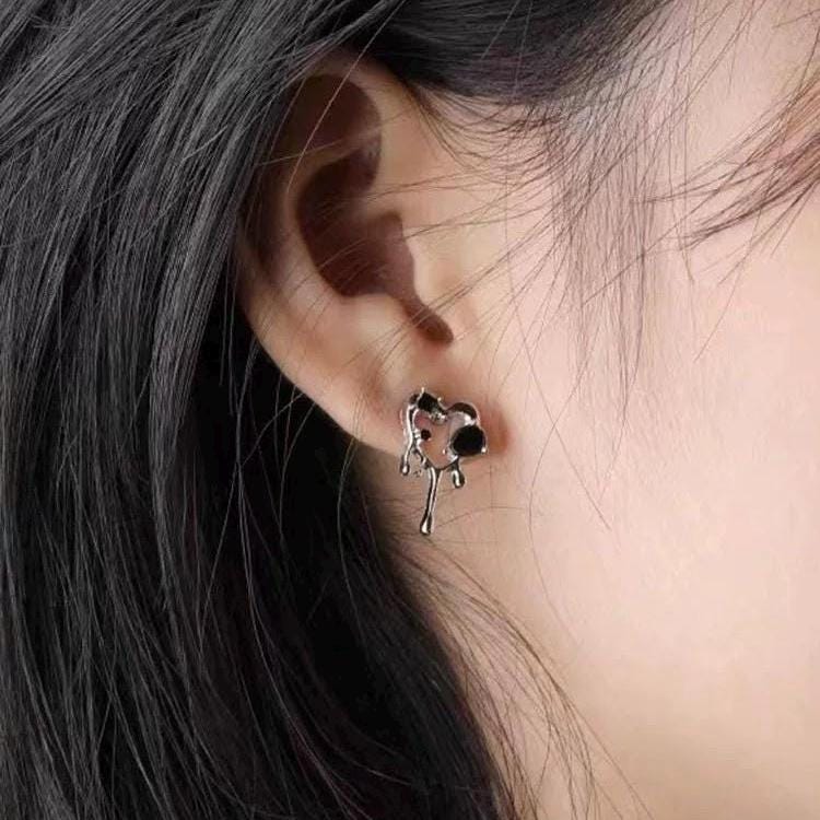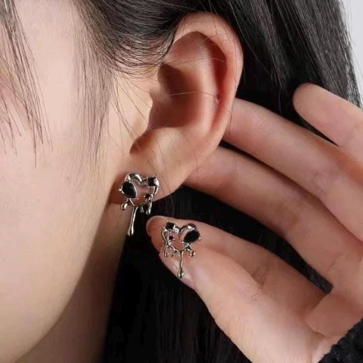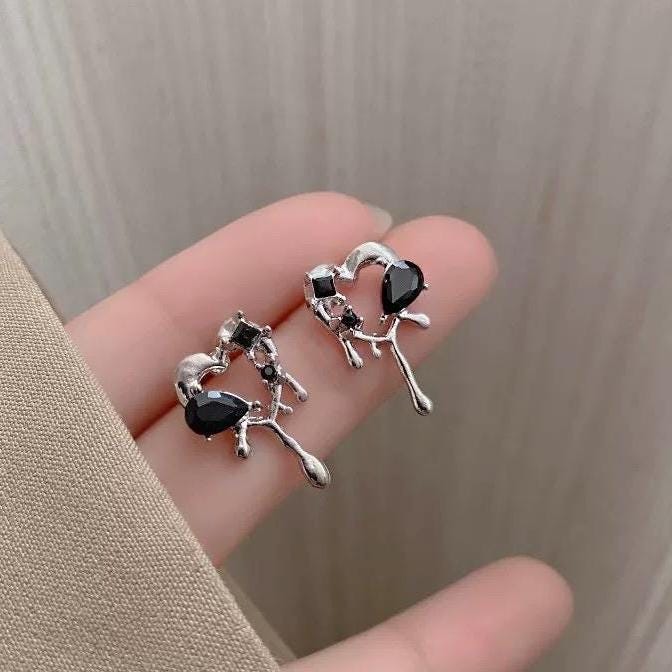 🖤Embrace your unique style with our Black Drip Melting Heart Studs, expertly crafted to embody the perfect blend of edginess and charm. Designed with intricate detail, these aesthetic earrings feature unique black gemstones that sparkle with an alluring depth. Measuring approximately 0.5 inch in width, these dainty ear studs are lightweight and comfortable for all-day wear, making them ideal for daily outfits or special occasions.