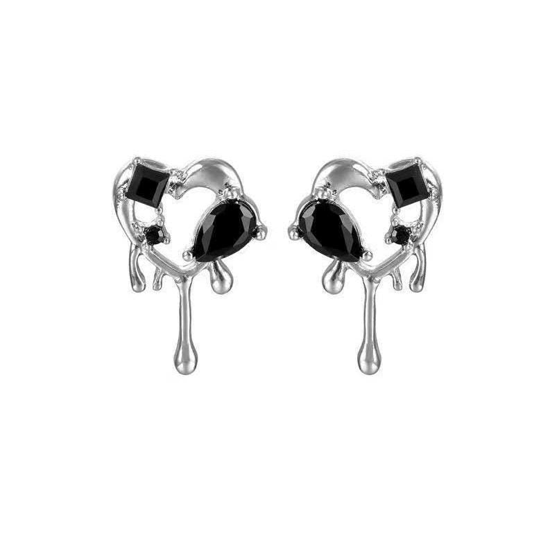 Dainty ear studs - Black Drip Melting Heart Earrings, Gothic Jewelry for Y2K Style Lovers, Great Gift for Edgy Friends