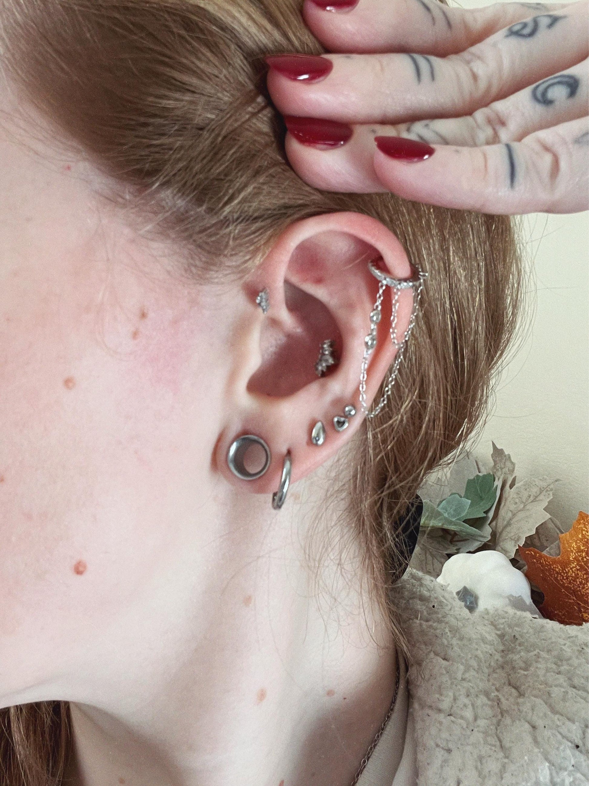 Dainty Pave CZ Helix Huggie Hoop Earrings With 2 Dangling Chains With Bezel CZ