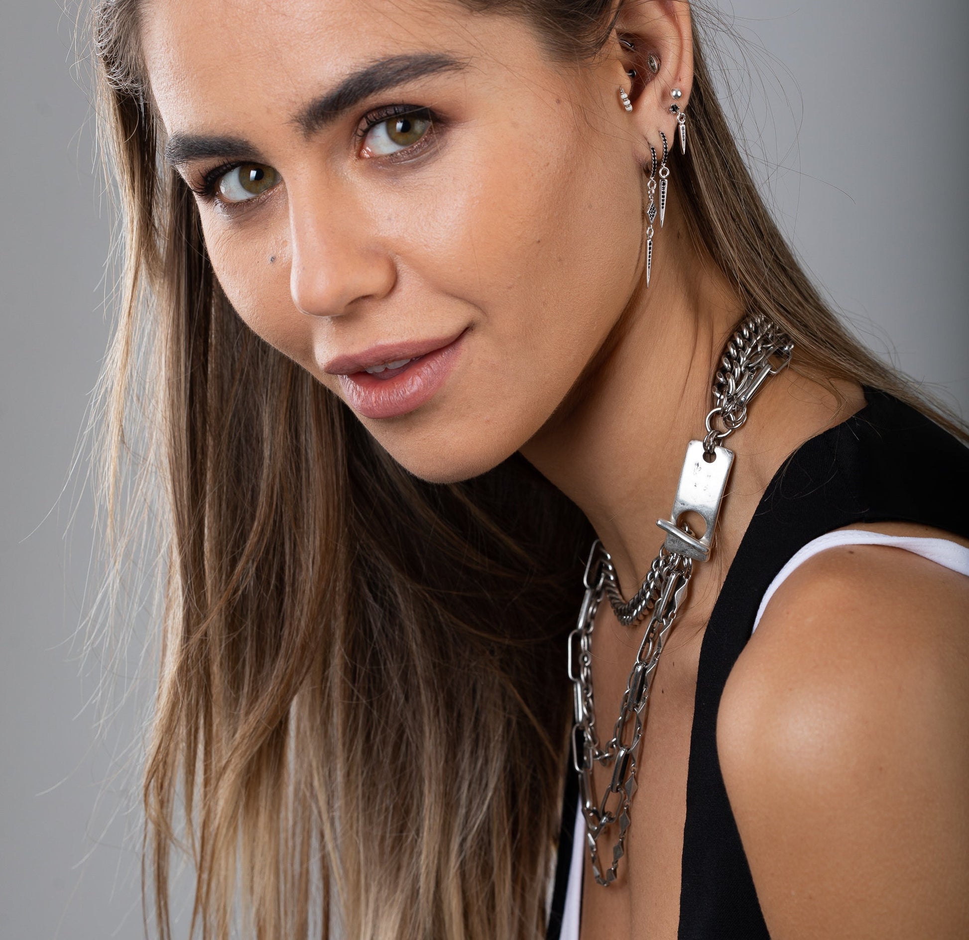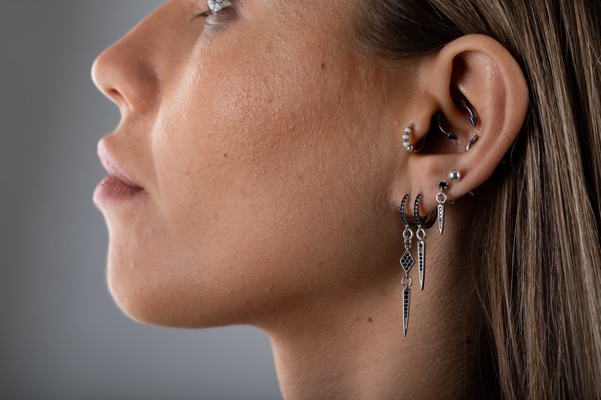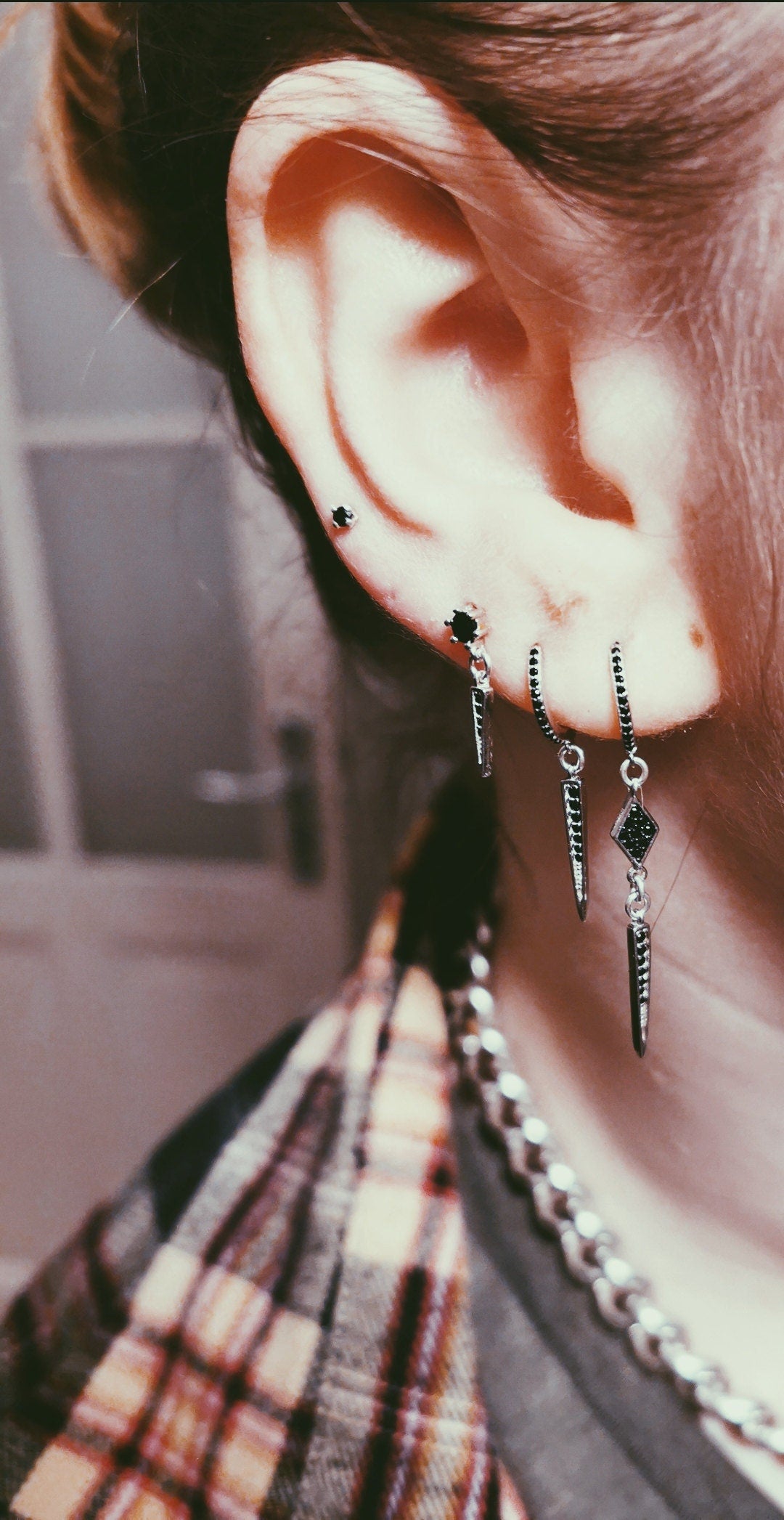 Dangle stack earrings, sterling hoop Earrings set, spike stacking Earrings for everyday, dangling earrings, grunge, goth, gothic earrings
