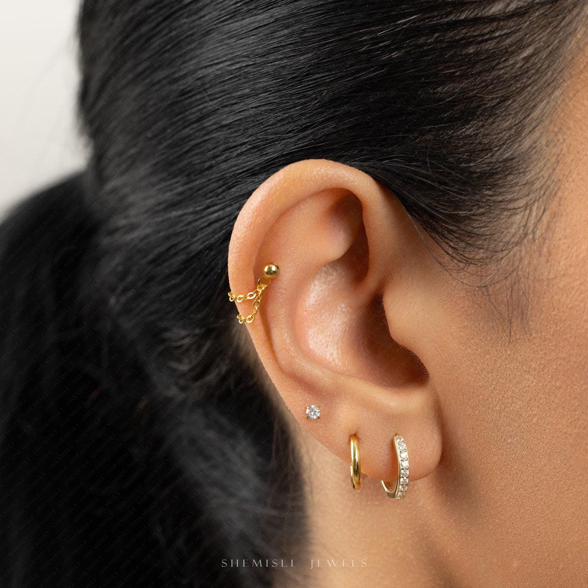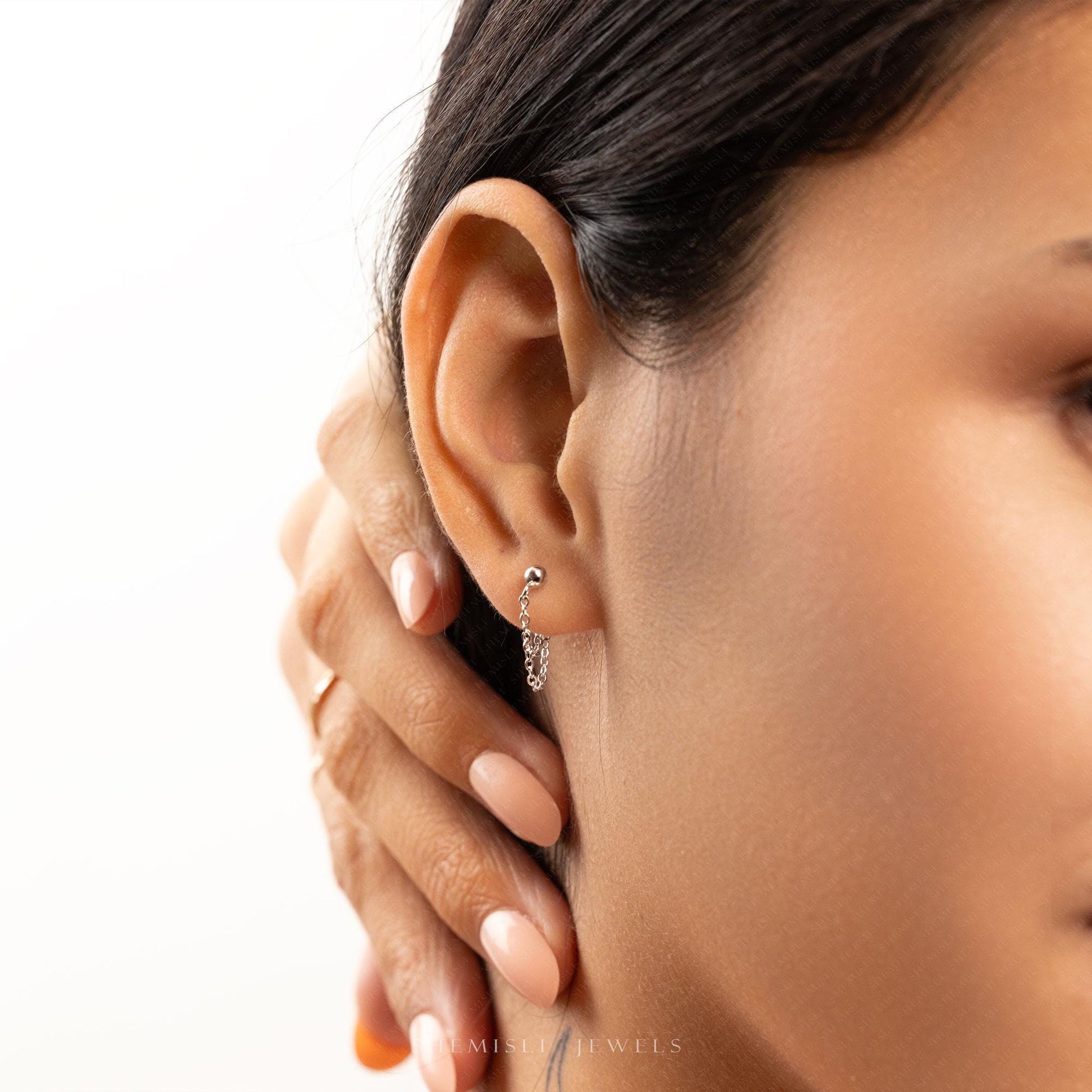 Double Chain Helix Earring With Screw Ball End, Unisex, Gold, Silver SHEMISLI SS1332 (Type A Ball End)