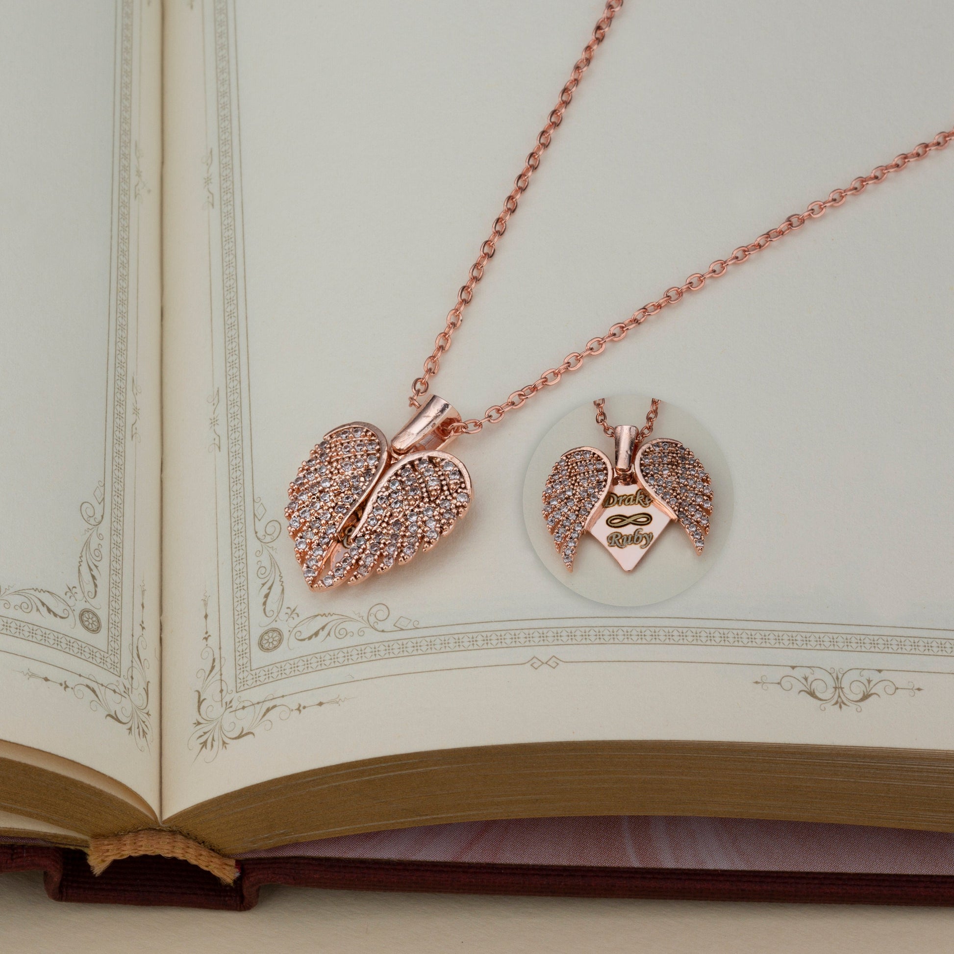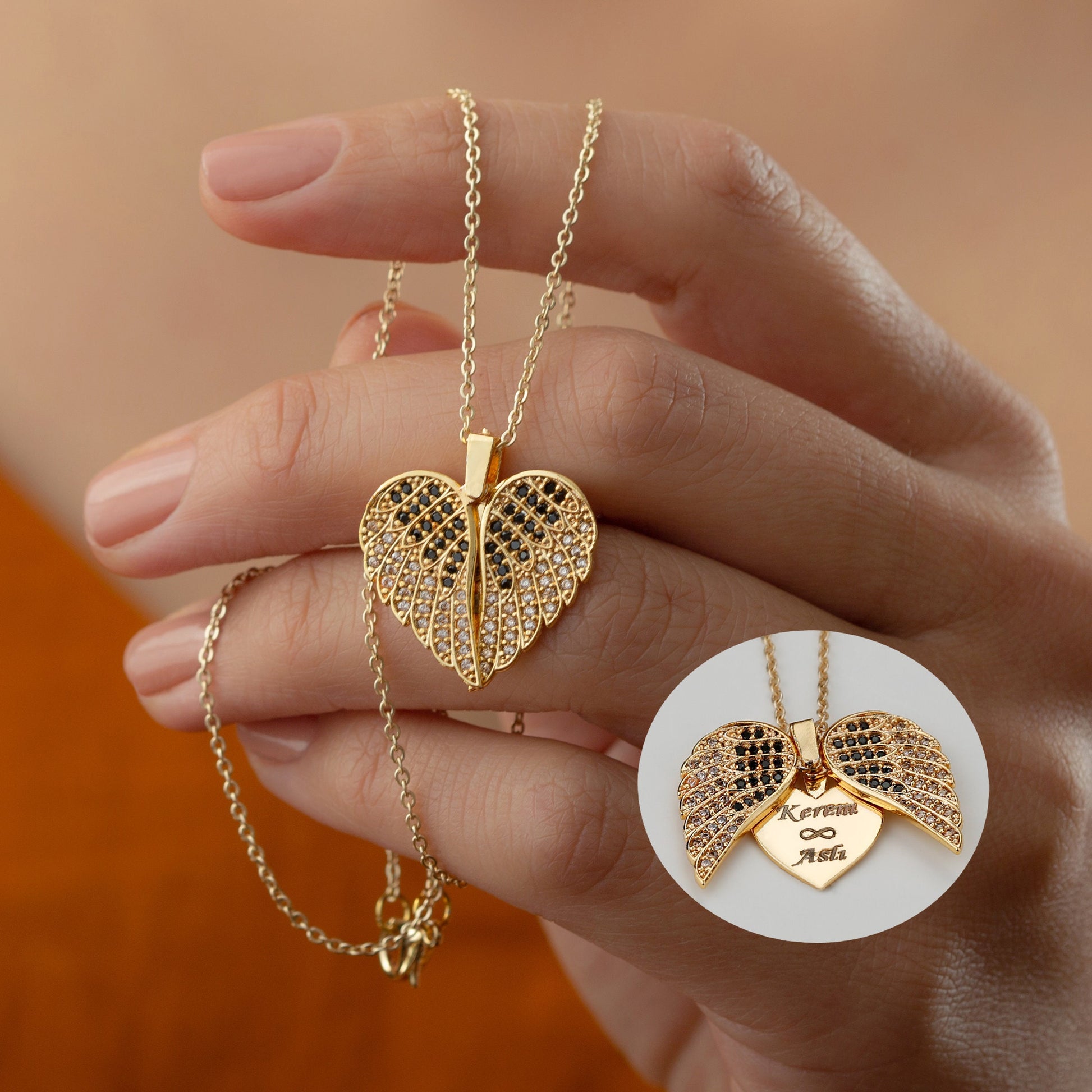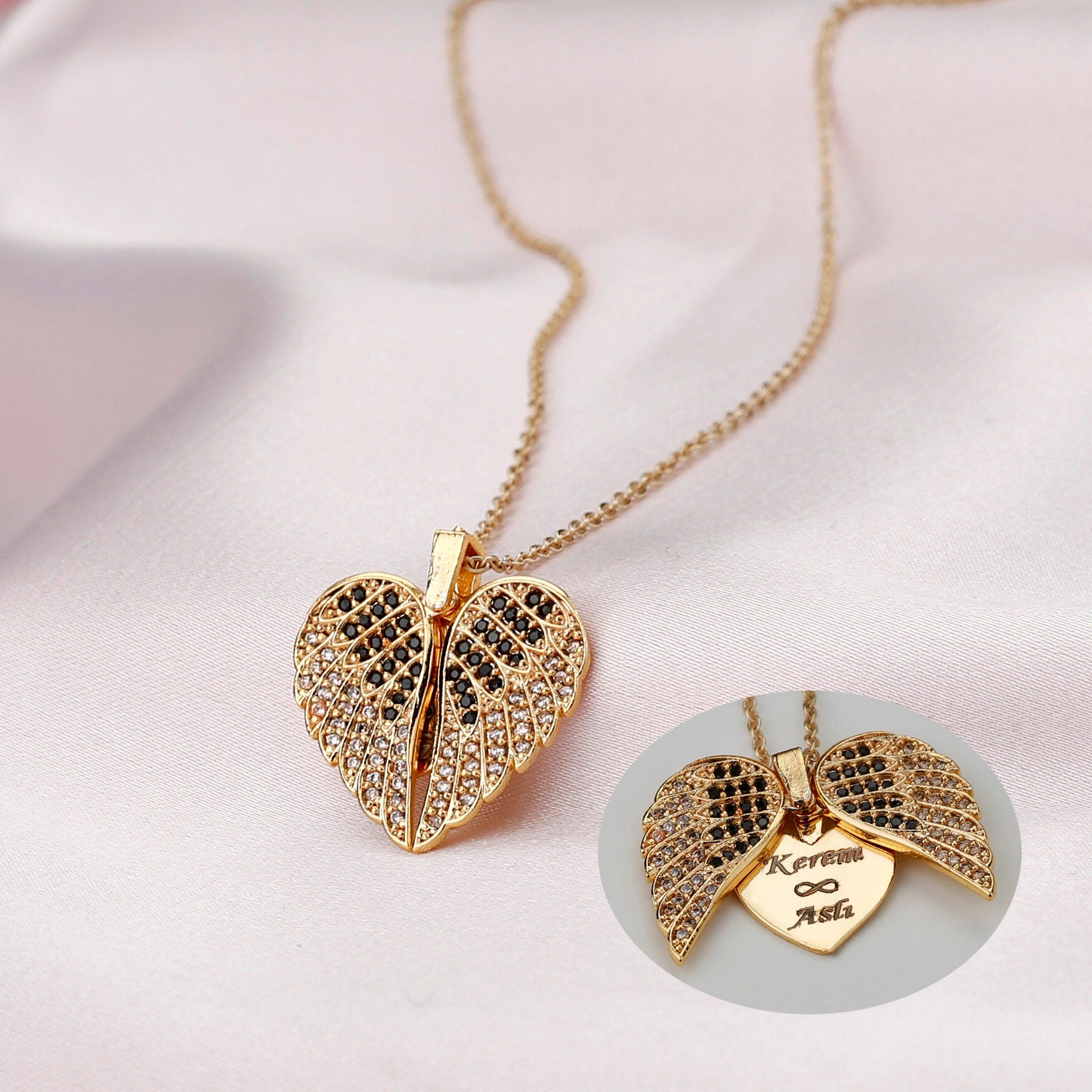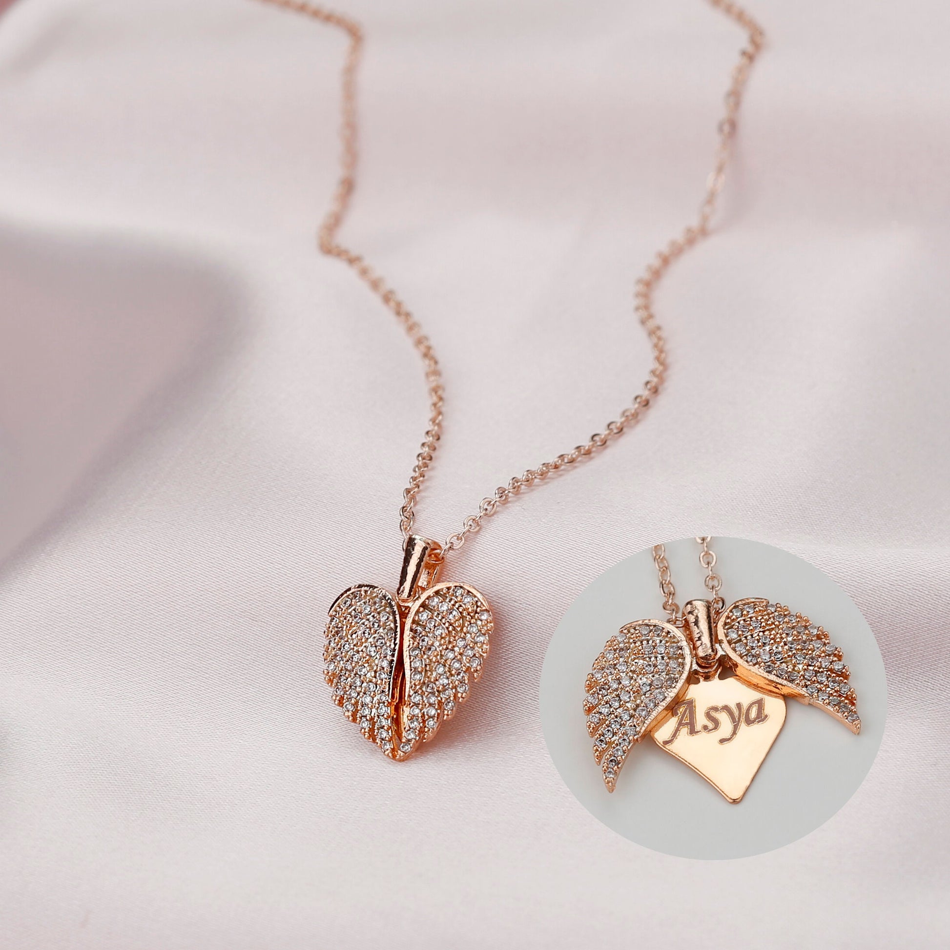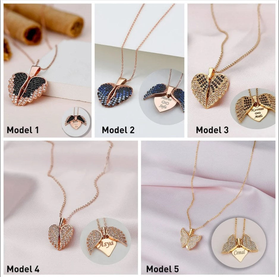 Engrave Angel Wings Necklace, Wings Name Necklace, Guardian Wings Angel Necklace