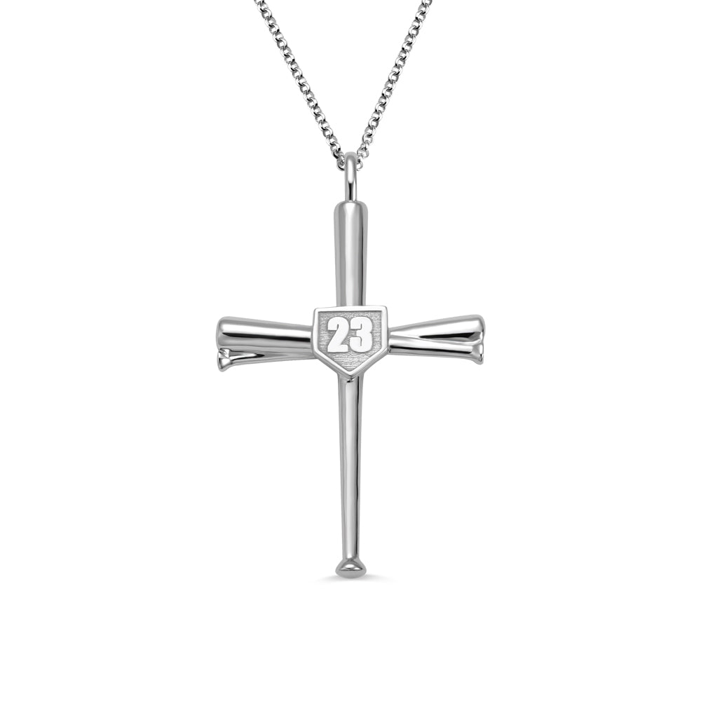 Engraved Baseball Cross Necklace
