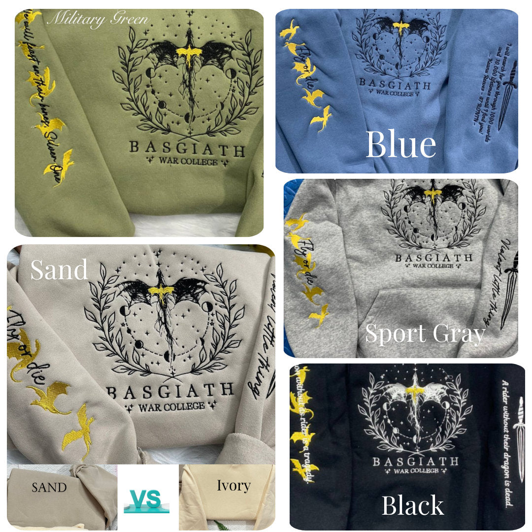 Fourth Wing Embroidered Sweatshirt,Custom Basgiath War College, Dragon Rider,Violet Sorrengail,Rebecca Yorros,Xaden Riorson,Fantasy Reader