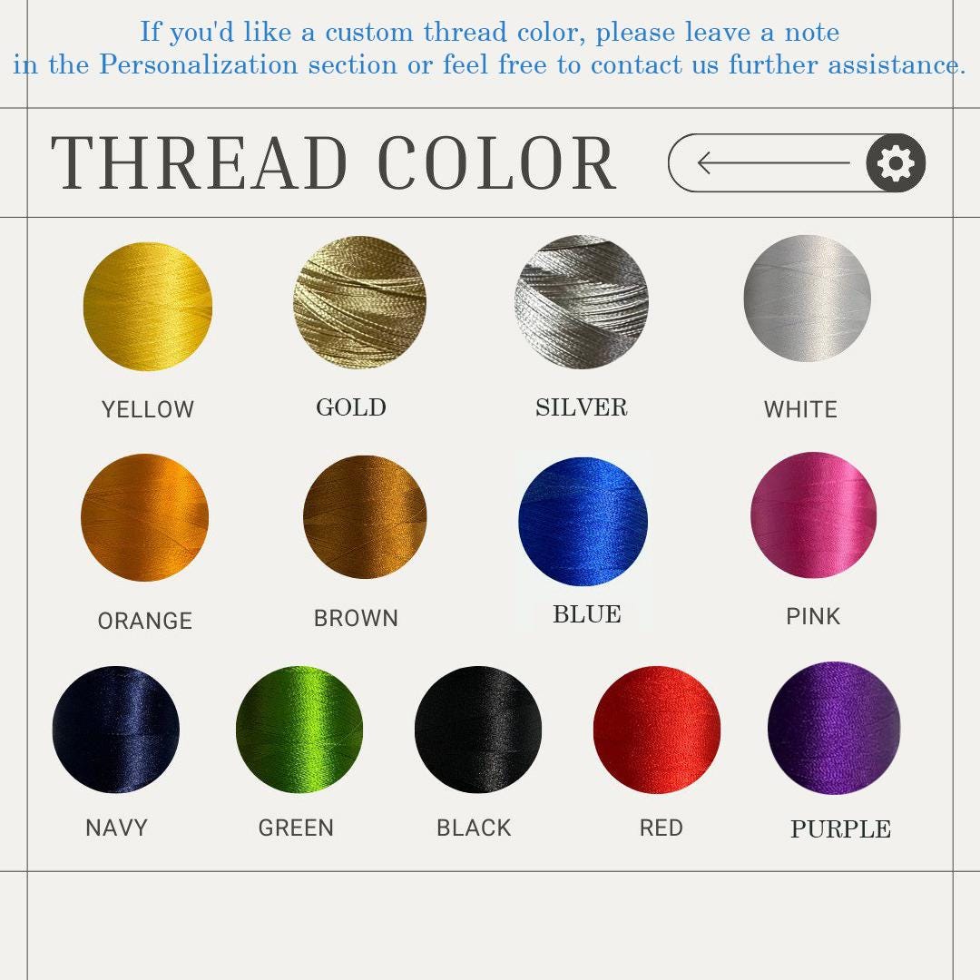 If you'd like a different thread color, kindly leave a note in the Personalization section or feel free to contact us for further assistance.