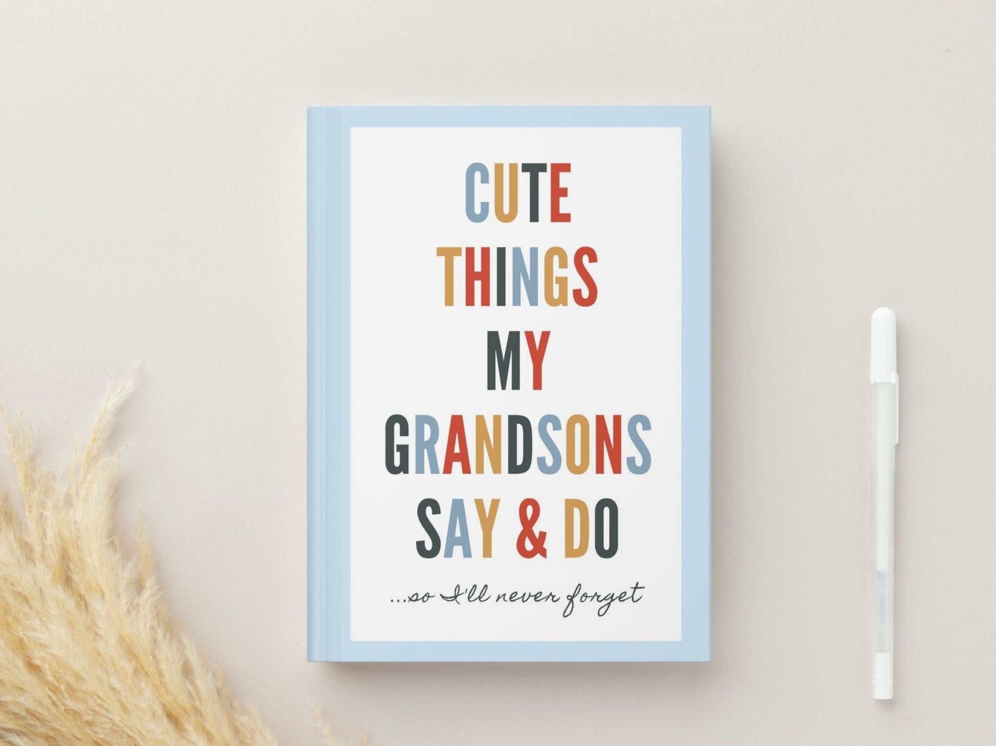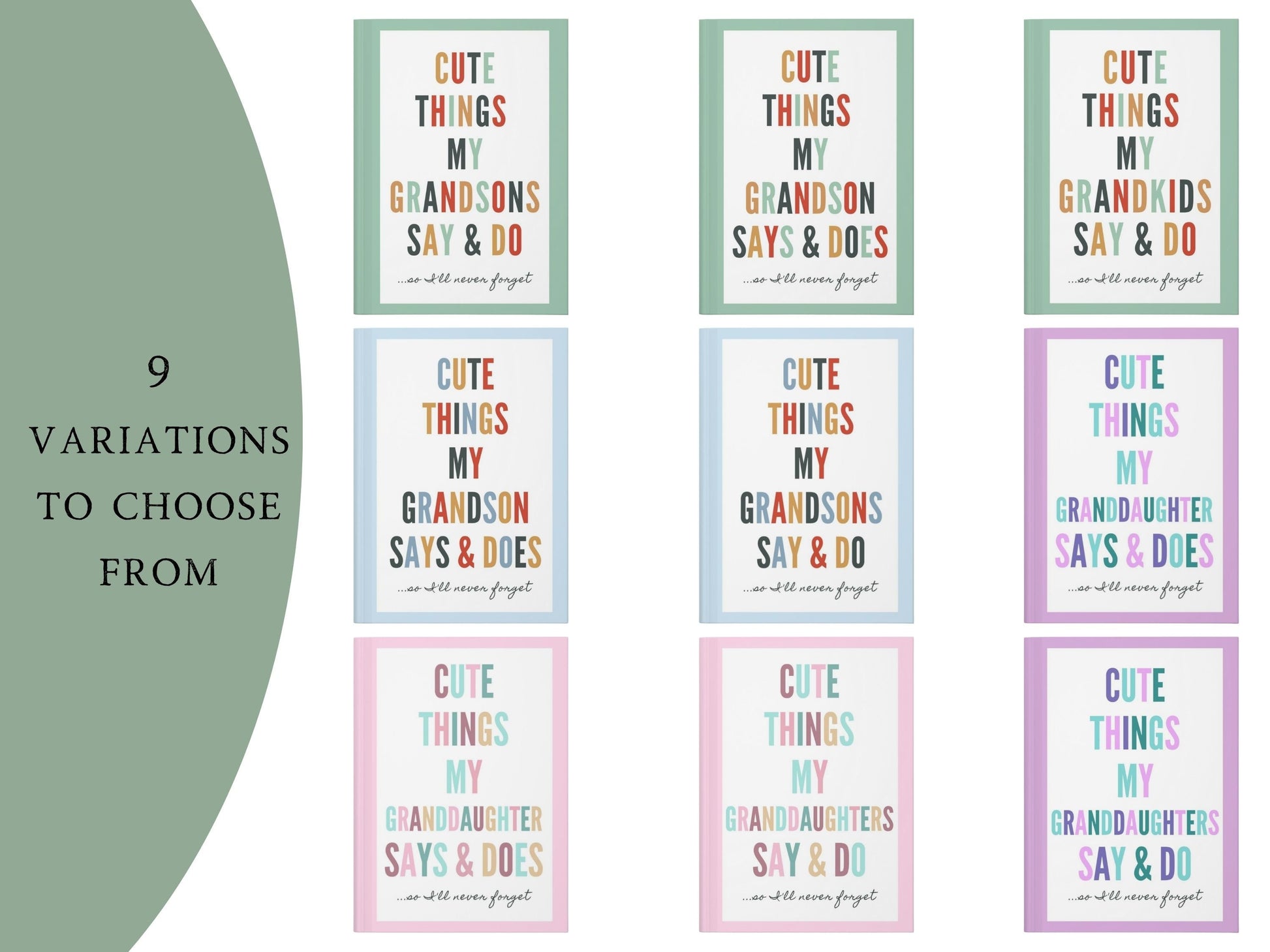 This cute journal for grandparent will be a great way to record memories of the grandkids and the funny things they say and do. It would make a great Grandma's Mother's Day gift, Grandmother's birthday gift, or a Grandma's Christmas Gift. There are multiple color choices. You can also choose if you have grandsons, granddaughters or both. This will be something a grandparent can gift to their grandkids later in life. They will be sure to cherish this gift for years to come.