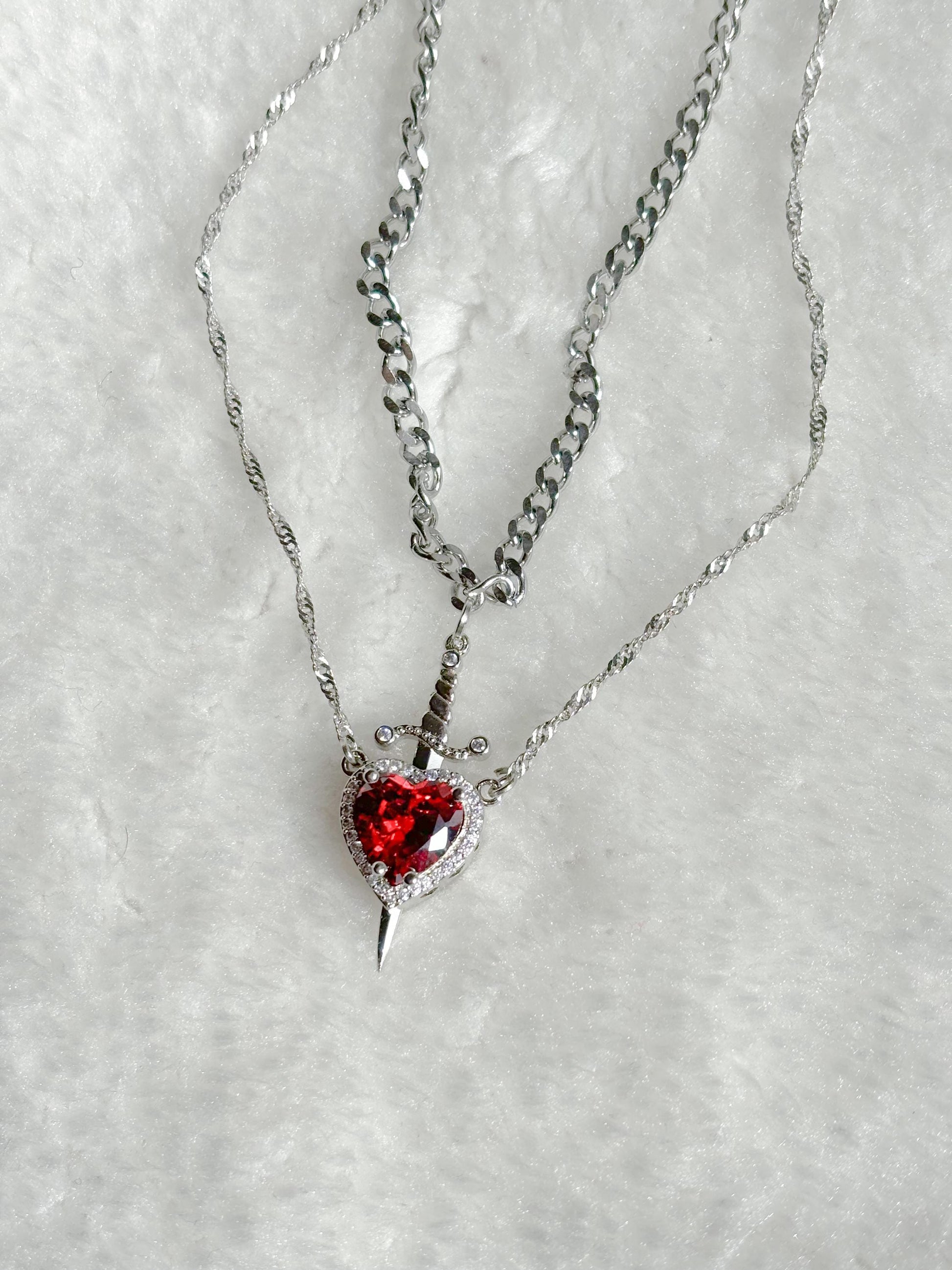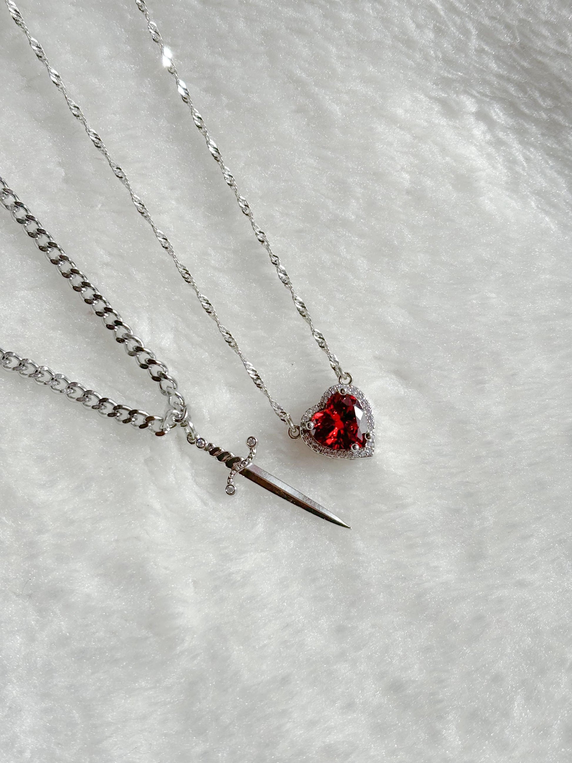 Heart and Sword Necklace - Couple Necklaces - 2pcs Necklace - Silver Plated