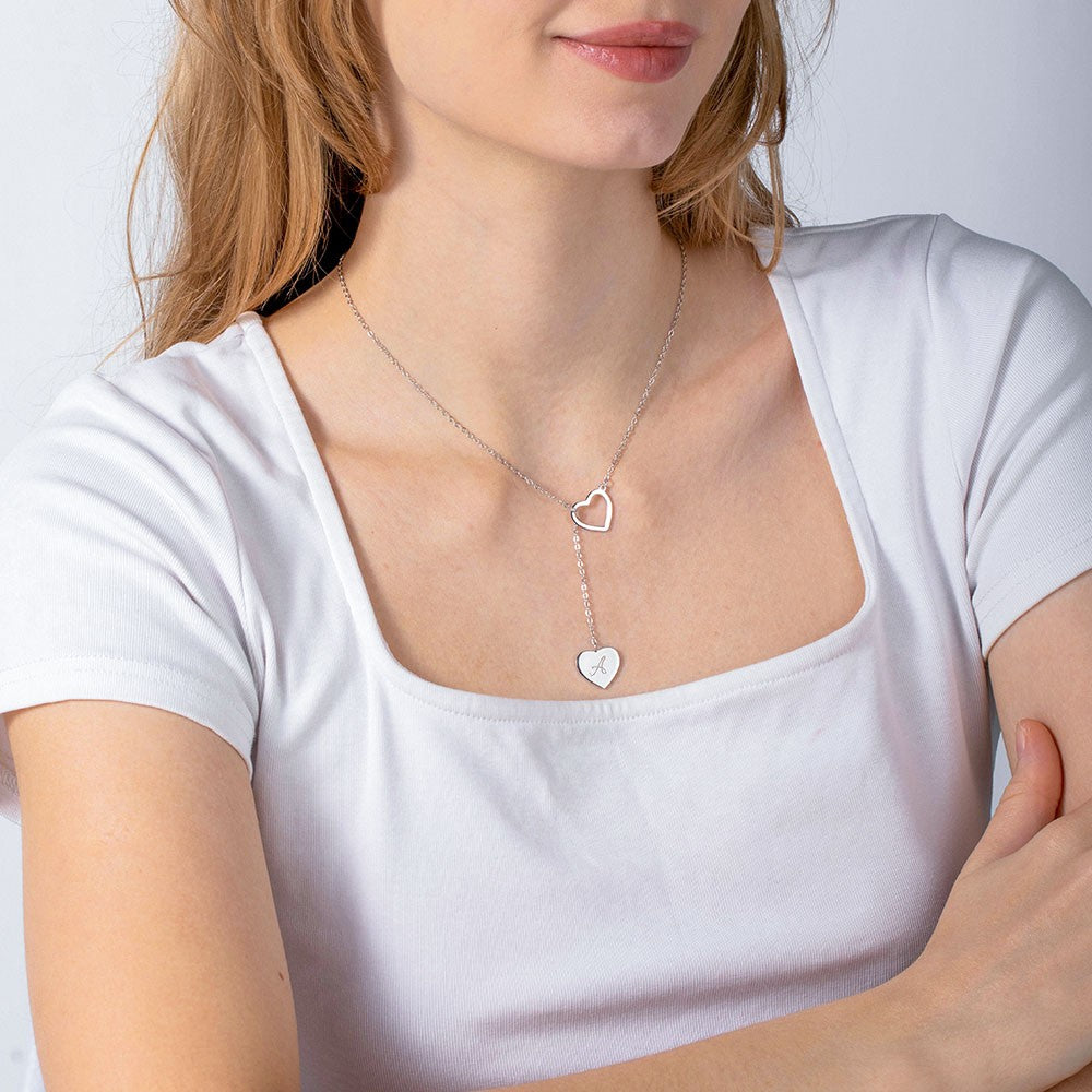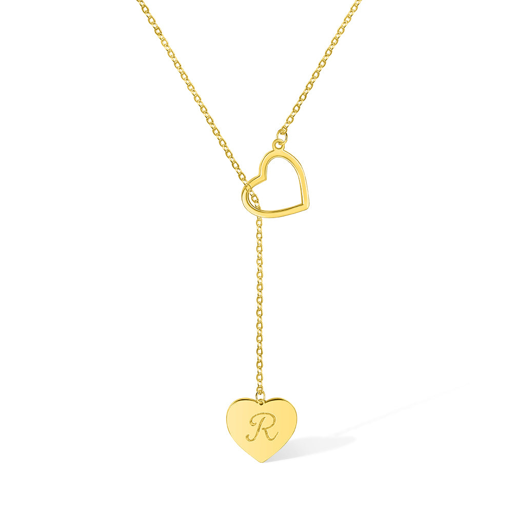 Heart Lariat Necklace - The Heart Lariat Necklace with Initial is the perfect personalized piece of jewelry for you or your loved one. Featuring a heart charm with the Y style, this necklace can be customized with your own initials, making it a unique and special accessory. The lariat drop chain adds an elegant touch to the design, making it perfect for a sophisticated look.
