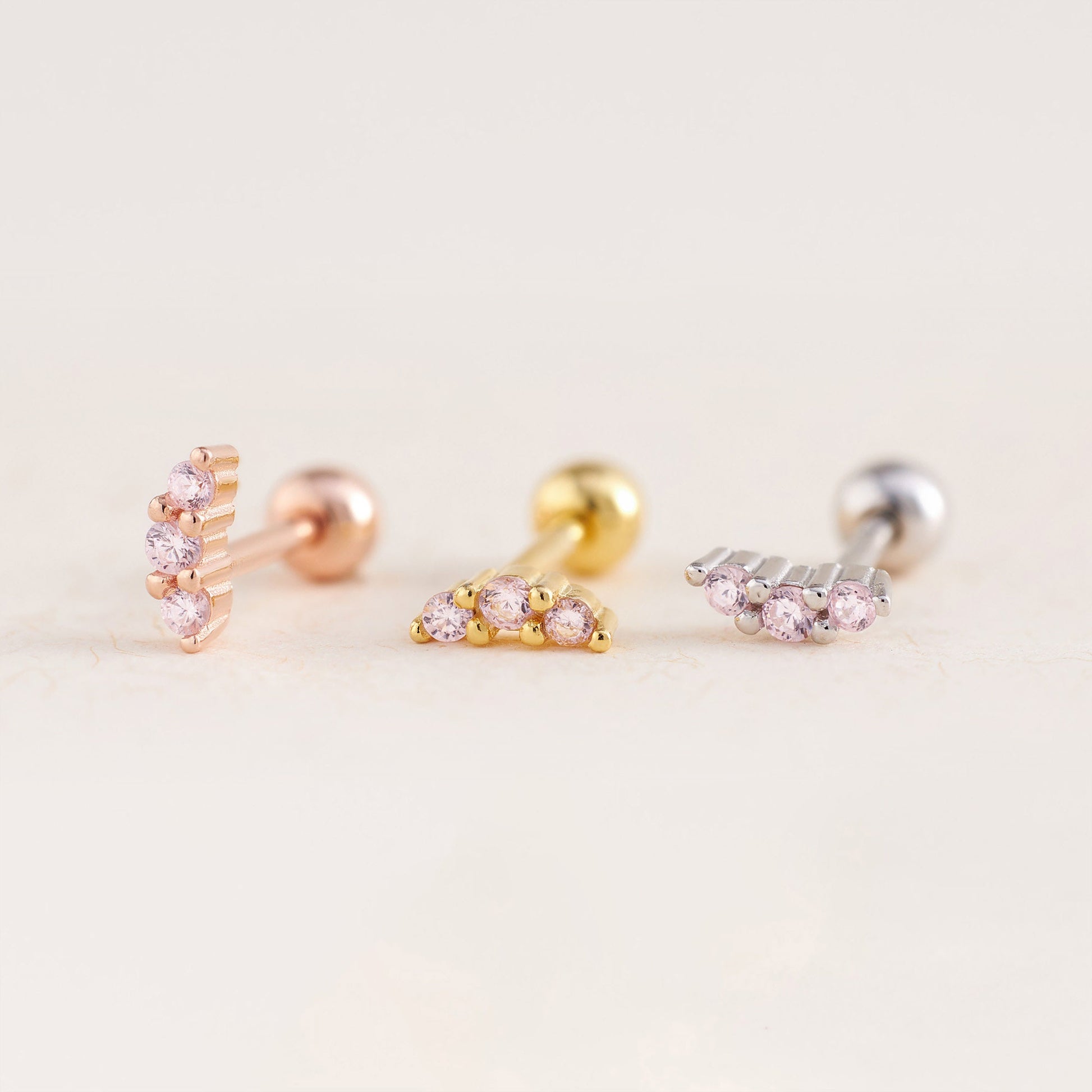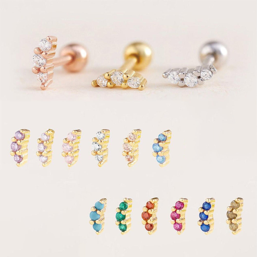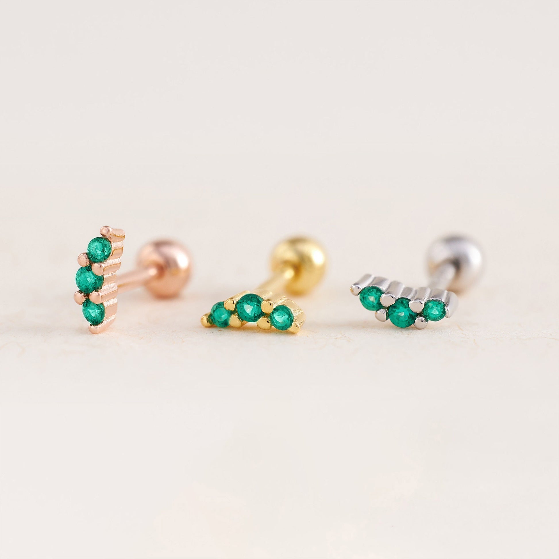 Helix Earring, Birthstone Cartilage Earring, Conch Earring, Helix Stud 18G, Gemstone Earrings, Screw Back, Sterling Silver, Forward Helix