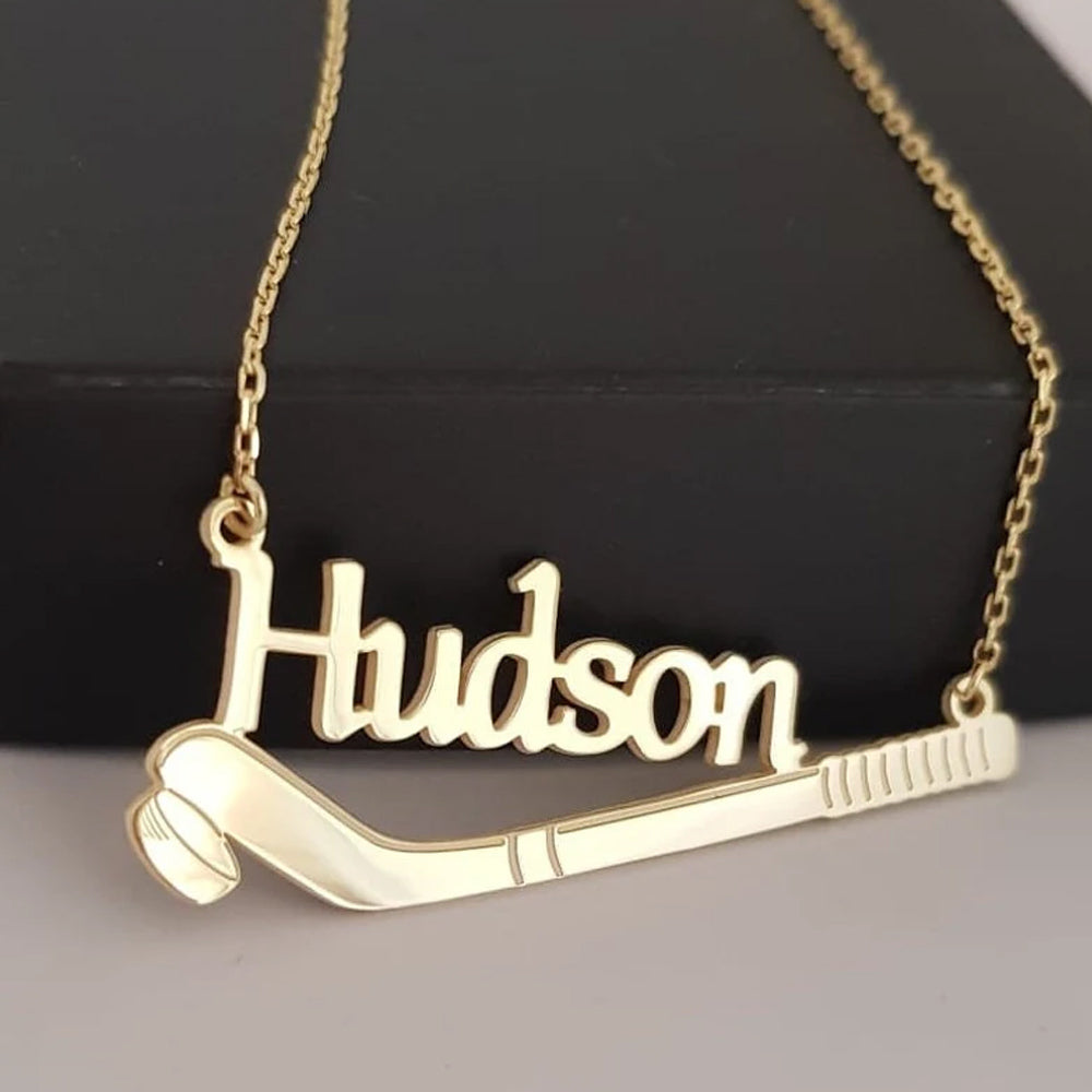 Ice Hockey Name Necklace, 925K Silver Custom Hockey Necklace, Hockey Gift, Hocey Lover Gift, Christmas Gift, Hockey Pendant