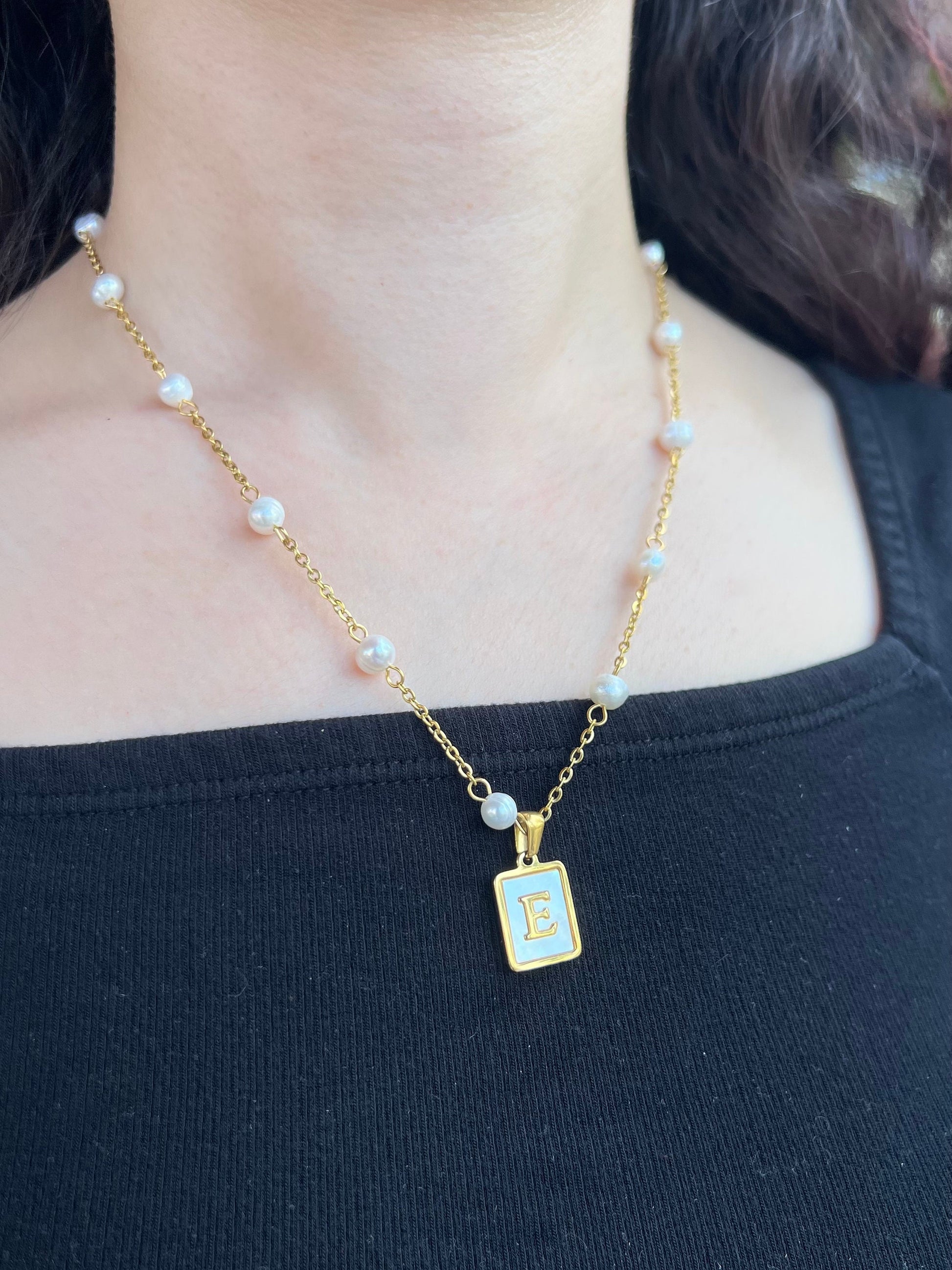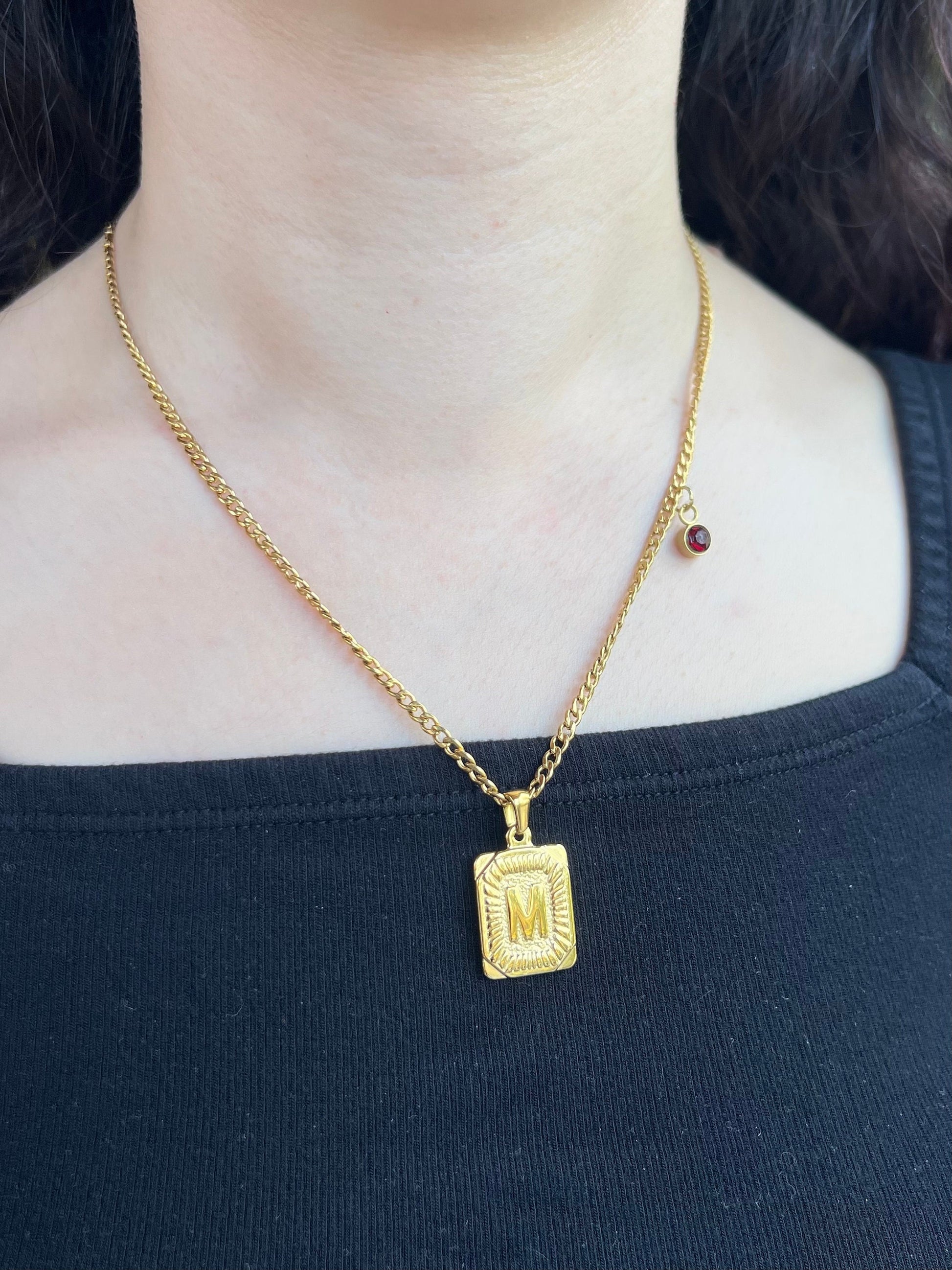 Initial Necklace, Minimalist Gold Letter Necklace with Birthstone, Personalized Necklace, Valentines Day Gift Medal Pearl, Bridesmaid Gift for Her, Gift for Mom