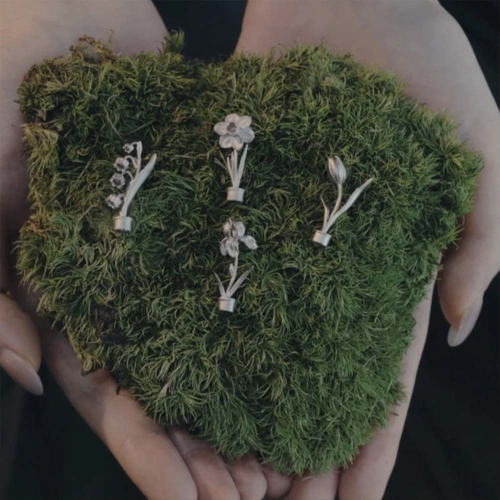 This 925 silver necklace is inspired by the "Stone Heart Seed" and can be freely replaced with different flower ornaments, including tulips, irises, and lilies of the valley.